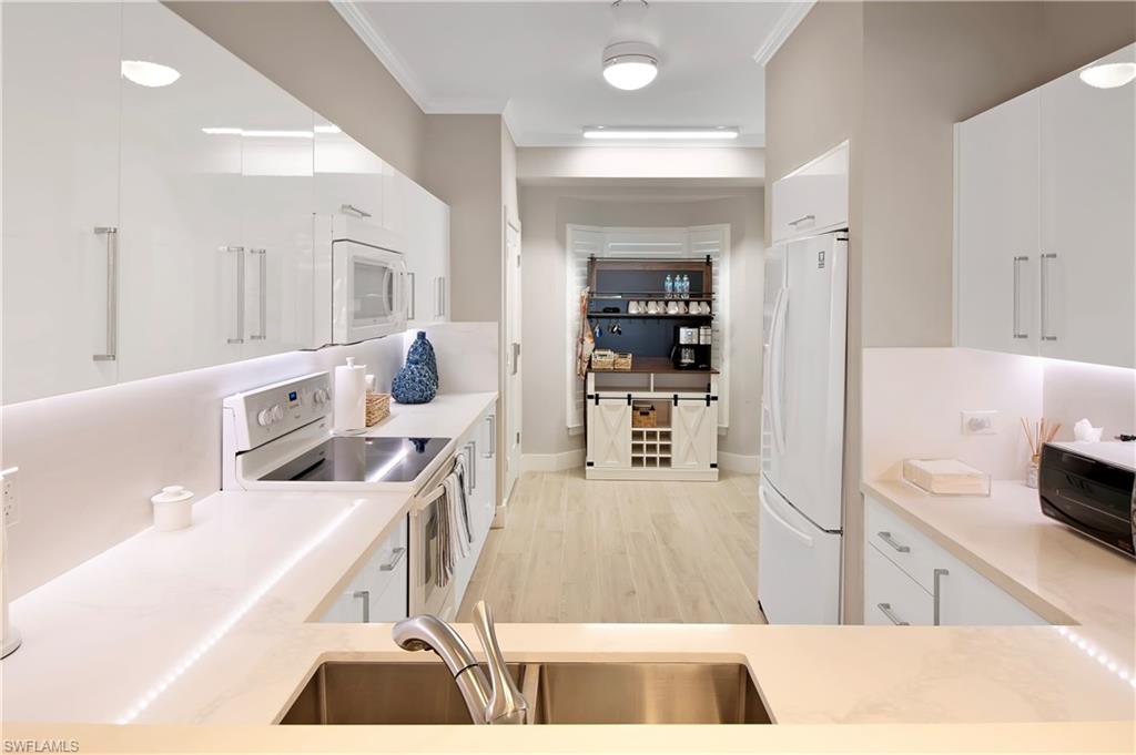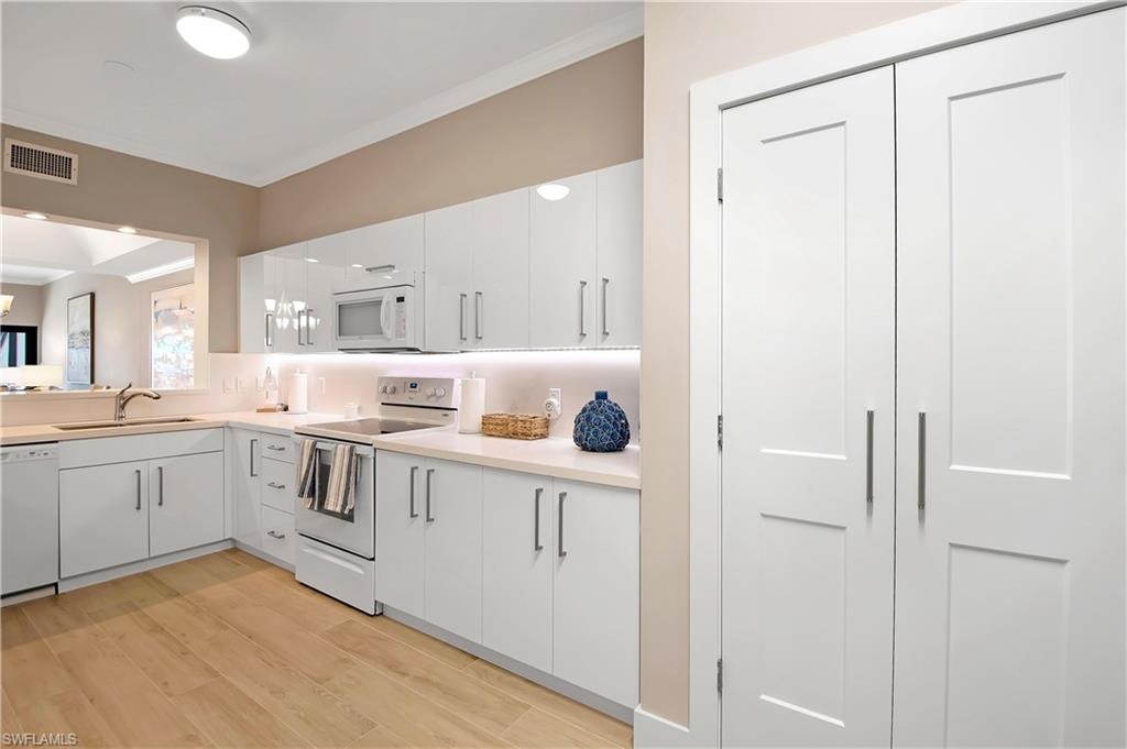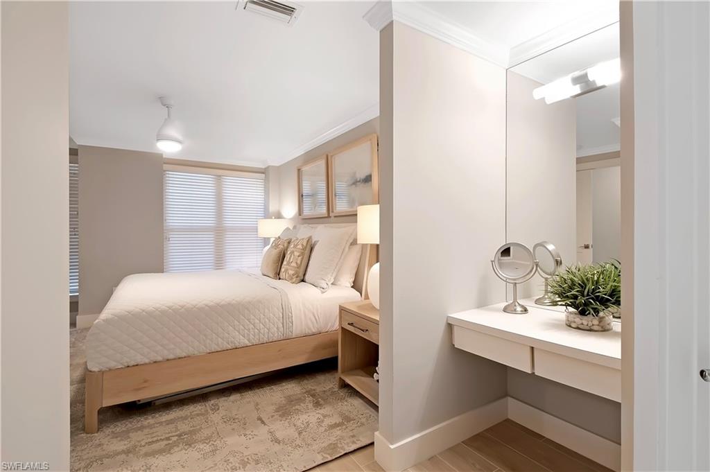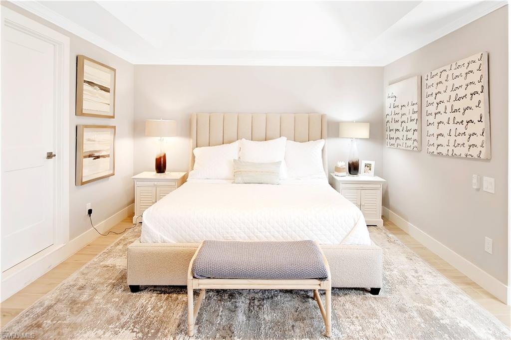 Exceptional, wide-water views of the Big Marco River and Gulf of America from this spectacular residence in the prestigious, La Peninsula. Located on the tip of the Isles of Capri, this spacious, single level condo has the highly desired, Brittanie floor plan with elevator access. Recently updated in today’s Coastal Modern style, professionally decorated, fully furnished and ready for immediate occupancy. Features include 3 bedrooms, 3 bathrooms, Impact windows & sliders, tile plank flooring, a spacious floor plan and a large, covered lanai, to name a few. From the moment you walk in, you will be captivated by gorgeous, panoramic views of the Big Marco river, Hideaway beach and Marco Island. You will enjoy non-stop action with boats passing by, lots of dolphins, birds, manatees and other wildlife, putting on a show that never gets old. The waterfront living room is light and bright with big sliders to the oversized terrace. The kitchen offers ample natural light, quartz counters, white cabinetry and of course, beautiful water views. The large, master bedroom is on the water’s edge with a big, walk-in closet and also has sliders out to the lanai. In the master bathroom you will find a dual vanity, separate shower and a jetted bath tub with glass windows that overlook the river, so you never miss out on the magic. The large, second bedroom offers an en-suite bathroom, a walk-in closet and privacy for your guests to feel right at home. Boat docks are available for separate purchase. La Peninsula is a gated community with lush tropical landscaping through out, a fitness room, club house, olympic-sized heated swimming pool, spa and a large promenade along the waters edge, which wraps around the whole point with wonderful sunset views over the Gulf. A new sports center is coming soon, complete with pickleball, tennis and bocce. Isles of Capri is a subtropical island that boasts and abundance of wildlife, four great restaurants and three marinas. Located one mile from Marco Island & only 20 minutes away from Downtown Naples with its sophisticated shopping & five star dining. Our area is famous for its white sand beaches, world class fishing & boating and fantastic golfing. Isles of Capri is the perfect place to sit back, relax, unwind and let the sights and sounds, soothe your mind, body and soul. Welcome to paradises!