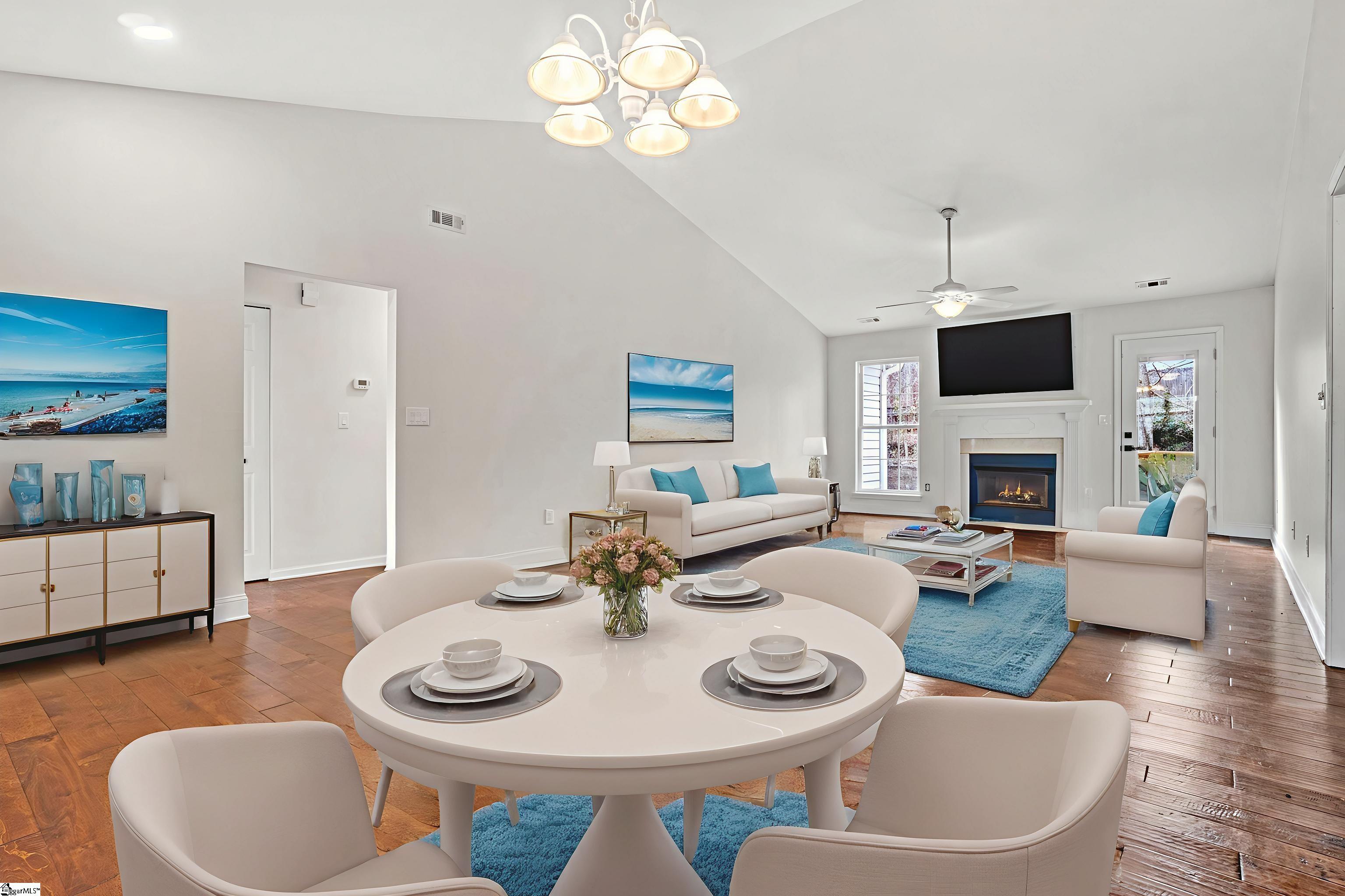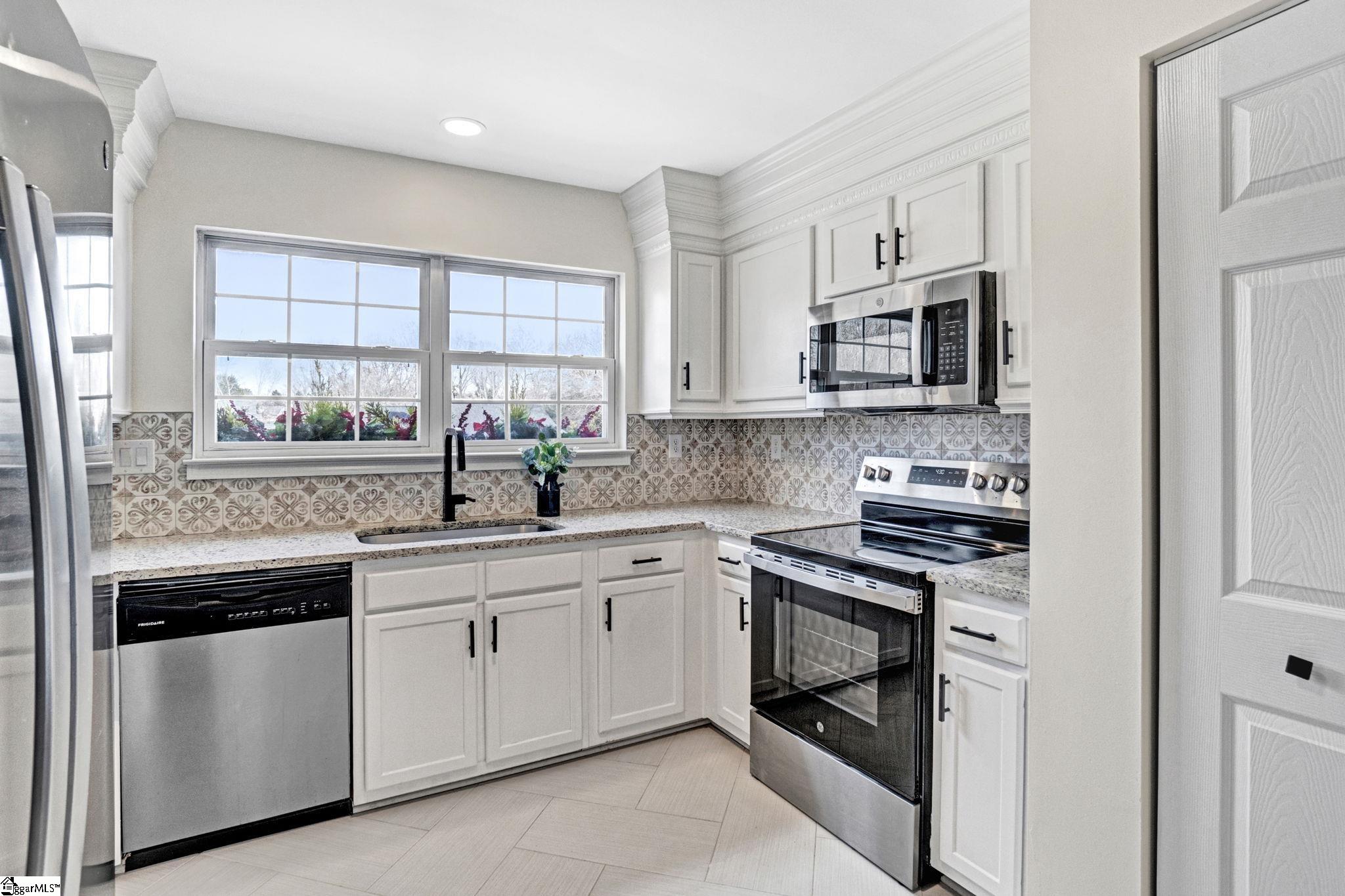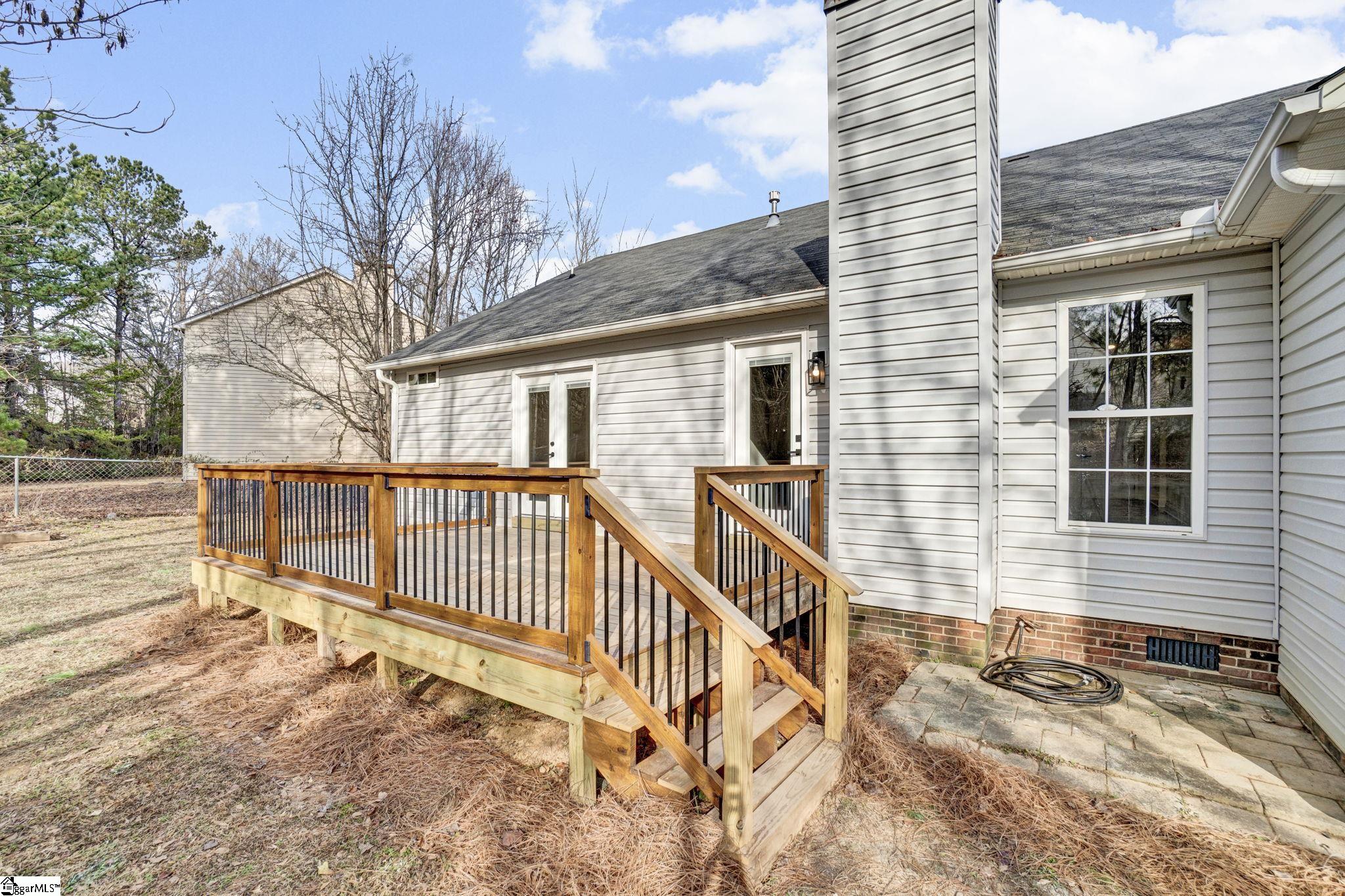 NEW! NEW! NEW! New roof, new hvac, new paint, new tile, new deck, new countertops, new backsplash. . . and more! Enjoy easy one-level living in this beautifully updated 3-bedroom, 2-bath home offering 1, 481 square feet of open and inviting space. Fresh new carpet, paint, new light fixtures and updated countertops in both the kitchen and bathrooms give the home a clean, modern feel. The open floorplan features a cozy gas log fireplace in the great room, which flows seamlessly into the dining area—perfect for flexible furniture arrangements and entertaining. The spacious kitchen is designed to impress with new granite countertops, a custom tile backsplash, stainless steel appliances, and plenty of workspace for gatherings and everyday living. The large primary suite is a true retreat, highlighted by a vaulted ceiling, stylish barn door, walk-in closet, and a private ensuite bath with double sinks, granite countertops, and a soaking tub with an oversized shower head. A split bedroom layout provides added privacy, with two additional bedrooms ideal for guests, a home office, or a craft space, along with a second full bathroom. Step outside to enjoy the deck, patio, and fully fenced backyard—perfect for outdoor living. A rear storage room adds extra convenience. Located in an established neighborhood in the sought-after Simpsonville area, this home is zoned for award-winning schools and is just minutes from restaurants, shopping, medical facilities, and entertainment. A wonderful opportunity to enjoy comfort, style, and convenience all in one place.