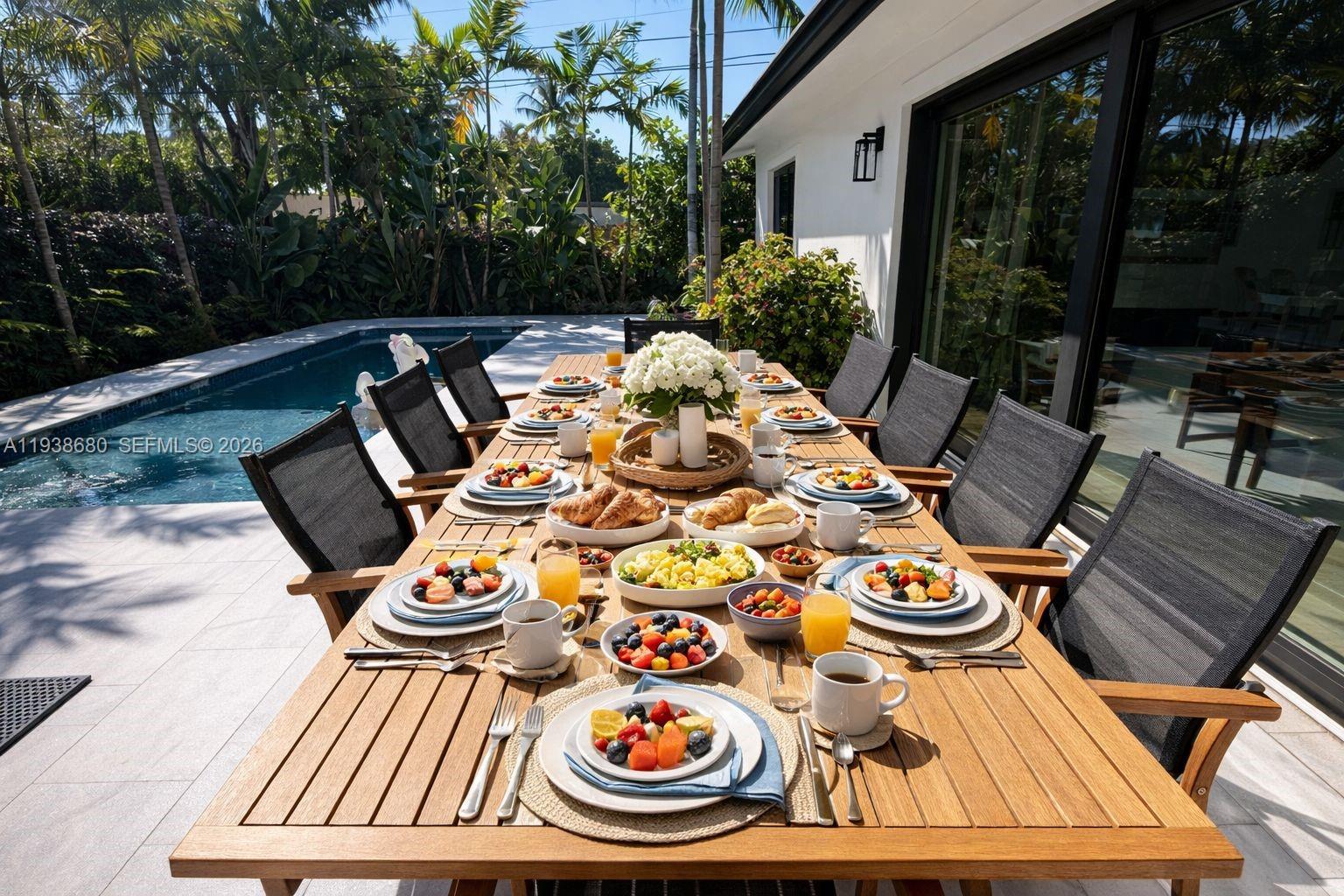Elegant Lighthouse Point Island Retreat, available Short Term & Long Term furnished including all services ( water, electricity, internet , landscaping, pool, cable) this new luxury home is minutes from beaches, dining, and entertainment, and just 10 minutes from Pompano and Deerfield Beach. Enjoy 360° pool and garden views from nearly every room, a heated private pool, and seamless indoor-outdoor living with outdoor dining for 8, lounge seating, sun loungers, and BBQ. The open-concept space features a chef’s kitchen, spacious living room with large TV, cable, bar, and fireplace, plus a converted garage serving as a game room/4th bedroom with smart TV, basketball setup, pull-out couch, and office space. The primary suite offers a king bed, ensuite bath, and walk-in closet. Additional bedrooms include three queen beds, one with a desk. All rooms have TVs. A full laundry room with sink, ample parking, and a park across the street with tennis courts and playground complete this upscale South Florida escape—perfect for relaxing or entertaining.