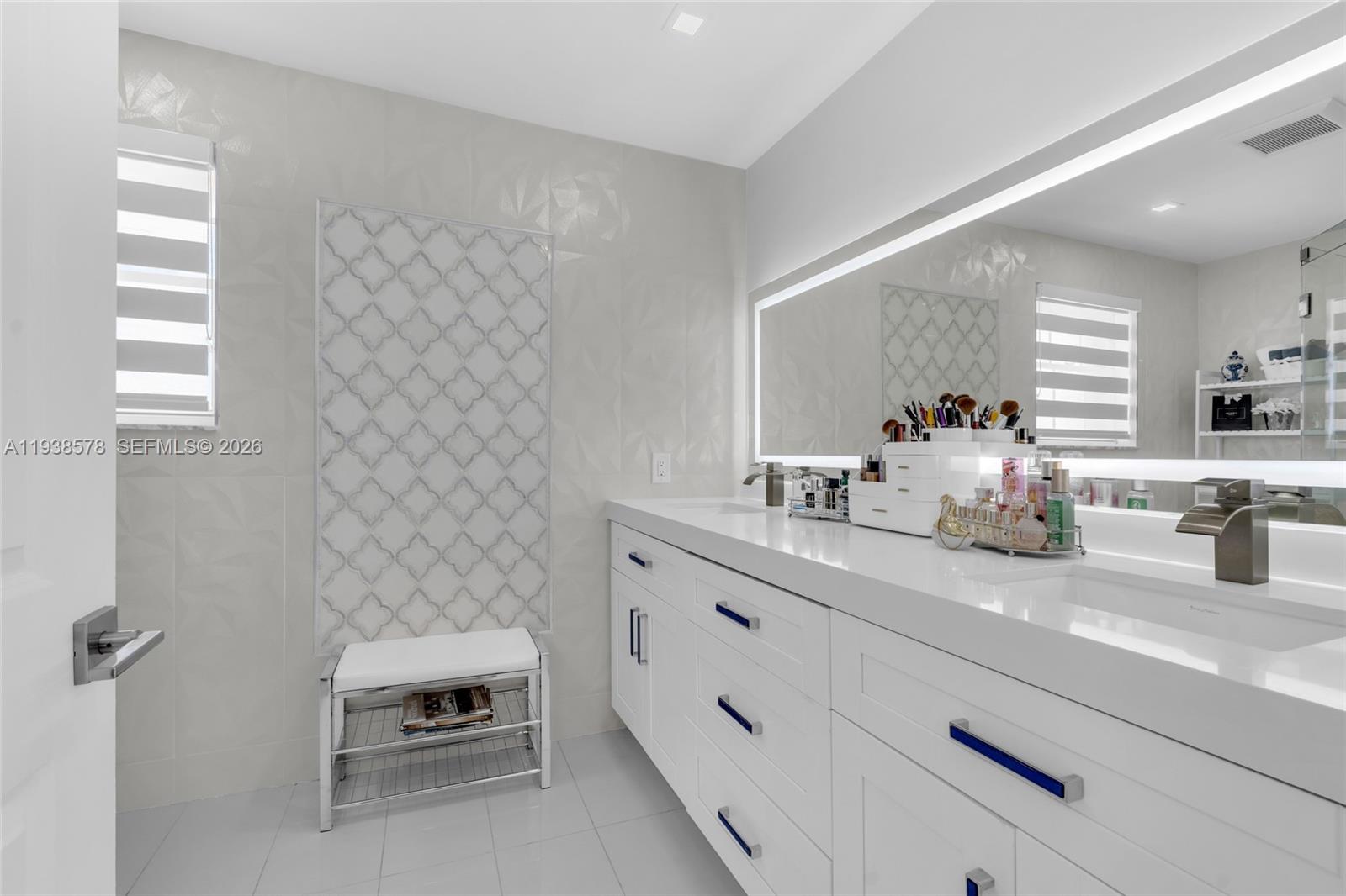 Beautifully renovated 3 bedroom, 3 bathroom townhome located in the gated community of Doral Woods at Doral Park, access to the Doral Park Country Club. Over $130, 000 in upgrades completed in 2023. Rare layout with all bedrooms en-suite, including a primary and junior suite upstairs, plus a first-floor bedroom with ADA accessible bath and roll-in shower. Renovations include an open-concept kitchen with Bosch cooktop, GE Profile double ovens, premium appliances, custom cabinetry, quartz countertops with waterfall edges, and 30"x60" porcelain tile flooring on the first floor. All bathrooms remodeled with new tile, luxury showers with body jets, and smart toilets. Additional features include a custom bar with wine cooler, LED lighting, updated electrical, new interior doors and moldings, blackout and electric shades, impact front door, impact rear sliders, accordion shutters, new A/C, and new garage door and opener. Enjoy lush landscaping with artificial turf in both the front courtyard and screened-in backyard, plus beautiful golf course and lake views. Brand new roof installed in 2025 with special assessment paid. Secure, gated community. Centrally located in Doral, an international city known for excellent schools, easy highway access, major retail and dining, and minutes to Miami International Airport. Private setting with tranquil views, ideal for entertaining or relaxed indoor-outdoor living.