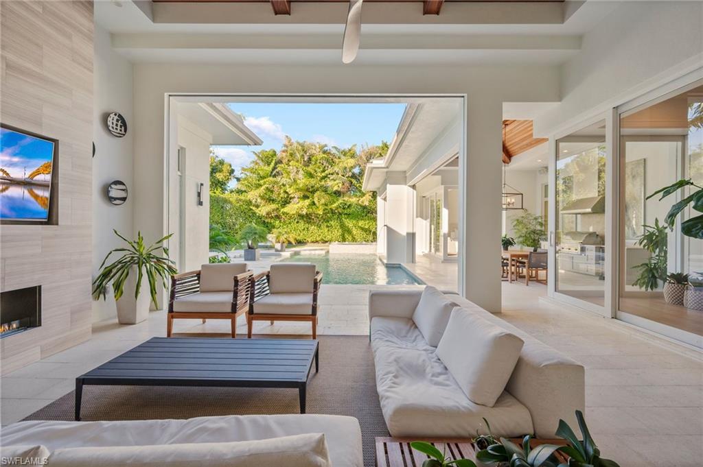 This like new coastal contemporary residence, designed by Falcon Design and built by Knauf-Koenig Group, offers luxury in the Moorings. Thoughtfully crafted with refined finishes and an open, elegant floor plan, this 5-bedroom plus 5½-bath, beautifully furnished home spans over 4, 600 square feet of living space on one level, seamlessly blending sophistication, comfort, and effortless indoor-outdoor living.