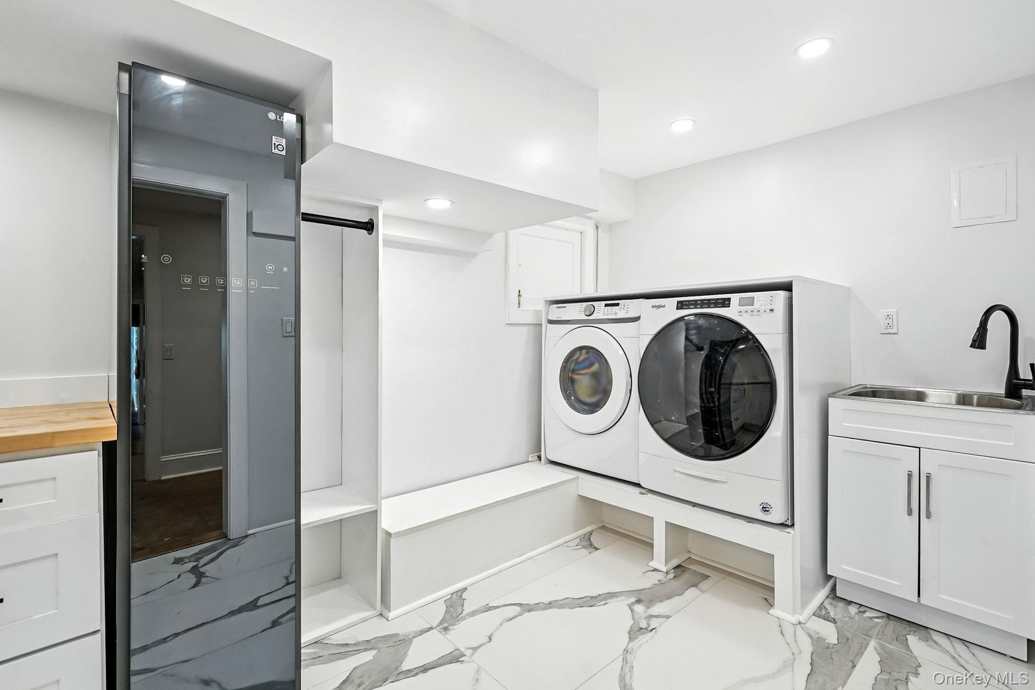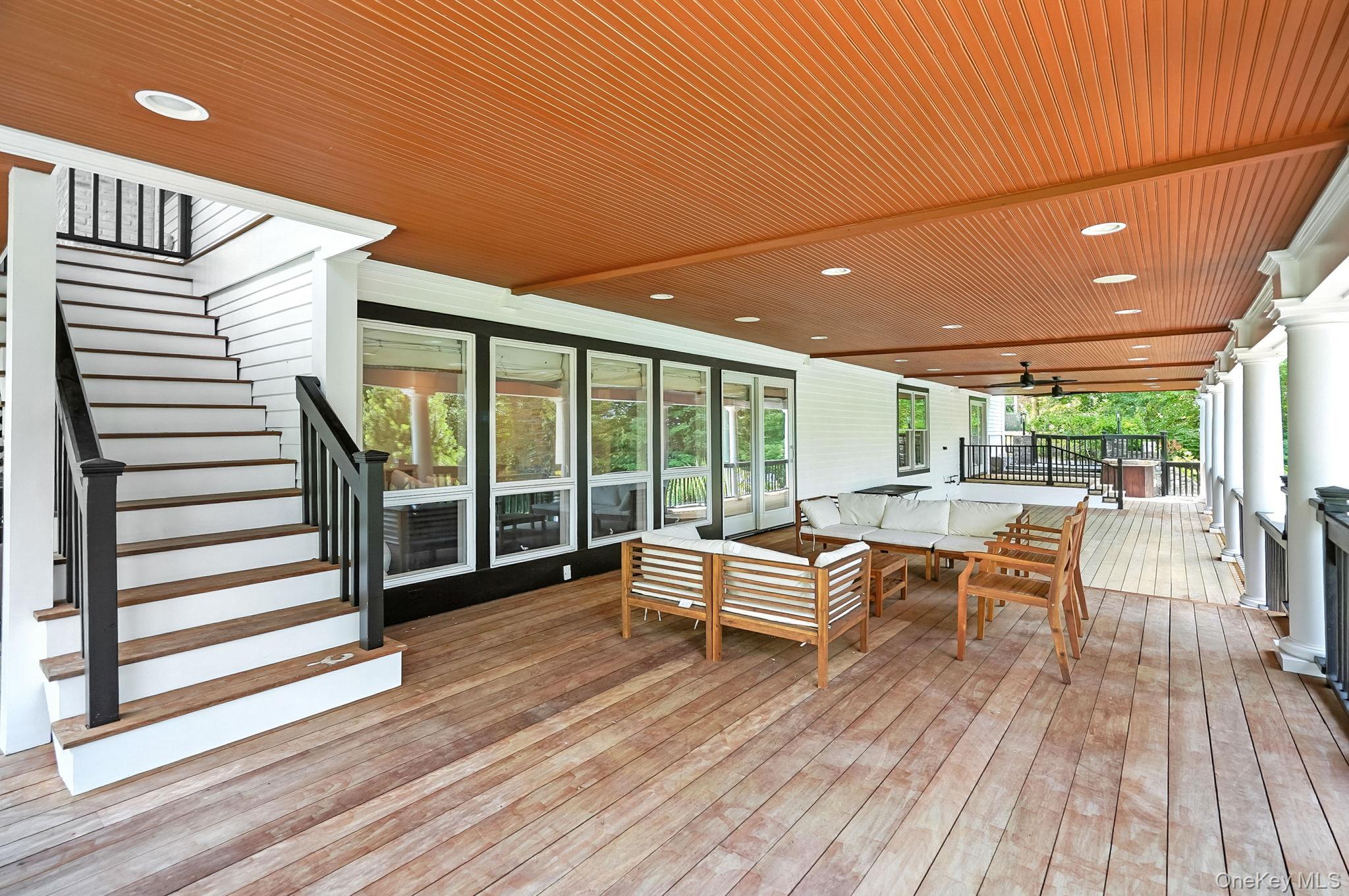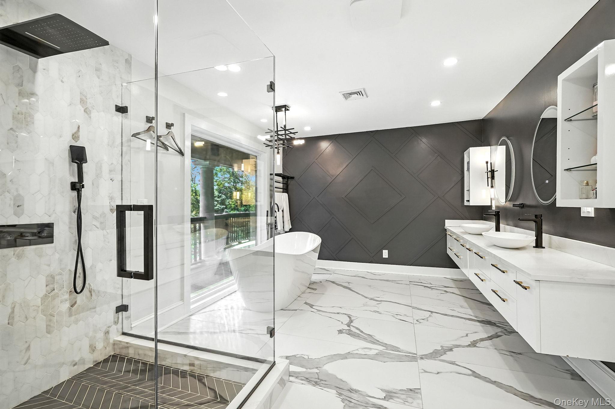 This stunning contemporary home, located in the award-winning Edgemont School District, offers nearly half an acre of professionally landscaped grounds with an in-ground pool. Tastefully renovated in 2022, this expansive residence boasts 6 bedrooms, 5 full baths, and 1 half bath across 5, 361 square feet of luxurious living space. This home is perfectly designed for modern living with oversized windows, high vaulted ceilings, and abundant natural light throughout. The first floor features a grand entry foyer leading to a spacious living room and a chef’s dream kitchen, equipped with top-of-the-line stainless steel appliances, including a 48” Sub-Zero refrigerator, two Dacor wall ovens, a 6-burner Viking cooktop, and a large center island with breakfast bar seating, all complemented by black granite leathered finish countertops. The main level also includes a luxurious master suite with a romantic fireplace and huge walk-in closet, plus a sumptuous primary bathroom with oversized glass shower with dual rain shower heads, separate soaking tub, dual sink vanity, and private dressing table. . An additional guest bedroom with ensuite bath, a home office, powder room and easy access to an attached two-car garage complete this level. Lovely views from a large rear deck provide the perfect ending to your day. The second floor starts with a sunny, open landing and offers three additional bedrooms, a full hall bath, and additional storage areas for future potential use. The home's lower level is the "fun zone" with expansive recreation areas, a mini bar with wine cooler, guest bedroom with ensuite bath, laundry room, hall bath, office, and additional storage. Walkout from this level accesses a large deck and patio, and is surrounded by professionally landscaped trees and mature plantings, lovely to enjoy as you head out for a swim in the pool. Conveniently located close to Greenville Elementary School, local playgrounds, shops, restaurants, and public transit.