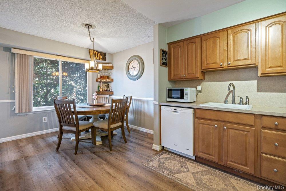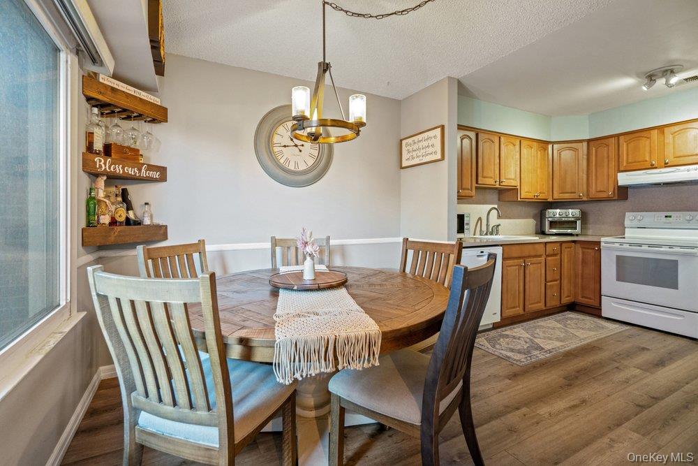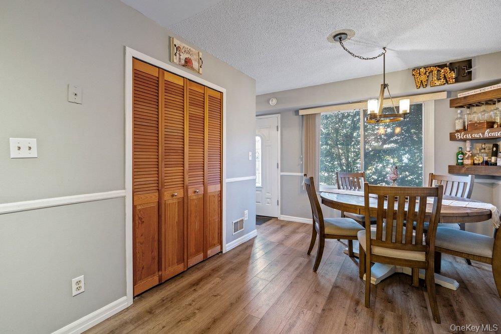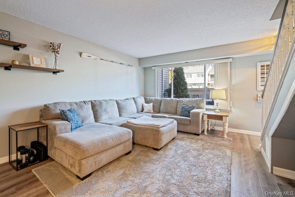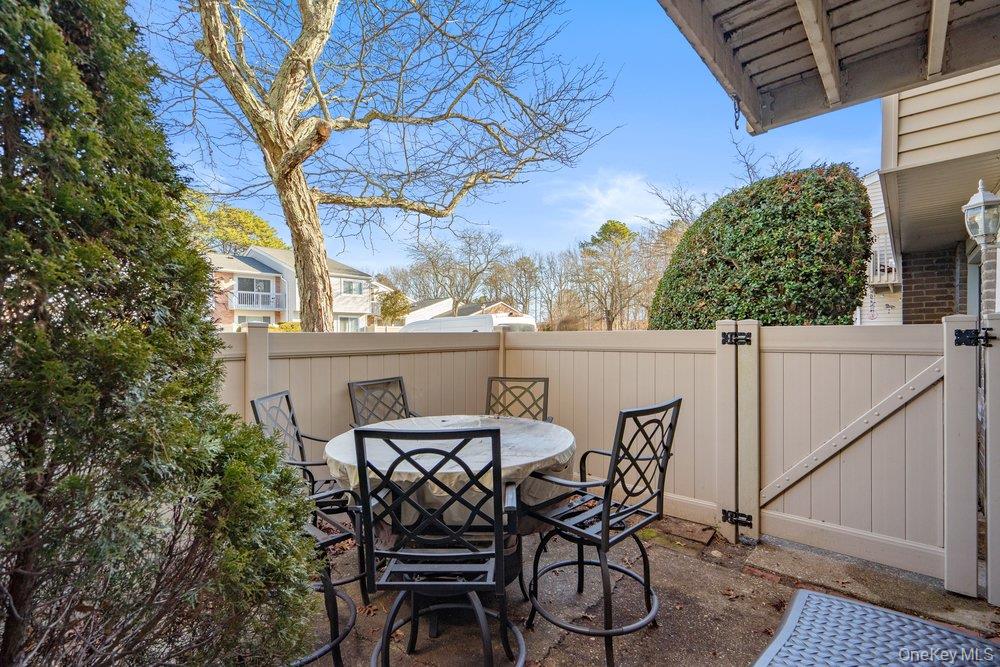 Welcome to this well-maintained 2 bedroom, 1. 5 bath condo located in the desirable Woodgate Village. The main level features a spacious living room, kitchen with updated cabinets, a separate dining area, and a convenient half bath. New flooring throughout adds a fresh, modern touch. Upstairs you'll find a generously sized primary bedroom with semi walk in closet plus an additional large double closet. Sliding glass doors lead to a private balcony Spacious second bedroom with custom wall. There is a fully fenced private patio which offers outdoor space for relaxing and entertaining. New hot water heater and updated heat & CAC unit. Separate shed for extra storage. Ideally located close to shopping, restaurants, schools, major roadways, public transportation, Holbrook country club, the Long Island Railroad and MacArthur airport.