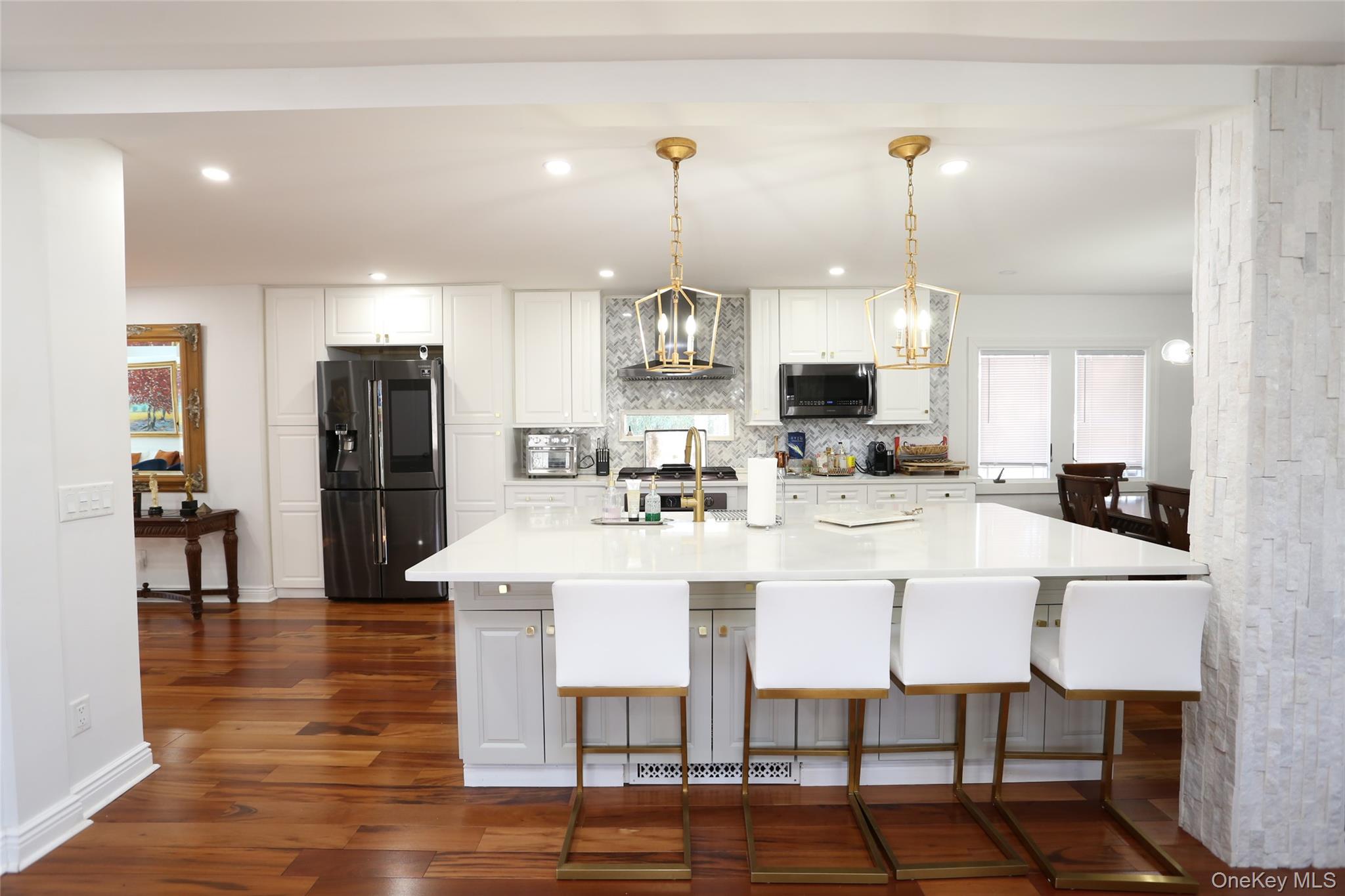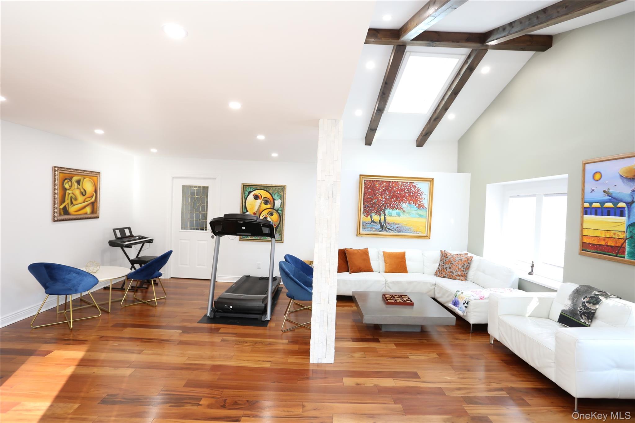 No Expense Spared! Where to Start. . . . This Unique Side Hall, now converted to Center Hall Colonial features everything you could ask for! Legalized @2500 square feet ! The moment you enter, you are greeted with a complete open layout featuring a GORGEOUS kitchen with an oversized center island topped with Silestone Quartz, a farmer sink, beautiful modern brass light fixtures, Brazilian oak flooring, hi end Samsung appliances June 2020 , a living room area with additional windows on both sides of the home added for extra sunlight, New windows on main floor, . . . . leading to a family room with vaulted ceiling and a half bath. All new electric wiring, furnace and ac June 2020 and additional ductless in master br. Gorgeous wood banister with iron railing, a new front door to match. Upstairs has 4 ample sized bedrooms with the Primary bedroom featuring a deeper closet along with blt in wardrobe closet, a full bathroom completely renovated with additional linen closet. There are also 3 additional linen closets in the hallway along with another renovated full bathroom ! Enter the finished basement and you can enjoy a full renovated additional family room area along with two additional nice sized rooms , one with a closet , the other with a wardrobe closet and a full beautiful bathroom with shower. Washer/dryer and ample room for storage. Additional features are beautiful moldings, recessed lights, outdoor kitchen area, Covered Trex oversized deck with covering/ceramic roof imported from Portugal ! Main house roof is 10 years old with leased transerable solar panels ($130/mo) with about 9 years left. hot water heater - June 2020. smart thermostat South Orangetown schools , brand new sump pump, new spray foam insulation , Washing machine 2 days old (Jan. 2026) and the list goes on. . . . . . . . . . . . . . Close to schools, shopping and major thorough fare , close to NJ Border. . . . . . . . . . . . .