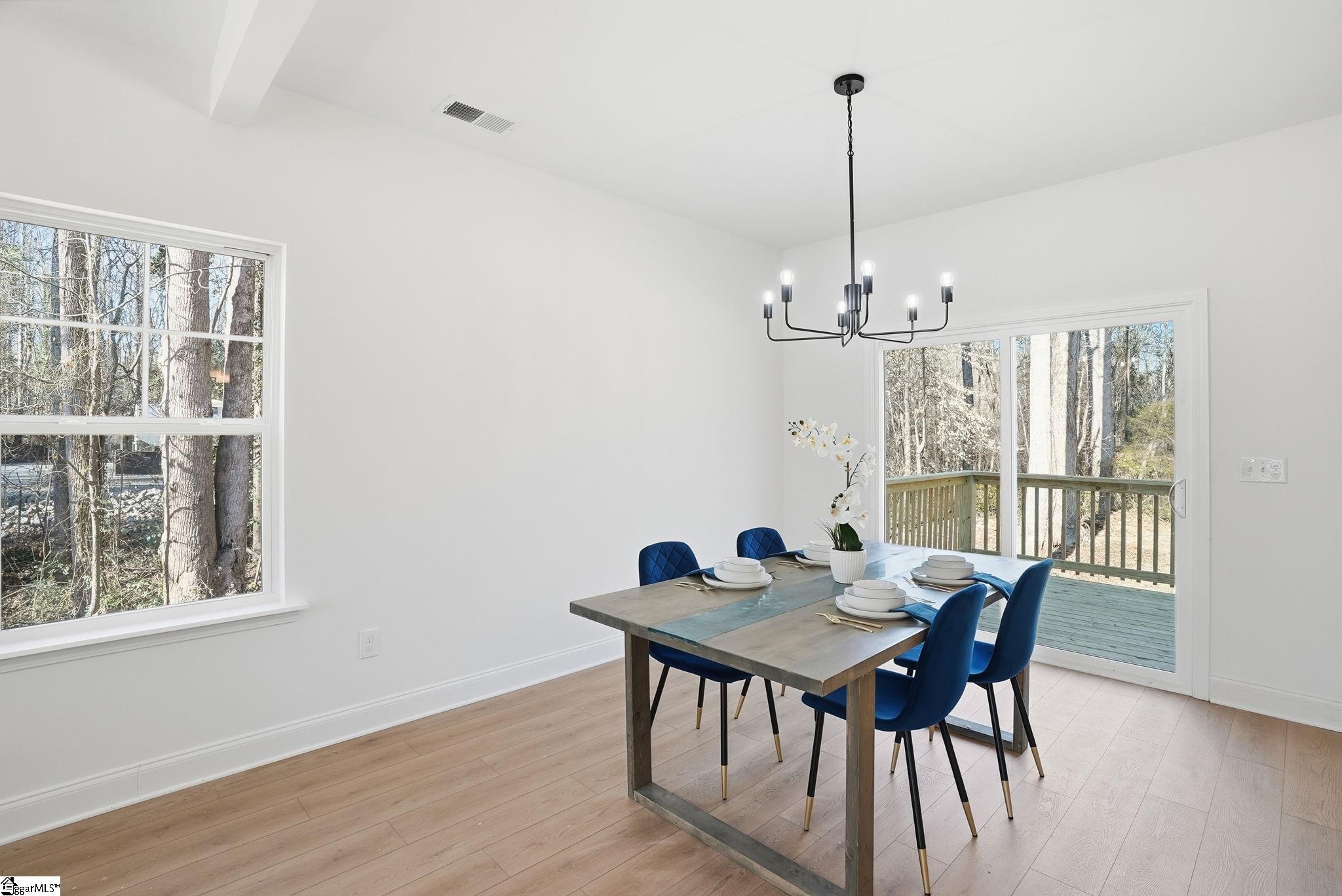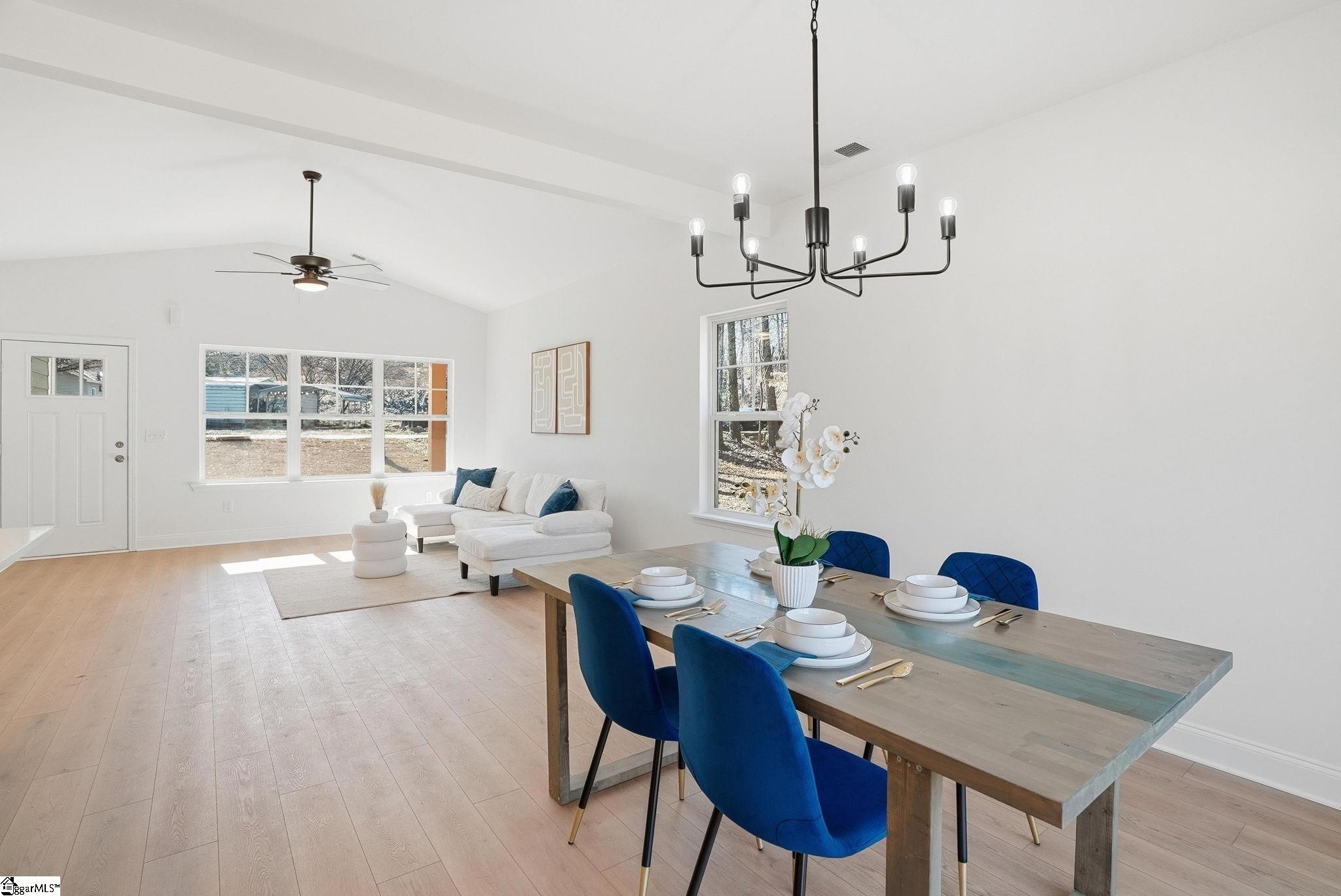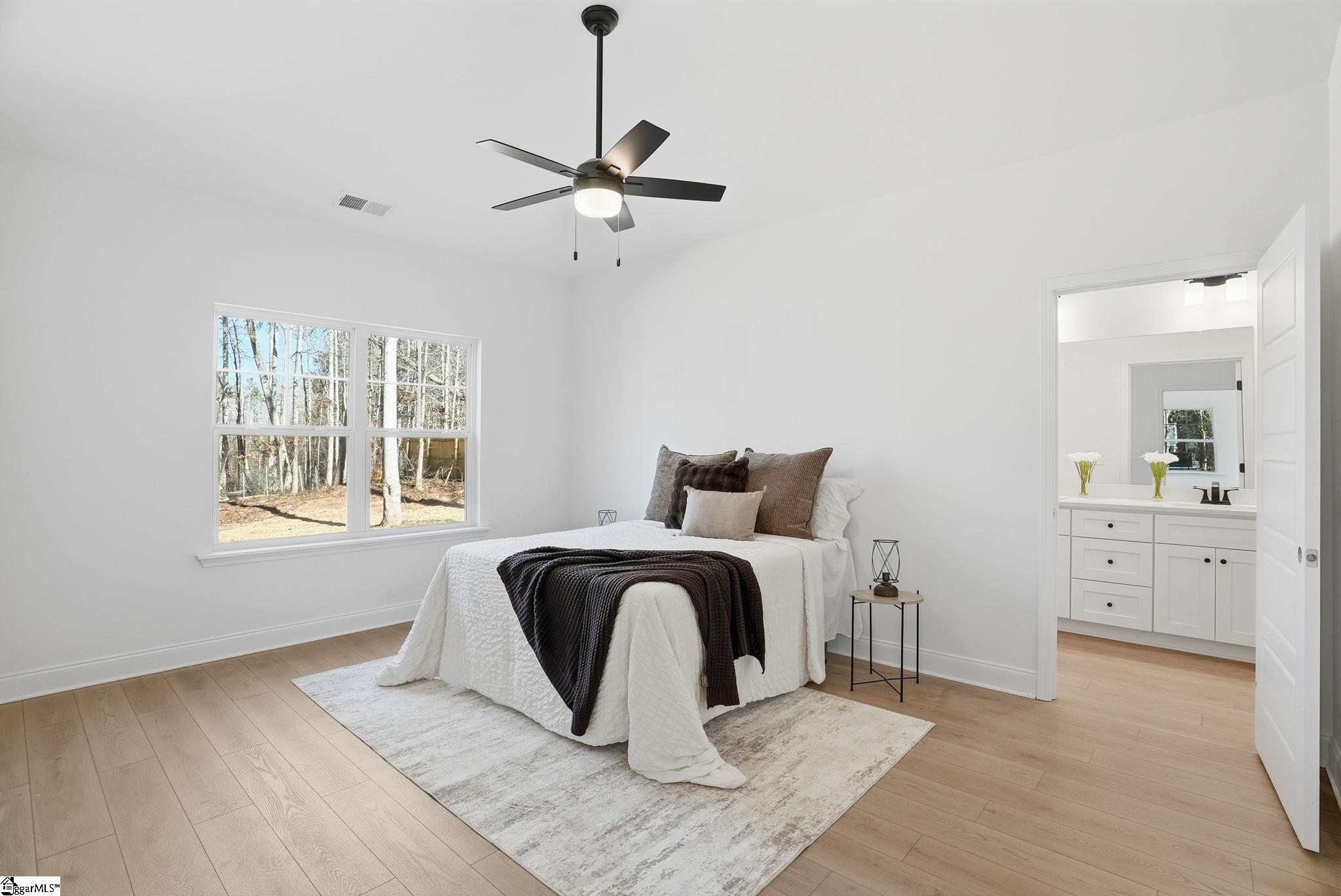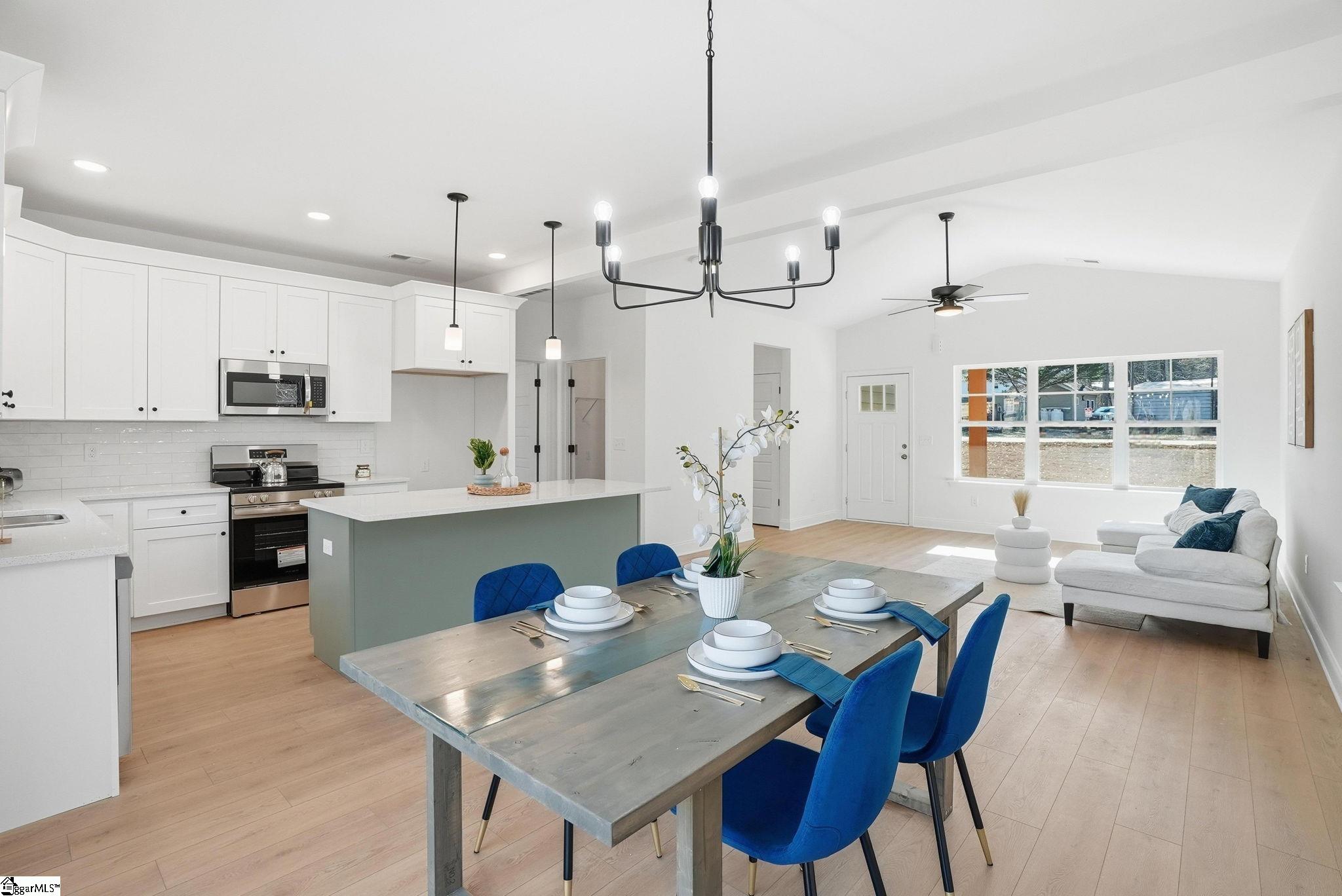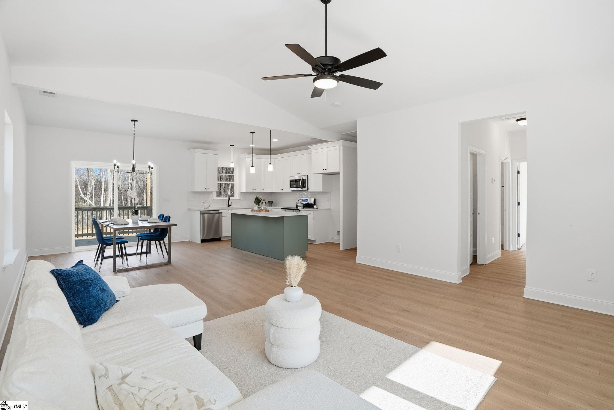 Tucked into a peaceful, tree-lined setting, this beautifully crafted new construction home is where modern comfort meets everyday warmth, and where life slows down just enough to be enjoyed. As you step inside, natural light pours across luxury vinyl plank flooring that flows seamlessly throughout the home, setting the tone for elevated yet effortless living. The open-concept kitchen and dining space is the heart of the home, anchored by a 7-foot island topped with quartz and finished in a tone that thoughtfully mirrors the exterior, bringing the warmth of the outdoors right inside. With stainless steel appliances, high-end finishes, and clean modern lines, this is a space made for morning coffee, family dinners, and hosting with ease. The split floor plan offers both privacy and functionality. The primary suite feels like a true retreat with vaulted ceilings, a spa inspired en-suite bath featuring double vanities, a tiled walk-in shower, and a generous walk-in closet designed for real life. Two additional spacious bedrooms provide flexibility for family, guests, or a home office, each filled with sunlight and thoughtful design. Step outside to your large deck overlooking a private, tree-lined backyard, where evenings are quiet, mornings are peaceful, and nature becomes part of your daily routine. And then, there’s the freedom. No HOA. No extra rules. No limits. This is your home, your space, your vision. Location? Simply exceptional. You’re minutes from downtown Travelers Rest, with its charming shops, local restaurants, and small-town energy. The Swamp Rabbit Trail invites you outdoors for biking, walking, and fresh air, while the Blue Ridge Mountains are right there when adventure calls. Plus, you’re just 15 minutes from downtown Greenville and only moments from Wade Hampton Boulevard, keeping everything you need within easy reach. This home isn’t just new, it’s intentional. It’s warm. It’s inviting. And it’s ready for the right person to walk in, exhale, and say… this is home.