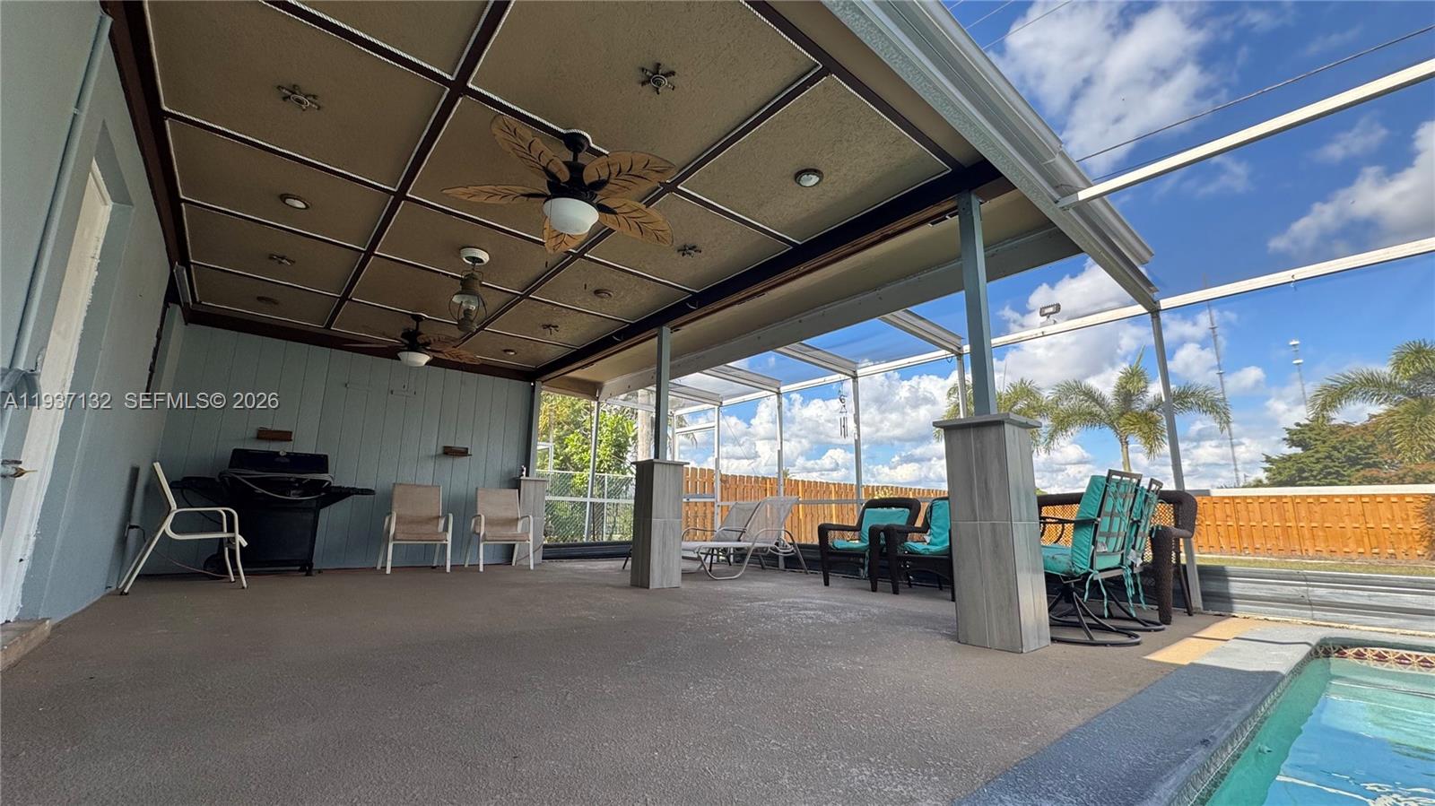Recent upgrades include a brand-new roof (2024), fully updated kitchen and bathroom (2025), and new flooring throughout. The home also features a screened-in saltwater pool, indoor bar, and cabana bath, ideal for indoor-outdoor living.