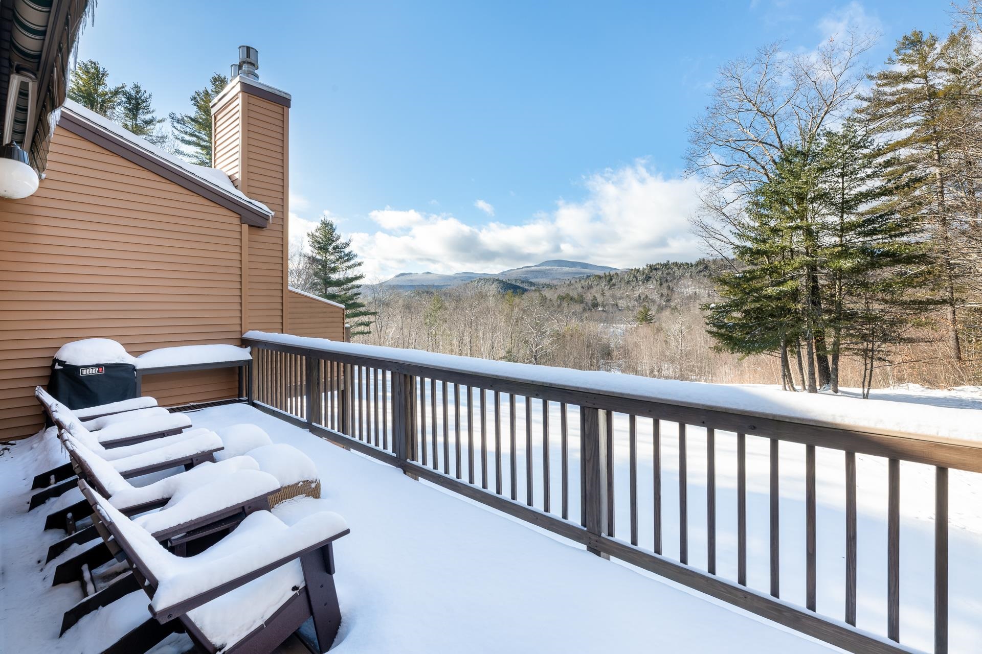 Turn-key, fully updated 2-bedroom, 2-bath end-unit condo offering mountain views and a peaceful riverfront setting. Bright open layout with an updated kitchen, comfortable living area with propane fueled wood stove, and sliders to a private deck featuring a retractable awning, ideal for enjoying sunsets and mountain scenery. Located in the desirable Star Ridge community, amenities include a swimming pool, tennis courts, riverside decks, and kayak storage with easy Pemigewasset River access. No rentals permitted, preserving a quiet, owner-occupied environment. Just 13 minutes to Loon Mountain in Lincoln, NH. Move-in ready, low maintenance, and being offered fully furnished, this property is perfect as a primary residence or White Mountain retreat.