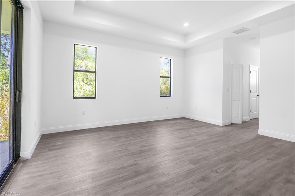 Experience the Florida Lifestyle in this meticulously designed, modern, move-in-ready home! This home boasts 3 bedrooms, a den, 2 bathrooms, an open floor plan, 12 ft. ceilings, an oversized side-entry double car garage, impact windows, a lanai, sprinkler system, and an extended concrete driveway. The open floor plan seamlessly combines a spacious living area, a deluxe kitchen island, and a separate dining room, making it an ideal space for entertaining. The master bedroom features two spacious walk-in closets, while the bathroom includes dual vanities and a walk-in shower. You'll find stainless steel appliances, granite countertops, soft-close shaker cabinets, luxury vinyl flooring, and energy-efficient LED lighting throughout the home. Conveniently situated near SWFL International Airport, FGCU, shopping centers, and Top Golf, this property offers effortless access to the best of Southwest Florida.