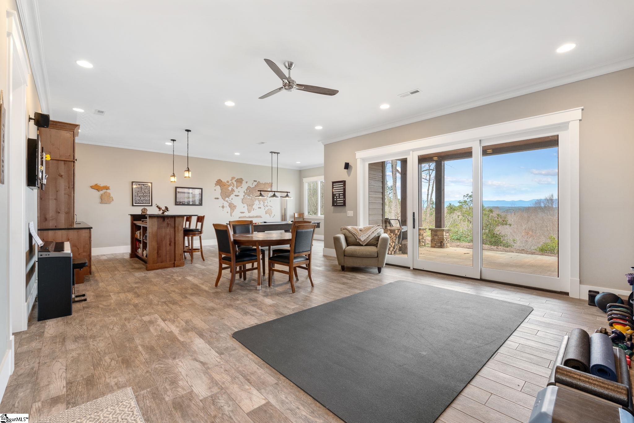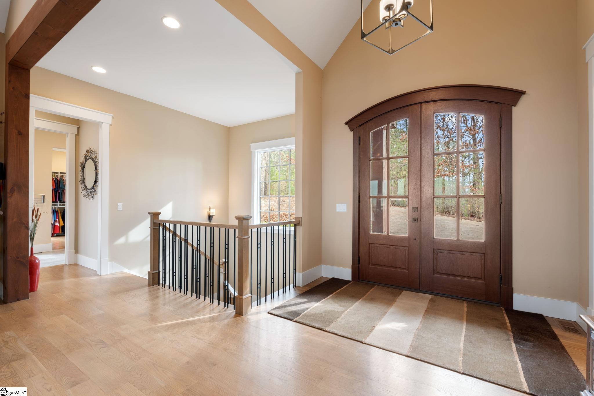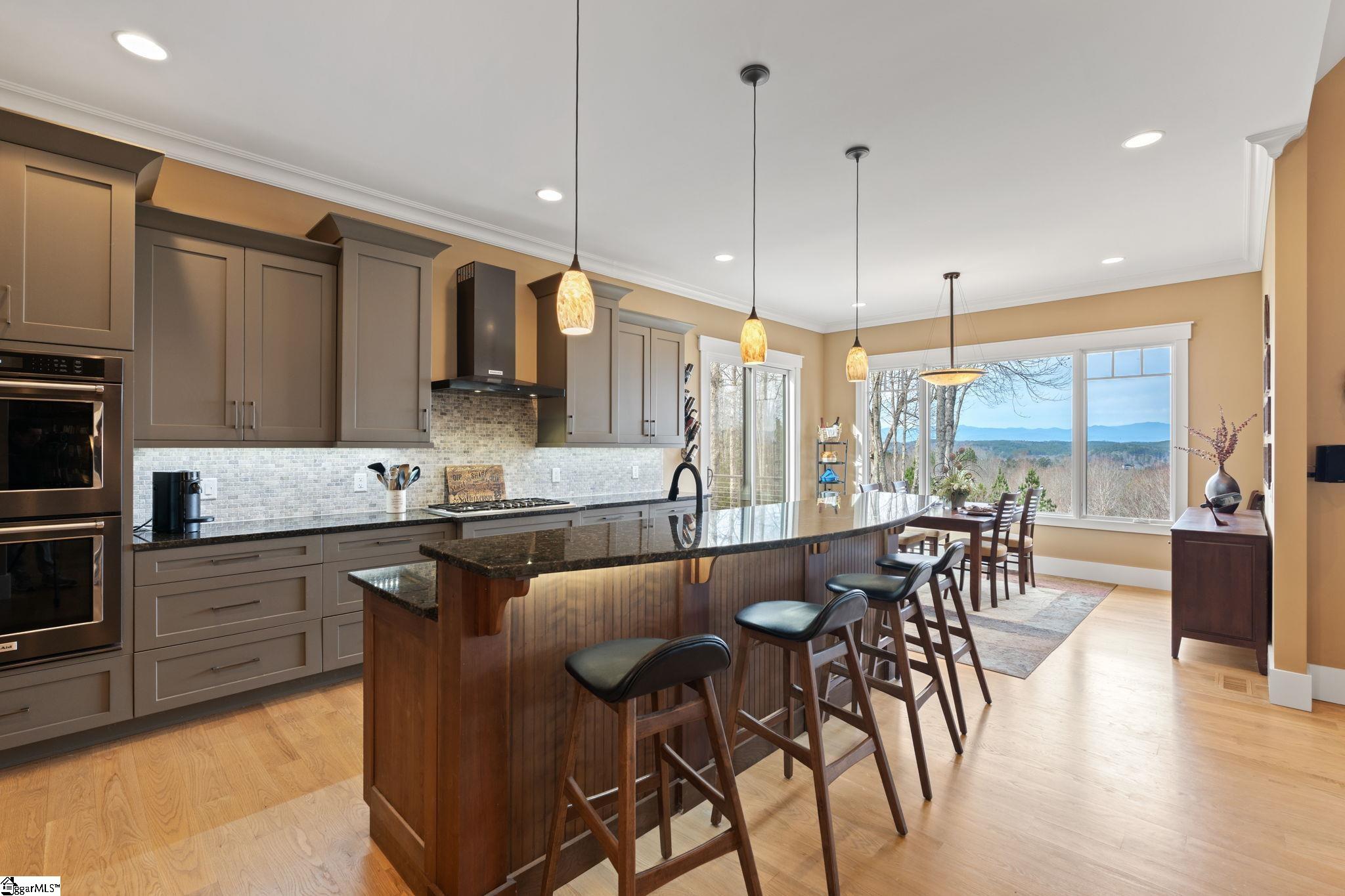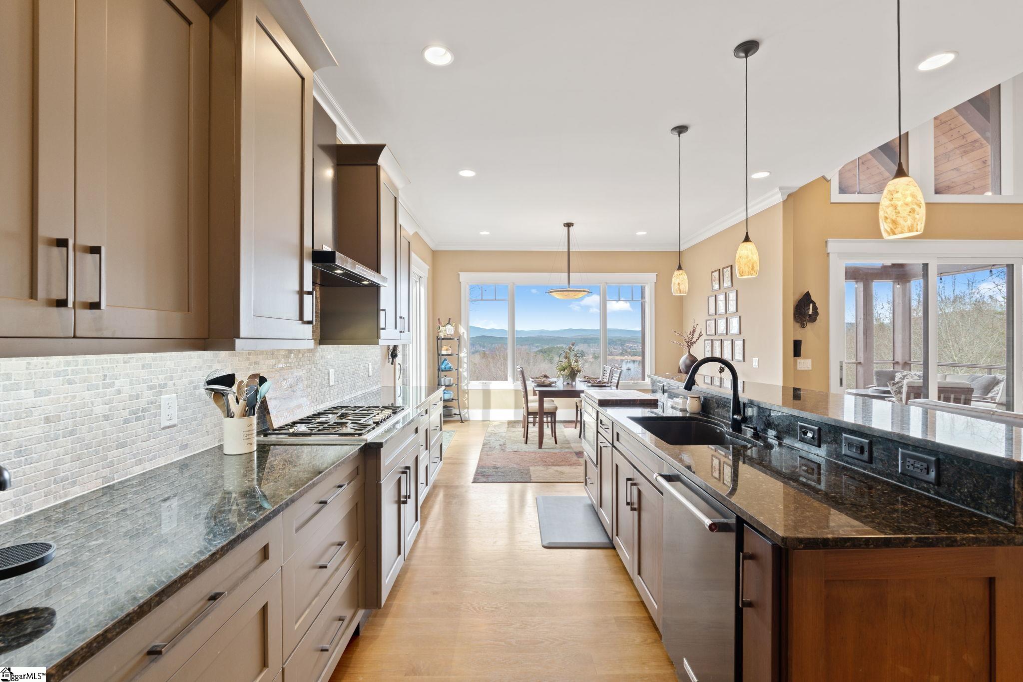 Picturesque mountain rustic home in the Cliffs of Keowee Springs combines a private wooded setting with captivating mountain and lake views from nearly every room. Built by Hillcrest Homes, the home sits on two lots totaling over five acres in The Cliffs at Keowee Springs. This property is ideal as a primary residence for a small family or an exceptional getaway retreat. The main level includes a great room, kitchen, dining area, primary bedroom suite, and powder room with site-finished, white oak hardwood flooring throughout. The open concept great room features vaulted ceilings, a dramatic stacked stone fireplace and clerestory windows that fill the space with natural light. Panoramic sliding doors open to a spacious screened porch with natural flagstone flooring, creating a seamless connection to outdoor living. The kitchen is well appointed with black stainless steel appliances, double ovens, a gas cooktop, and a generous island with breakfast bar. Just off the adjacent dining area, a flagstone patio offers the perfect place to enjoy a fire or sip morning coffee. The primary bedroom is a private retreat with panoramic views. The en suite bathroom offers dual vanities, a walk-in shower, and a separate water closet. The spacious walk-in closet includes custom shelving along with a window seat. The laundry room is conveniently located adjacent to the primary bedroom. The lower level walkout is thoughtfully designed to accommodate family and guests and also offers long-range mountain views from every window. A multipurpose recreation area includes a wet bar with a wine chiller and built-in cabinetry. Two bedrooms are located on this level, allowing one to be easily used as a home office, along with one full bathroom. An unfinished storage area provides a generous amount of additional storage space. This home is just minutes from the front gate and clubhouse and is offered in pristine condition. It presents an outstanding opportunity for those looking to downsize while continuing to enjoy the benefits of a Cliffs membership. Membership privileges provide access to exceptional amenities across seven clubs throughout South and North Carolina, including award winning golf courses, fine dining, wellness centers, tennis and pickleball courts, and more.
