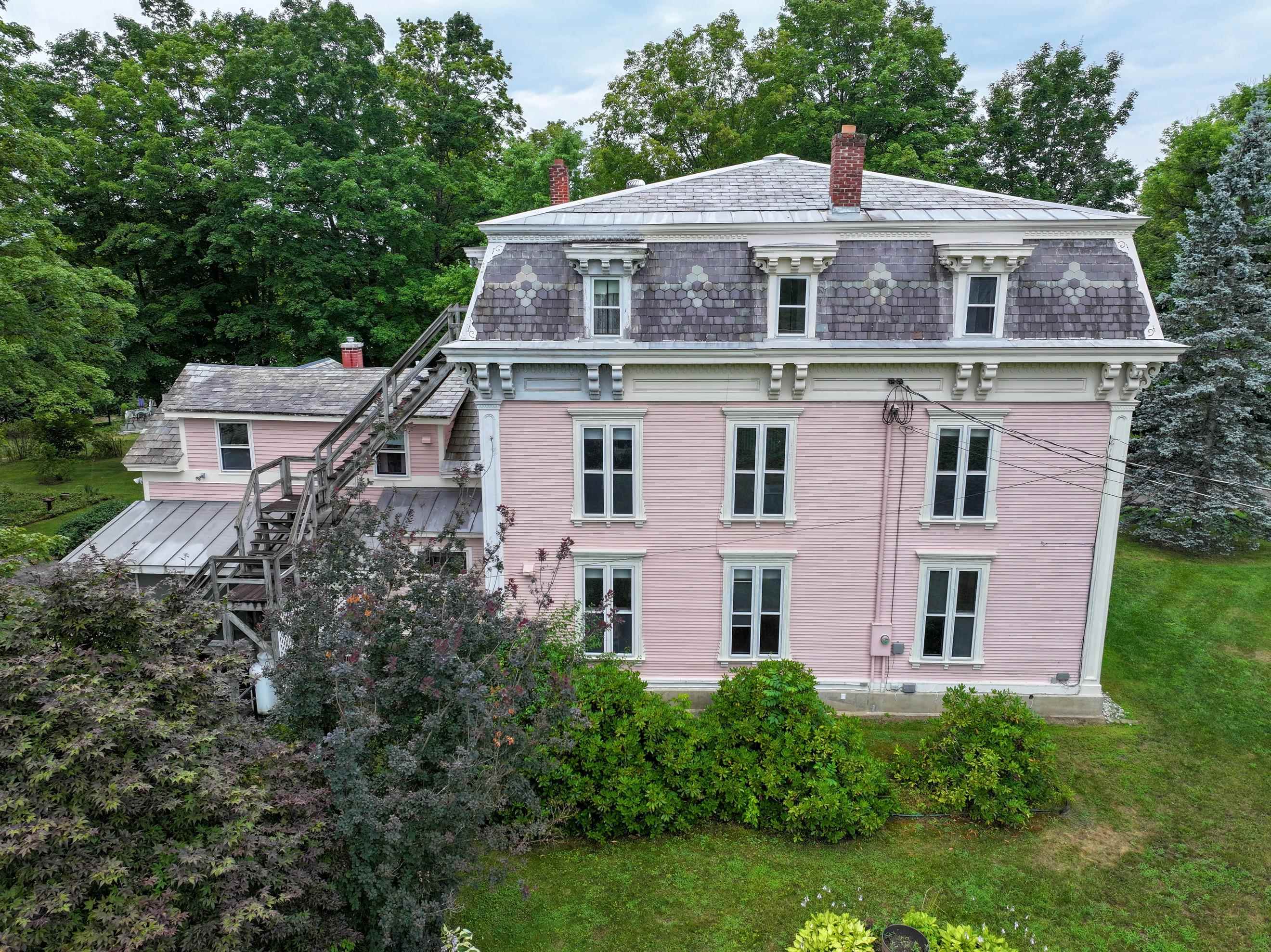 This impressive and generously sized Victorian residence, located in the heart of Brandon, Vermont’s celebrated artist community, offers a rare opportunity for those seeking space, charm, and versatility. Thoughtfully updated to blend classic architecture with modern comforts, this home features an expansive layout with 9 spacious bedrooms, 6 bathrooms, and over 5, 000 square feet distributed across three levels. The property’s history as a successful bed and breakfast, with all the associated infrastructure including an integrated fire alarm system, highlights its commercial potential. Large guest rooms and private baths are ideal for hosting guests, multi-generational living, or even business retreats. Zoned within the Village District, the home offers flexibility for both residential and commercial prospects. Among its many features are two efficient heat pumps for year-round climate control, a well appointed kitchen, separate living quarters for privacy or rental opportunities, and a beautifully landscaped 0. 85 Acre lot filled with mature trees and plantings. Ample paved parking supports gatherings or events. A prominent two-story carriage barn enhances the property, providing covered vehicle storage, a sizable workshop, and an expansive storage loft - perfect for storage or potential conversion. Well-maintained and move-in ready, this exceptional property presents a unique blend of historical elegance, practical amenities, and endless potential for its new owners.