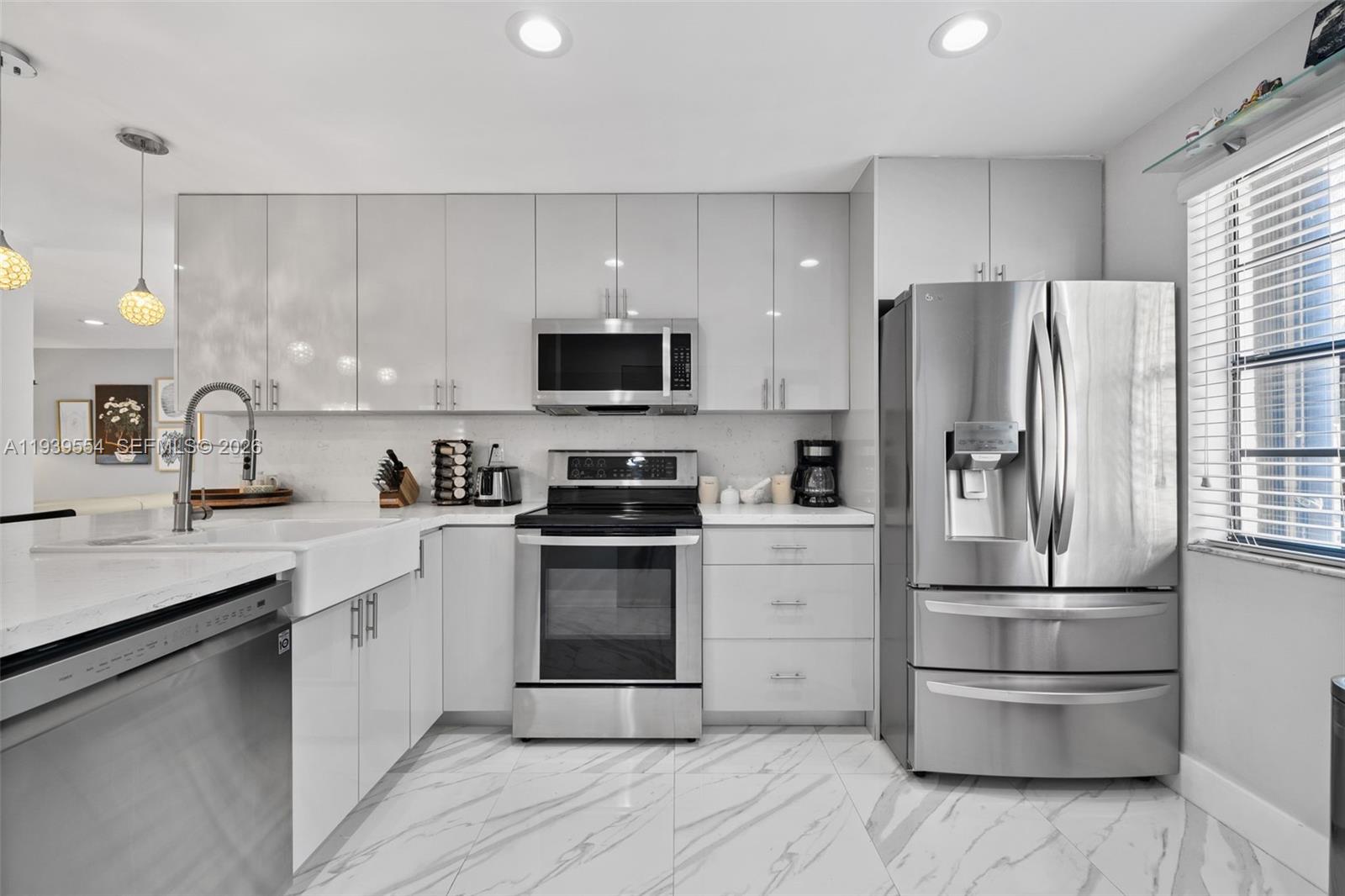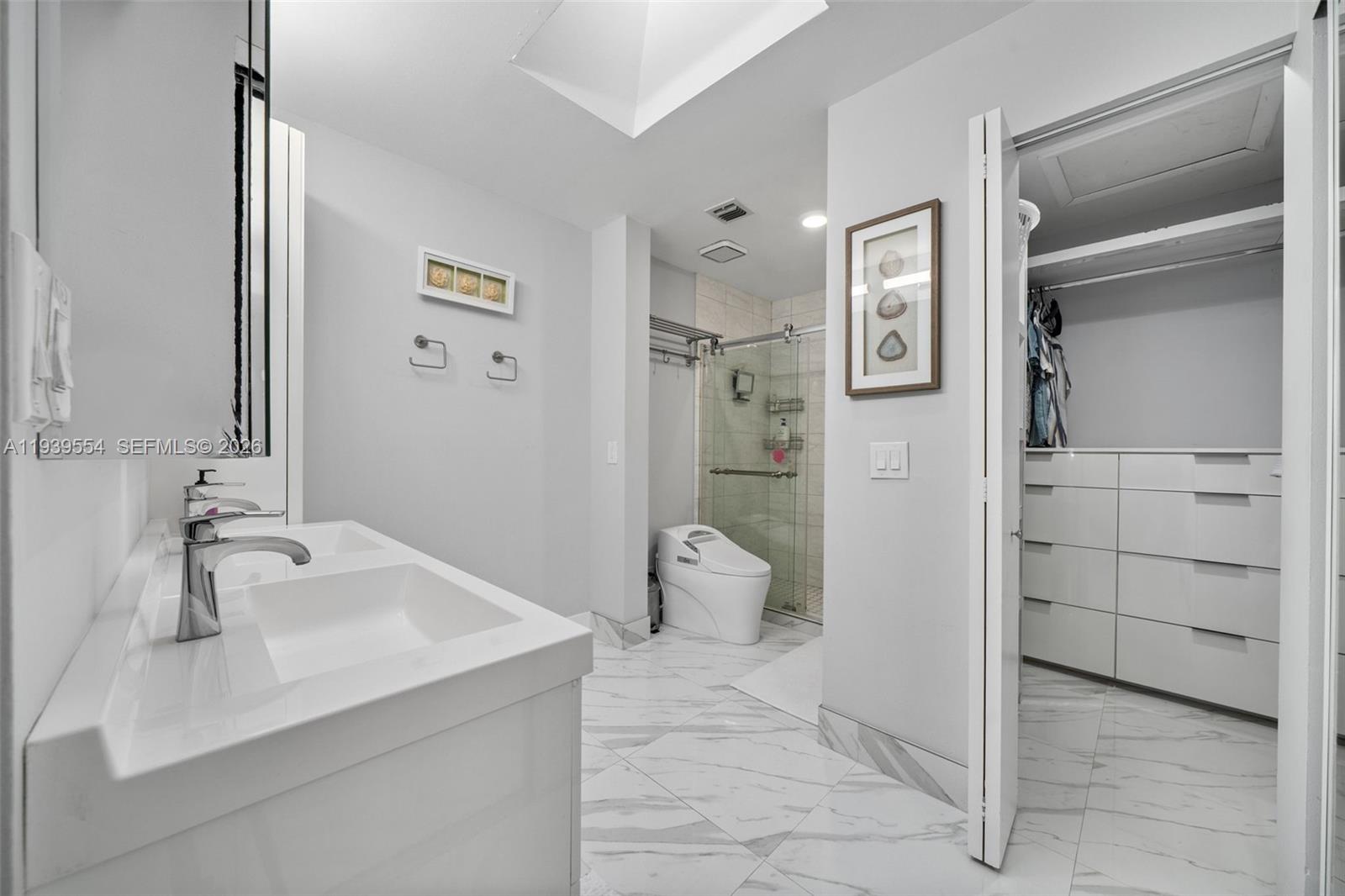 Totally modern, fully remodeled 2-bedroom residence located in a prestigious gated waterfront community in Aventura. This bright and stylish unit features a contemporary open layout with porcelain flooring throughout, a sleek modern kitchen, and a skylight that fills the home with natural light.