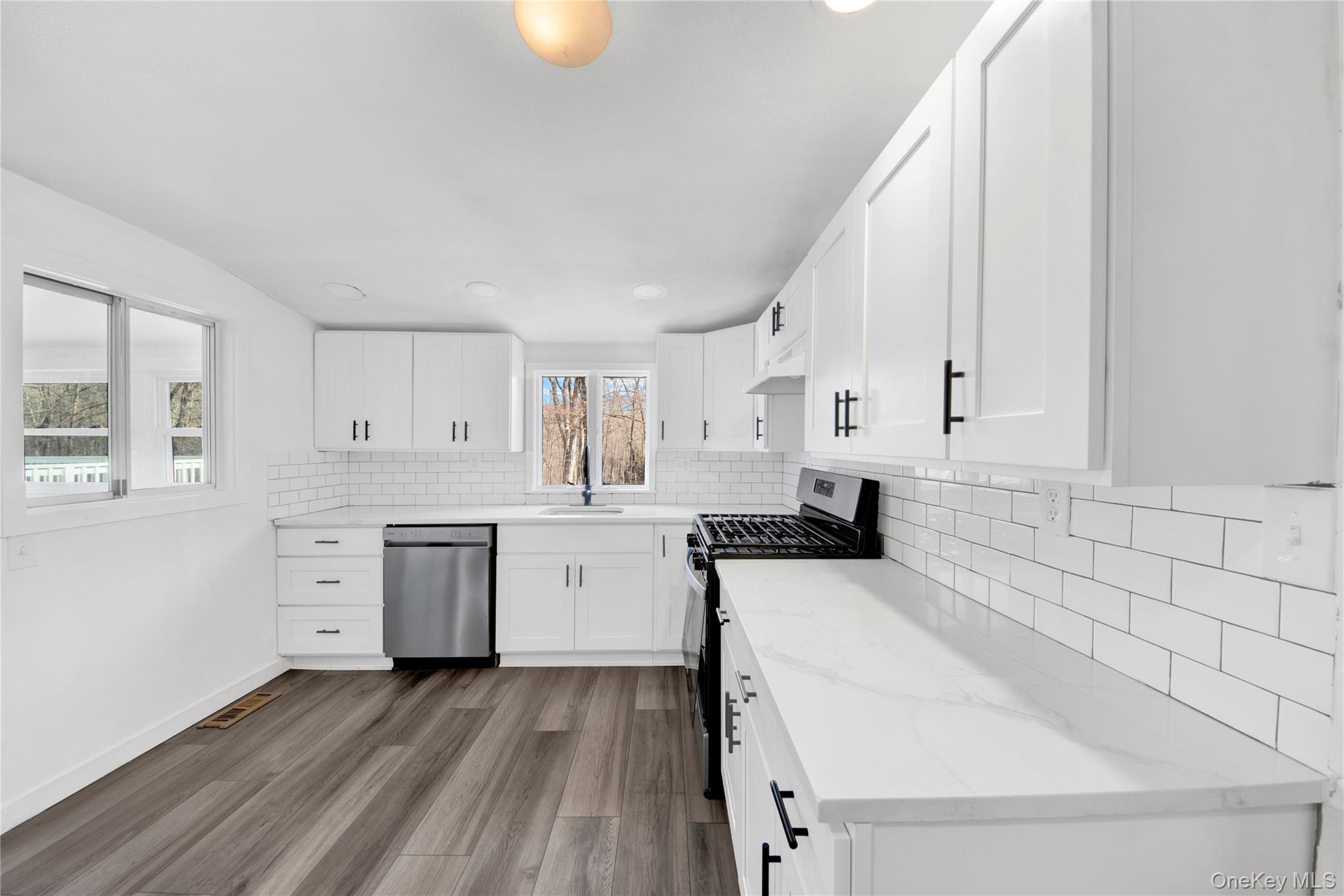 Welcome to 690 Gipsy Trail Road, a beautifully updated 4-bedroom, 2. 5-bath farmhouse-ranch nestled on a private 1. 05-acre parcel in serene Carmel, NY. With 1, 828 square feet of stylishly reimagined living space, this home delivers the perfect balance of classic charm and modern comfort. Step into the light-filled living room featuring striking vaulted ceilings, exposed wood beams, and rich wide-plank flooring. The newly renovated kitchen offers crisp white shaker cabinetry, subway tile backsplash, quartz countertops, and stainless steel appliances — an ideal space for gathering and cooking with ease. The flexible floor plan includes four generously sized bedrooms and two and a half sleek, modern baths. A finished walk-out basement offers bonus living or work-from-home space with natural light and direct access to the backyard. Enjoy peaceful moments and vibrant gatherings outdoors with expansive deck space, a gently sloping yard perfect for gardening, play, or simply soaking up nature’s beauty. This home is set back from the road and surrounded by trees, providing privacy and a sense of retreat, while still being conveniently close to local shops, restaurants, and commuting routes. If you’re seeking comfort, privacy, and updated design in the heart of Putnam County, this turnkey home is not to be missed.