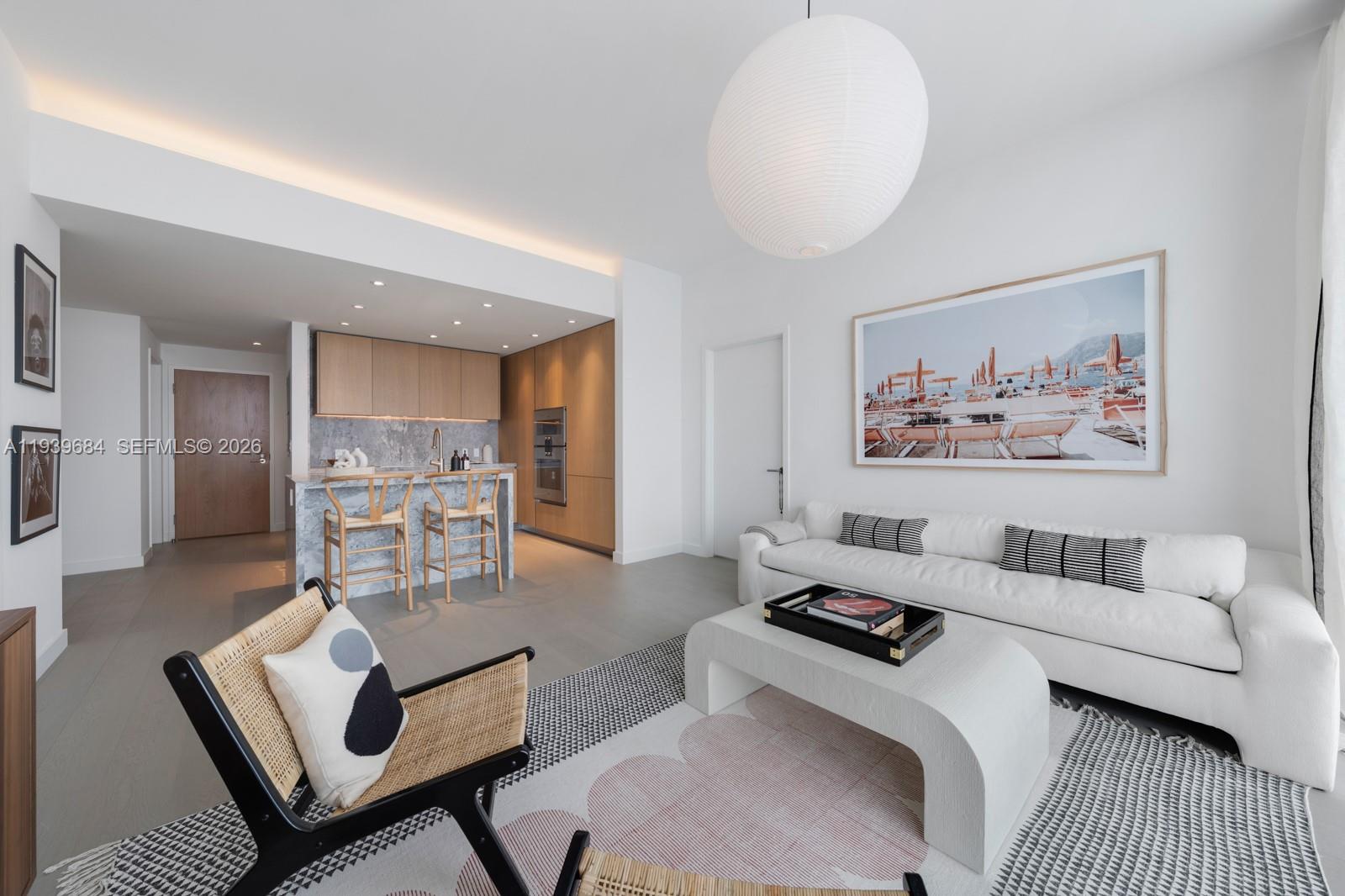 Step Inside With Me! Rising high above the sands of Miami Beach, fully-furnished Residence 4004 in Five Park’s exclusive Canopy Tower showcases panoramic ocean views and sets a new standard for luxury living. This 2-bedroom sky home features 10’ ceilings and floor-to-ceiling windows that bathe its interiors in natural light. The showcase kitchen is outfitted with Italian oak cabinetry, marble finishes, & Gaggenau appliances. The primary suite offers a marble-clad bath complete with dual vanities and a wet room with a soaking tub & shower. An expansive private balcony extends the living space outdoors. Thoughtfully designed enhancements include added custom lighting and motorized shades. Five-star amenities include 2 pools, 2 fitness studios, spa, beach service, & close proximity to SoFi.