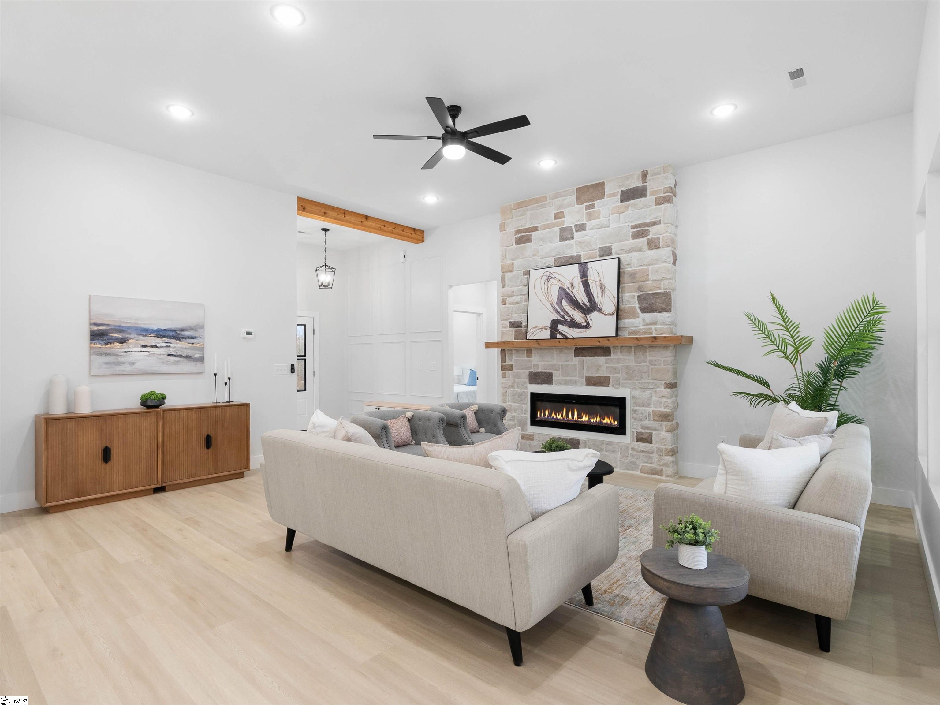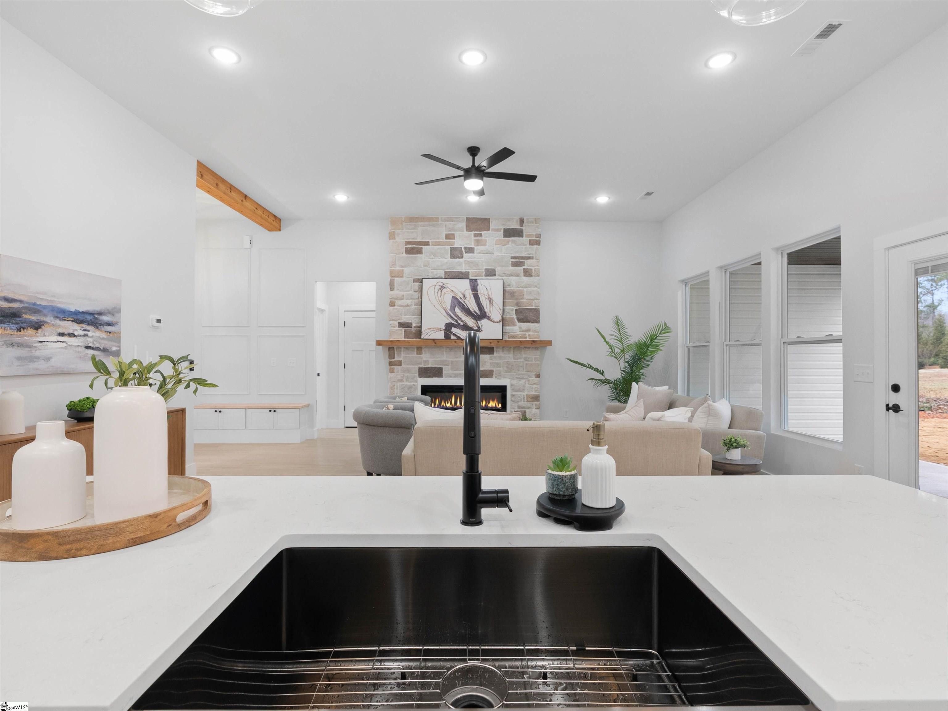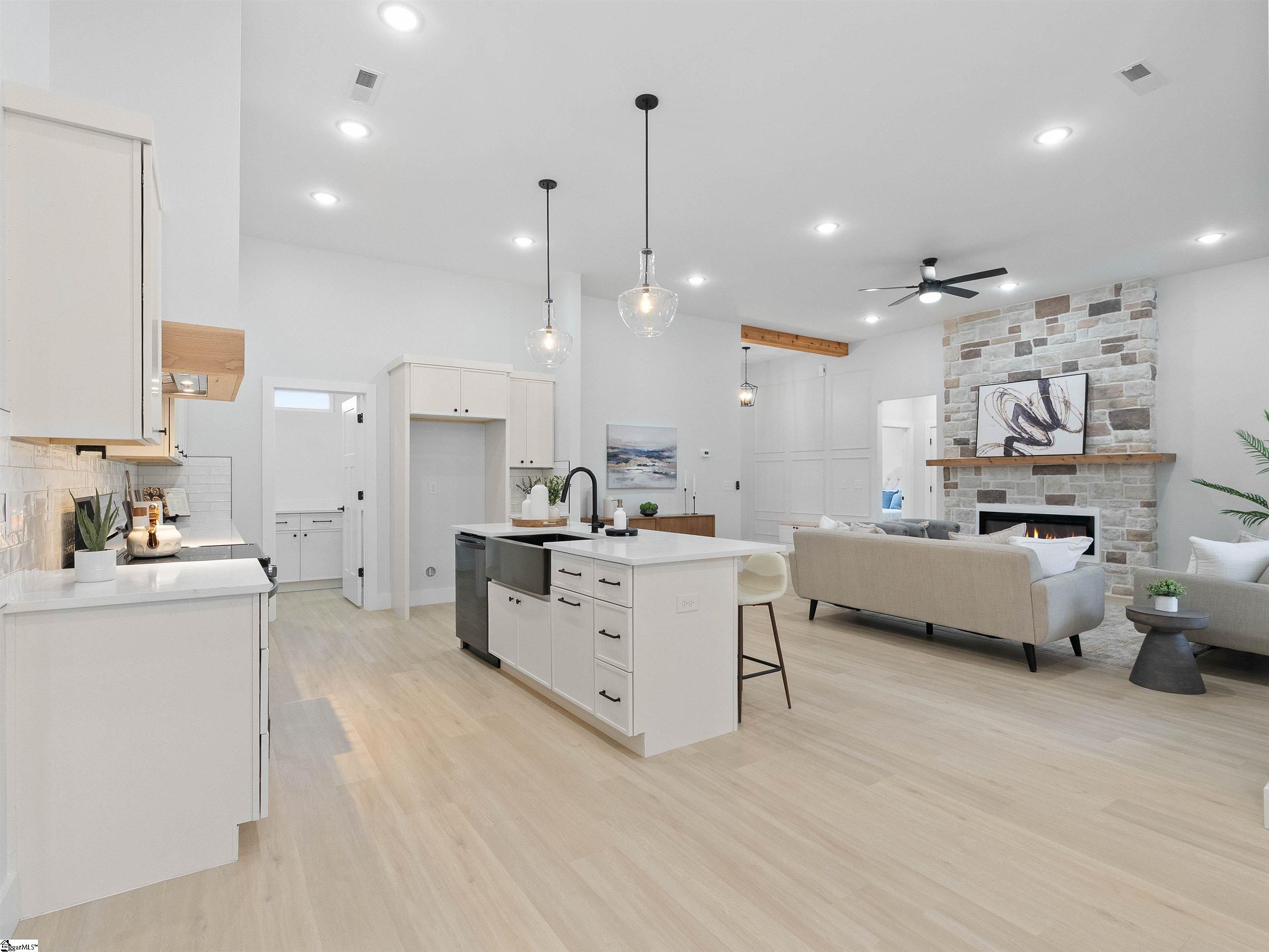 1754 Fish Camp Rd is SINGLE-STORY home featuring 3 bedrooms, 2 full bathrooms, and a dedicated office, providing flexible space to live, work, and unwind, all on 0. 71 acres. From the moment you arrive, the COVERED FRONT PORCH invites you to slow down—perfect for rocking chairs and morning coffee. Out back, a large covered rear porch offers privacy and a serene setting ideal for outdoor entertaining or quiet evenings at home. Inside, the open-concept layout seamlessly connects the kitchen, dining, and living areas, creating a warm and inviting space for everyday living and gatherings. Quality craftsmanship, thoughtful details, and designer finishes throughout elevate the home and make it truly stand out. Don't miss the LARGE, WALK-IN PANTRY with entry to the garage for ease of unloading groceries. Enjoy peace of mind with new construction warranties, including a 1-year workmanship warranty, 2-year mechanical warranty, and 10-year structural warranty. Located in the growing Chesnee area, Verde Farms offers a relaxed lifestyle with room to breathe—yet remains convenient to shopping, dining, and everyday essentials. Schedule your private showing today and experience the charm, space, and comfort this move-in-ready home has to offer.