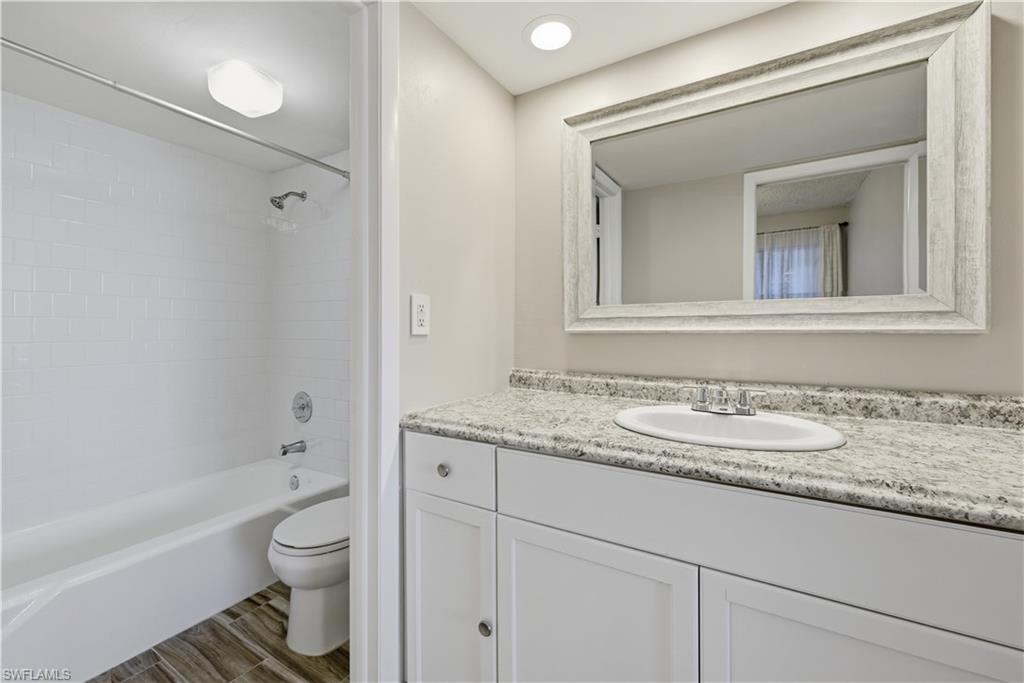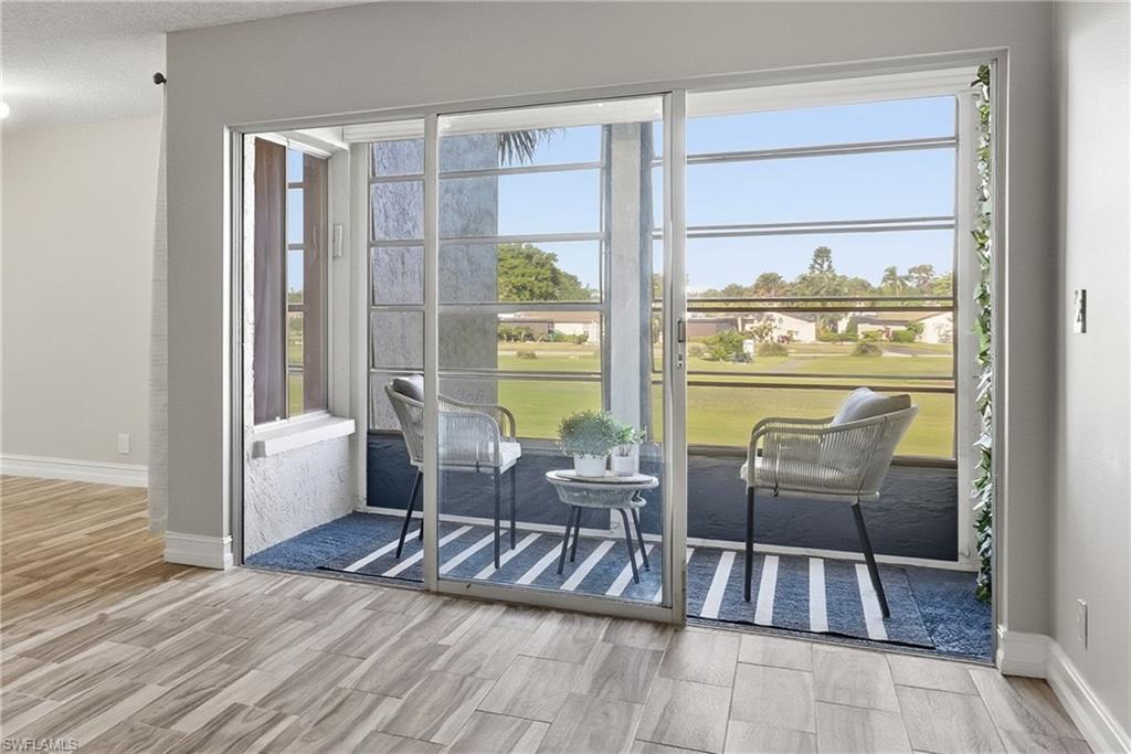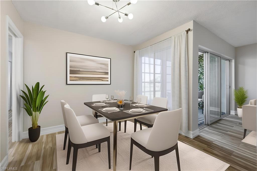 Amazing location! Just 10 minutes from 5th Avenue 's vibrant restaurants, shops and beaches! Freshly renovated 1 bedroom, 1 bath condo with a screened in lanai overlooking the sunny verdant golf course. Located in the desireable Lakewood community. Recent upgrades include stainless steel appliances, new lighting, new paint and a designer staged lanai. HOA fees include water, basic cable, high speed internet, landscaping, community pool and trash removal and more. The unit comes with a washer/ dryer and a deeded parking space.