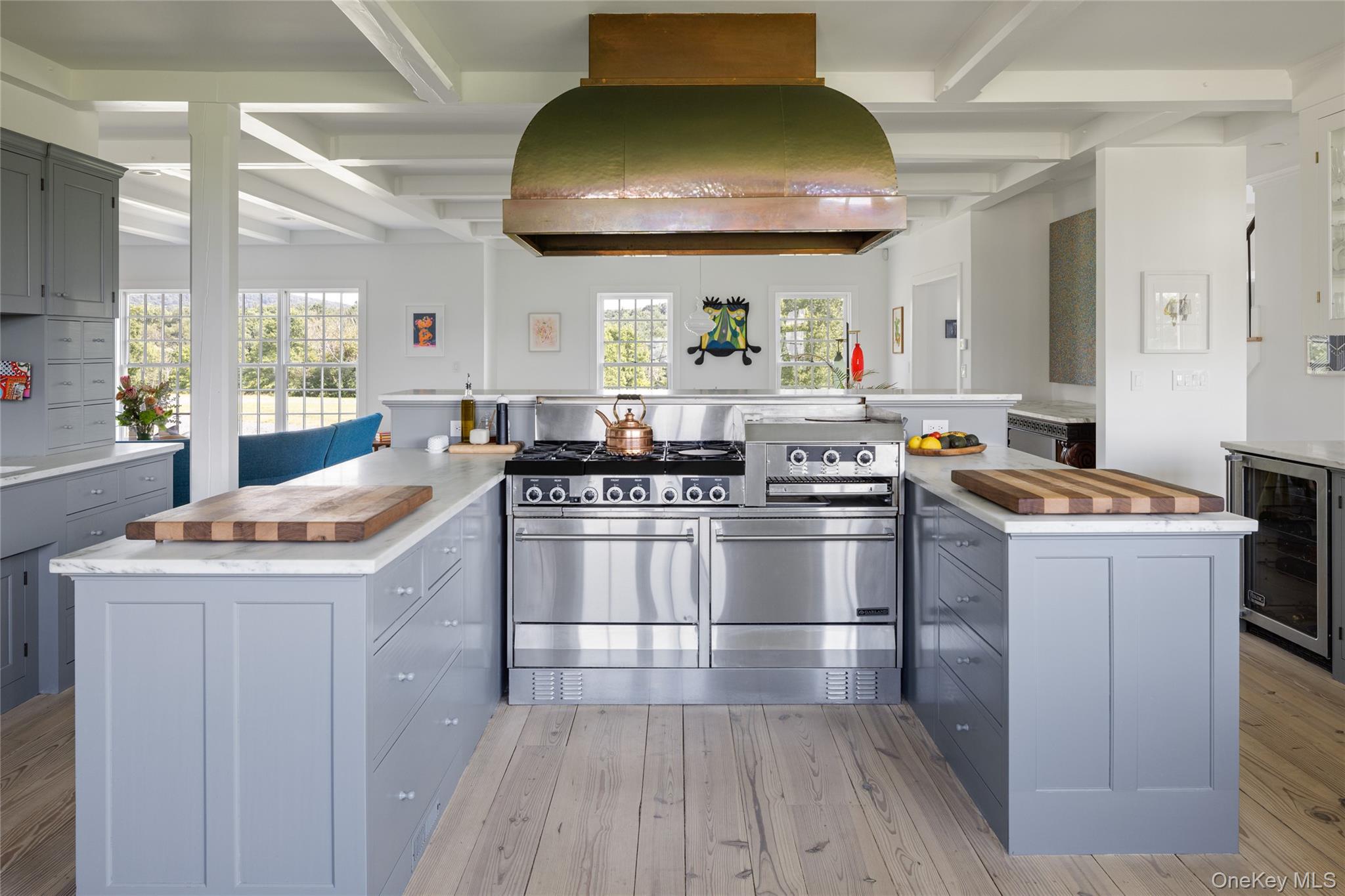 Perched High on a Hill, A Modern Sanctuary of Timeless Elegance. Set atop 74 acres of extraordinary privacy in the historic hamlet of New Concord, this refined center hall colonial commands sweeping views of rolling meadows, wooded trails, hay fields, and distant Catskill horizons. Bathed in sunlight throughout the day, the property offers a rare sense of peace and expansiveness, where nature, light, and craftsmanship exist in harmony. Custom-built to evoke the grace and authenticity of a 200-year-old estate, the home blends timeless architectural detail with thoughtful modern luxury. The interior unfolds with a balance of openness and intimacy, offering spaces that feel both grand and warmly livable. At the heart of the home is an expansive chef’s kitchen featuring honed Vermont Danby marble countertops, Kennebec cabinetry, a spacious pantry, and top-tier appliances, including a grand-scale luxury Thermador refrigerator and plumbed Wolf steam convection oven. The kitchen flows seamlessly into an oversized casual dining area and family room, ideal for relaxed daily living and entertaining. More formal rooms include a gracious dining room, refined reception or music room, and a light-filled sunroom with fireplace. Radiant in-floor heat warms the office, kitchen and mudroom, living room and entry, and dining and music rooms, while the sunroom is served by baseboard hot water and the upper level is divided into two zones for comfort and efficiency. Nordic matte white-washed reclaimed Southern pine floors, artisan-crafted twelve-over-twelve windows, and hand-forged wrought-iron hardware lend warmth and authenticity. Five wood-burning fireplaces, including two moss-lined stone fireplaces, add character and comfort, while limestone bath tiles and a spa-like primary bath elevate everyday living. The home is fully networked with Ethernet and Wi-Fi throughout and includes multiple office spaces, abundant storage, a private guest suite, and additional guest accommodations. The estate is exceptionally well equipped for both daily living and entertaining, with a professional six-burner Garland range with salamander, griddle, grill, and dual ovens, two Bosch dishwashers, Viking bar and wine refrigerators, and twin Sub-Zero refrigerators in the basement providing generous additional cold storage. A drop freezer, water softener, bar sink filtration, high-capacity range hood, Vermont Castings wood stove, and split system in the office enhance comfort and functionality. Outdoors, a newly constructed gunite pool by Scott Pools is surrounded by an expansive granite patio with upgraded coping that remains cool underfoot. The pool features dual heaters, swim shelf, swim-out step, discreet lap lane, and premium cover. In spring, the lawn will be refreshed and the pool area styled with elegant furnishings, oversized planters, and Tucci umbrellas. The land itself offers rolling fields, woodland trails, fruit trees, and a fenced apiary with mature beehives. With generous road frontage and multiple driveway access points, the property provides enhanced privacy and flexibility. Raised-bed vegetable and herb gardens near the kitchen reinforce a lifestyle rooted in beauty, sustainability, and abundance. Additional amenities include a twenty-four by twelve garden shed, Level Two EV charger, Goshen-stone patios and walkways, a CeDur roof, and buried 400-amp electrical service. Security and Nest systems with cameras are in place for peace of mind. Despite its serene setting, the property is conveniently located to Albany, Troy, Saratoga Springs, Hudson, Chatham, Rhinebeck, Lenox, and Stockbridge, offering access to dining, culture, boutiques, and year-round recreation. Whether hosting gatherings or savoring solitude amid open land and endless views, this exceptional estate offers a rare and deeply satisfying way of living.