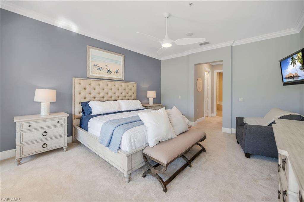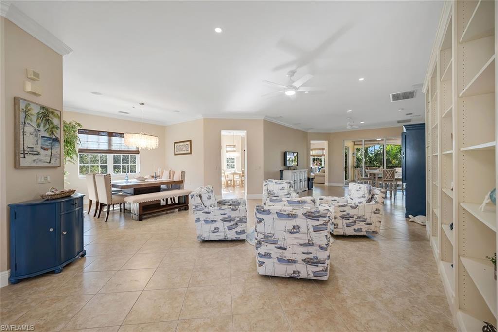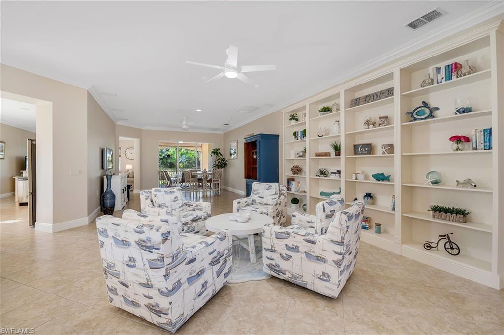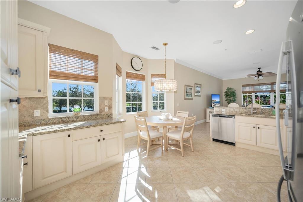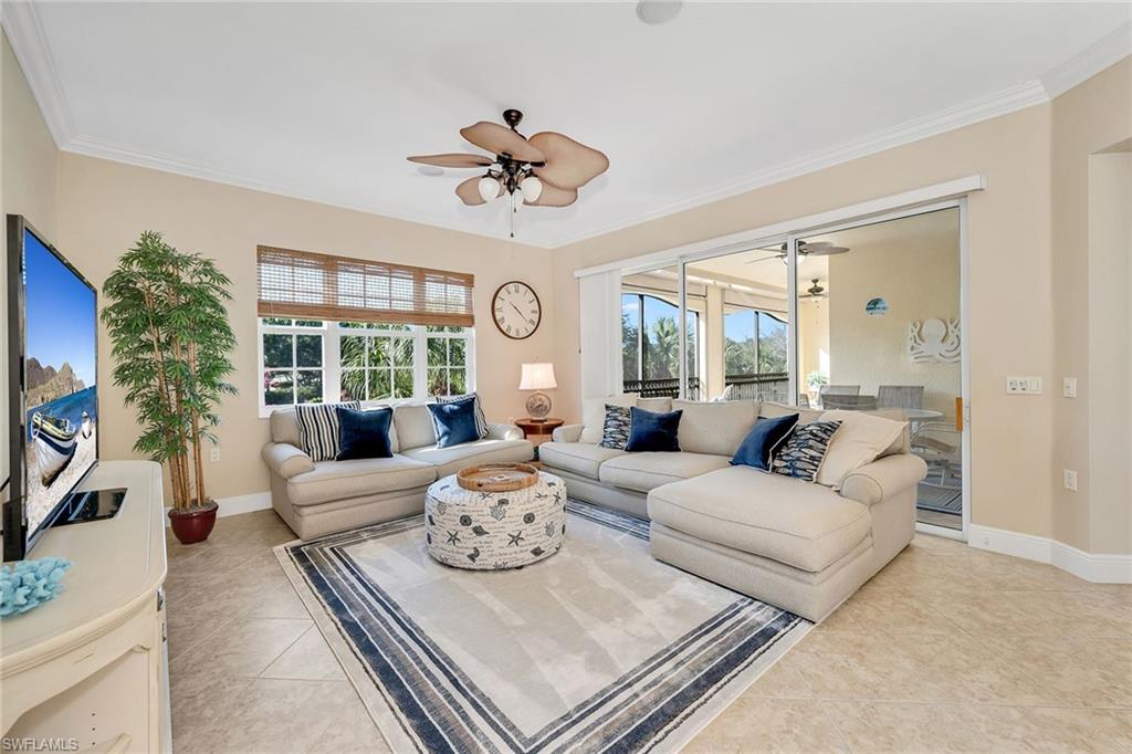 Enjoy exceptional privacy and beautiful, sweeping lake views from this light-filled, southwest-facing end residence in Montreux at Fiddler’s Creek. Offered turnkey furnished with all-new furnishings, this residence has been recently painted and features newer carpeting on the stairs and in the bedrooms. Designed to capture abundant natural light, every room enjoys tranquil water views, creating a serene backdrop for everyday living in this spacious home with a private two-car garage. The thoughtfully designed floor plan offers three bedrooms plus a den, three full baths, and generous living spaces ideal for relaxed living and entertaining. Tile flooring laid on the diagonal, crown molding and recessed lighting enhance the refined interior. The open kitchen is appointed with wood cabinetry featuring upper glass-front inserts with interior lighting, under-cabinet lighting, granite countertops, a tile backsplash, bar counter seating, stainless steel appliances, including a refrigerator with icemaker, a newer microwave, pantry storage and a bright breakfast area highlighted by a bay window. Both the family room and living room provide seamless access to the screened lanai and showcase captivating lake views. The living room also features custom-built-in wall cabinetry and shelving that add warmth, character and a cozy ambiance, complemented by a formal dining area ideal for hosting guests. The expansive screened lanai is finished with tile flooring, two ceiling fans, in-ceiling speakers and electric storm shutters, offering a comfortable outdoor retreat year-round. The spacious primary suite enjoys lanai access, serene water views and two walk-in closets with custom wood shelving. The en-suite bath features a dual-sink vanity with full-width mirrors, a glass-enclosed walk-in shower and a separate soaking tub. Two additional guest bedrooms are generously sized, each with a ceiling fan and a private en-suite bath with a glass-enclosed walk-in shower. The versatile den can easily serve as a fourth bedroom, home office or study. A well-equipped laundry room includes overhead cabinetry, a utility sink, a newer top-load washer and a front-load dryer for added convenience. Ideally just a short distance from the clubhouse and Gator Grille, residents enjoy the award-winning lifestyle that defines Fiddler’s Creek. Newly completed 2025 enhancements include a refreshed resort-style pool with waterfalls and slides, an upgraded Gator Grille and 10 new pickleball courts. The renovated clubhouse offers a state-of-the-art fitness center, six Har-Tru tennis courts and spa amenities including a hot tub, sauna and steam room. Scenic recreational and biking paths and exceptional dining options enrich daily living, while optional memberships with no golf waiting list provide access to the renovated championship golf course, new golf clubhouse, marina and private beach club.