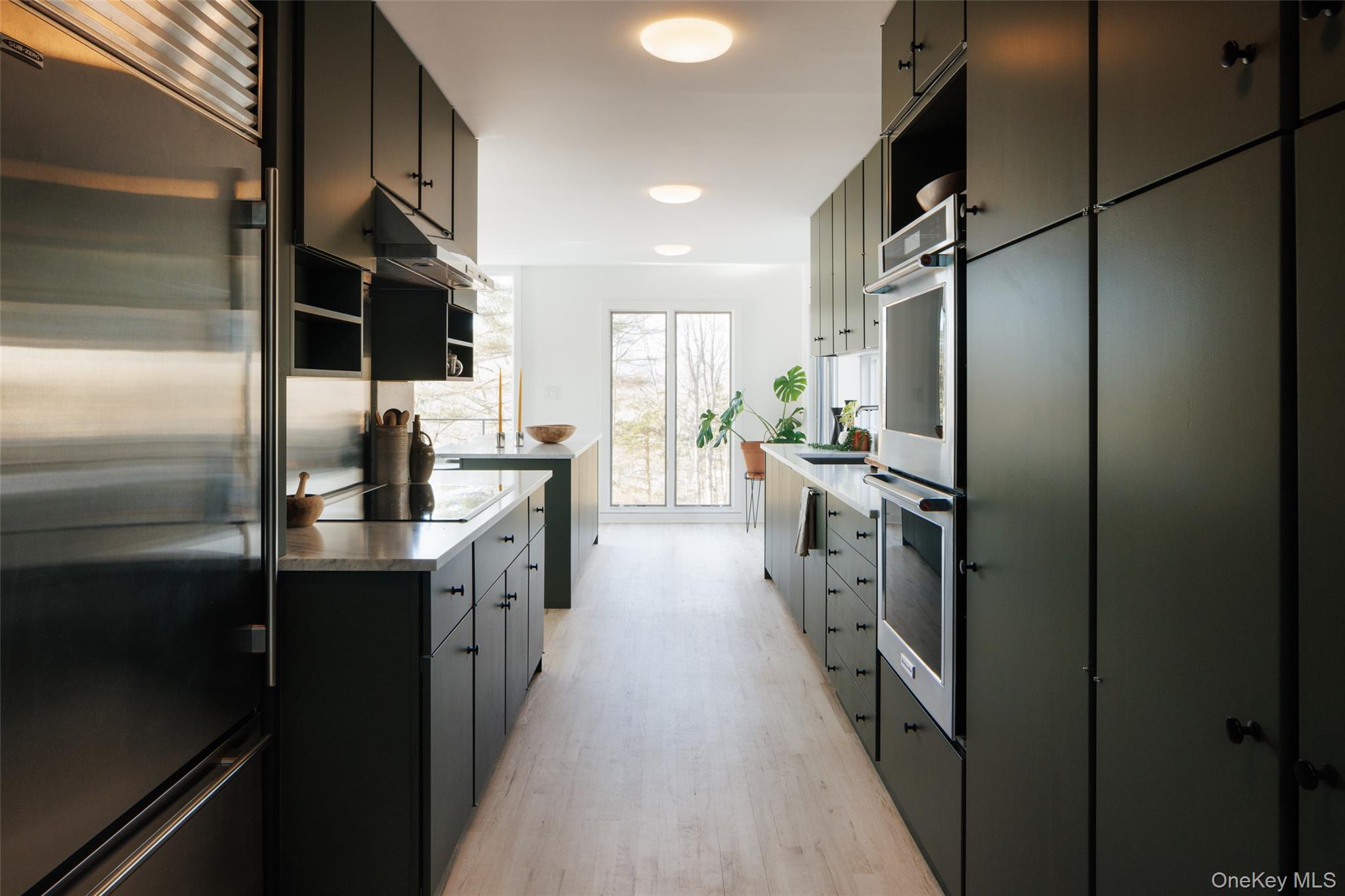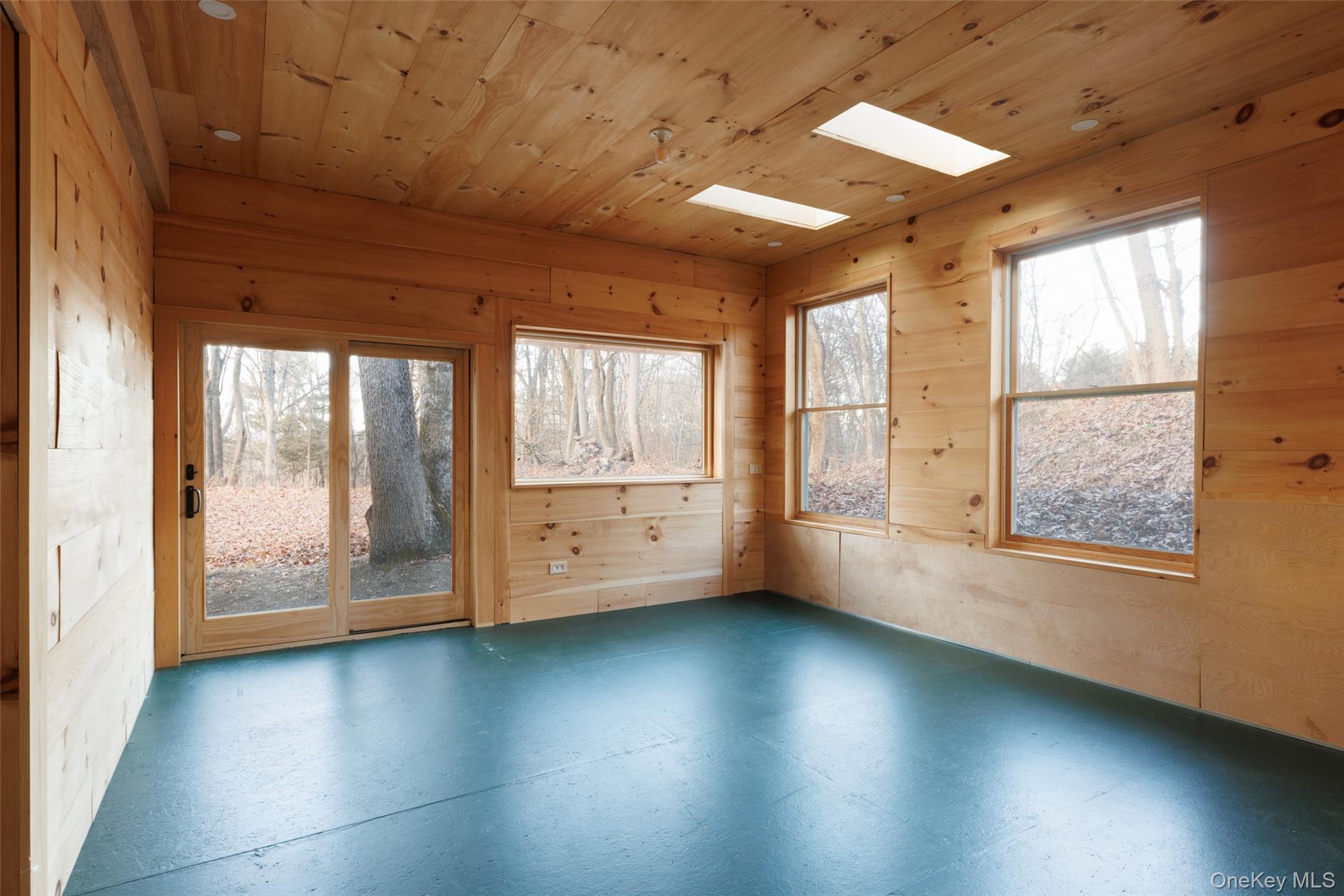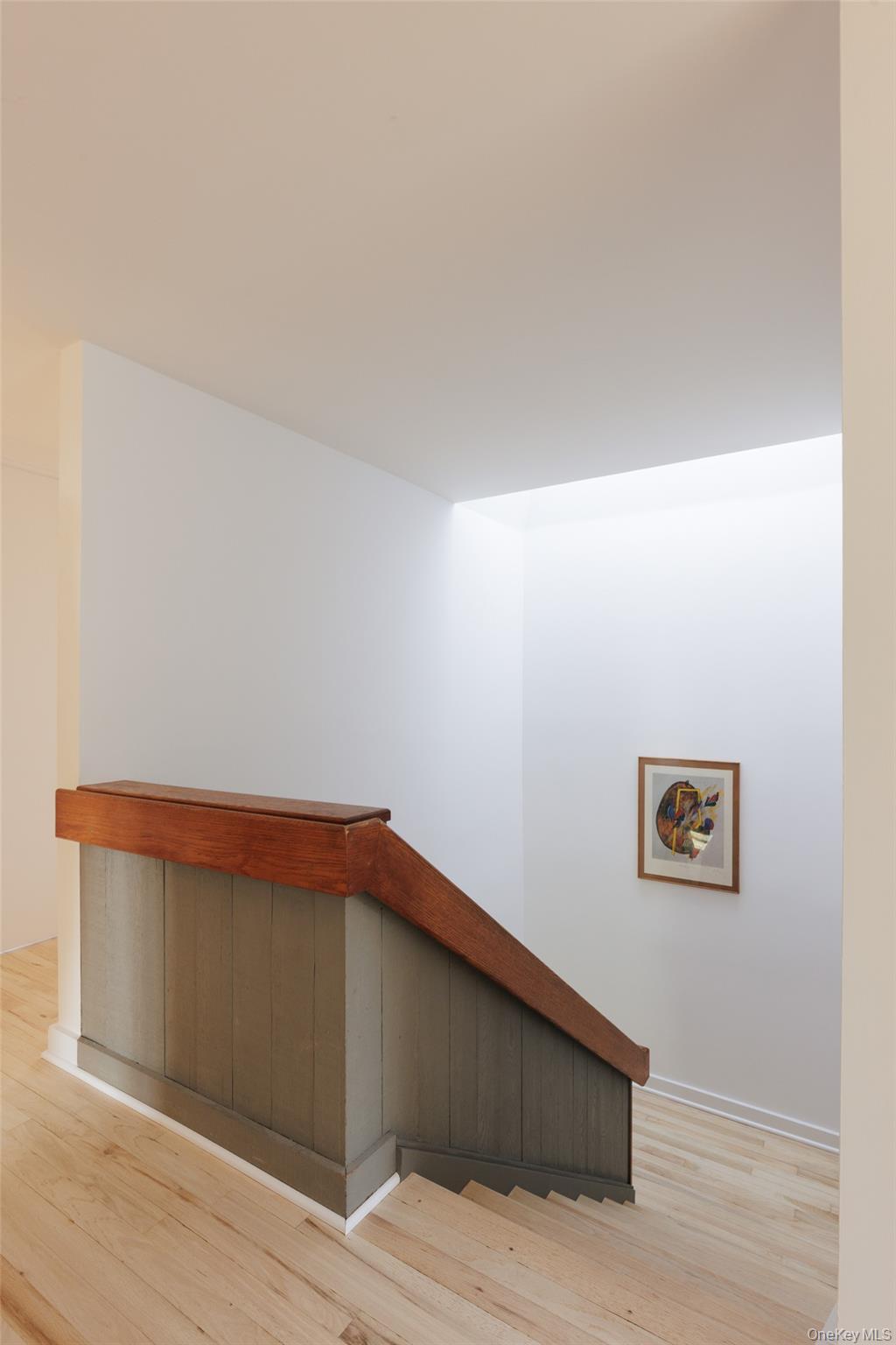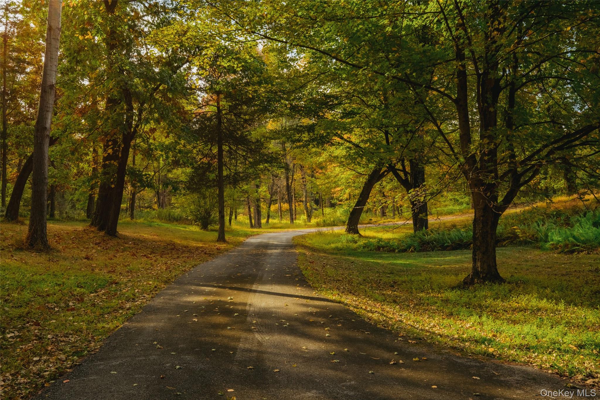 An exceptional 49 acre property only 5 minutes from Rhinebeck Village, offering a rare blend of privacy, space, architectural character and spectacular Hudson River and Catskill Mountain views. A long winding driveway leads up to the modern residence perched on a hillside overlooking the majestic grounds and sweeping west facing views of the horizon and stellar sunsets. Designed by Kingston architect George Hutton in 1970, whose family owned the recently reinvented Hutton Brickyards, the home is beautifully simple and thoughtfully designed. The mid-century home retains many modern details while recently updated throughout including refinished hardwood floors, repainted interior and exterior plus an updated kitchen and baths. Bathed in natural light, the home features three bedrooms, two and a half bathrooms, an office, and an extra room upstairs. Enter into the light filled living area with walls of glass framing stunning views of the Hudson River and mountains beyond. Glass sliding doors open onto the seasonal sun room and the expansive deck, perfect for entertaining and catching sunsets year around. Photos don’t quite do the views justice. A wood-burning brick fireplace separates the living and dining area. The updated kitchen, perfect for hosting, is complete with new Carrara marble countertops, an island with counter seating, updated stainless steel appliances including a Sub-Zero fridge, ample cabinetry and a walk-in pantry. The attached 2-car garage connects conveniently to the kitchen via a skylit mudroom. Through a sunlit stairwell, upstairs you’ll find the generous primary bedroom with ensuite bath, two more bedrooms, a second full bath, plenty of closet space and an extra fourth room. The upstairs baths feature clean lines, square ceramic tiles, updated chrome fixtures and new Carrara marble countertops. Across the driveway is a large workshop offering additional space with a covered patio and large deck. Many improvements have been done including a new Carrier HVAC system, extensive site work, opening up the views, removing old trees, and grading and trenching the driveway to prevent wash out. The land has a pond site plus logging and carriage trails for outdoor enjoyment. There are complete engineering plans for a proposed subdivision to create two additional single family lots which has been presented to the Town of Rhinebeck. This stunning property offers an exceptional blend of style, space, privacy and views. Less than 2 hours to NYC, easy access to Amtrak and all of the amenities of the Hudson Valley.