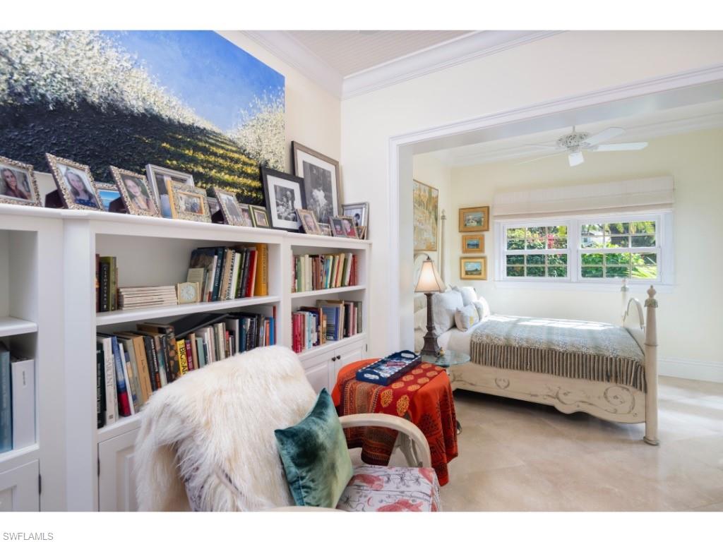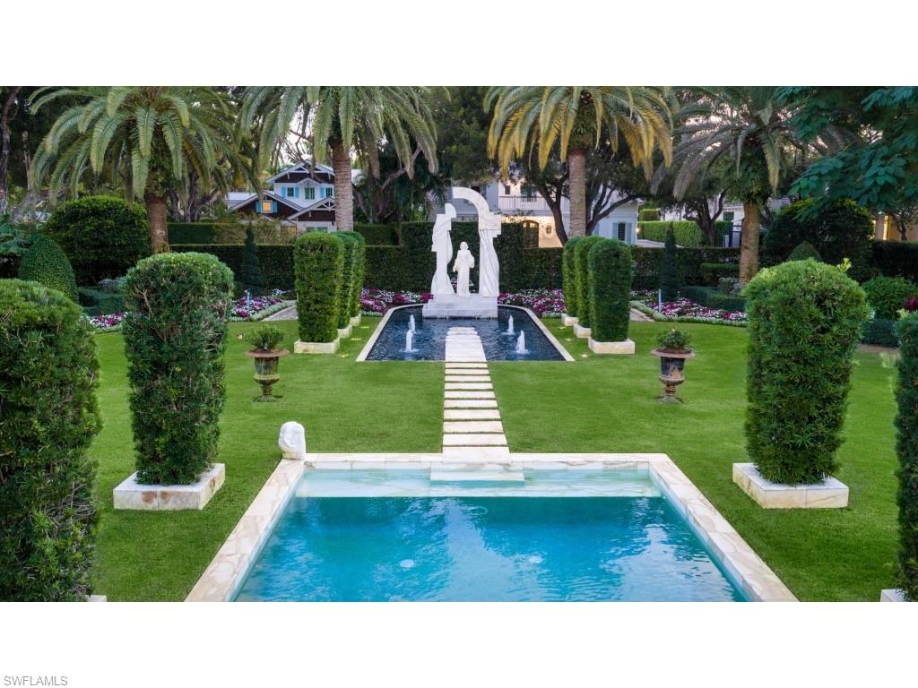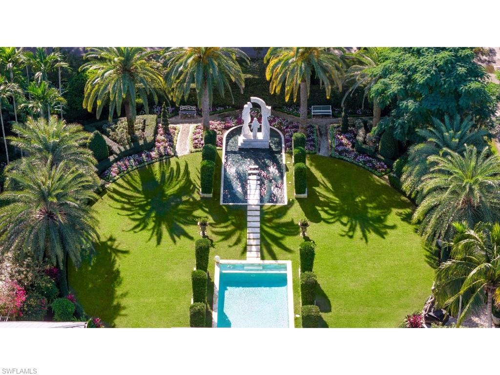 A truly exceptional assemblage set within one of the most coveted areas of Old Naples, this remarkable property is quietly positioned along picturesque, tree-lined streets that epitomize the charm and prestige of the neighborhood. Behind its gates lies what may be the most impressive private garden environment in the entire City of Naples - an enchanting landscape conceived to evoke a sense of history, classical order, and timeless beauty. Inspired by traditional English gardens and thoughtfully adapted to Florida’s climate, the grounds feature extraordinary specimen trees, lush native foliage, and natural stone elements. Meandering walking paths lead past curated sculptures, intimate seating areas, and tranquil vignettes that invite reflection and discovery. Celebrated in countless local and national publications over the years, these gardens are both a sanctuary and a work of art. The charming residence, substantially renovated in the early 2000s, is perfectly oriented to embrace its surroundings. Offering three bedrooms and a dedicated office, the home overlooks a sweeping pool and the gardens beyond. Entertain with ease in the intimate dining room and welcoming living room, featuring sliders that retract, dissolving the boundary between indoors and out and allowing the garden to become an extension of the living space. The open kitchen flows seamlessly into the family room, which extends to a covered outdoor living area - each setting thoughtfully designed to keep the gardens as the focal point. A large pool serves both a functional and sculptural role, beautifully complementing a secondary pool that cradles a striking centerpiece sculpture. Additional features include a two-car garage with substantial storage accessed via the alley, a generator, and, most notably, as part of the offering, a vacant parcel across the alleyway. This additional property provides a level of privacy, seclusion, and open space that is extraordinarily rare in Old Naples. Ideally located just moments from Fifth Avenue South, Naples’ white sandy beaches, and the conveniences of downtown and the hospital district, the property offers effortless access to everything while remaining remarkably private. Undoubtedly one of the most unique offerings ever presented in Old Naples, this is an extraordinary opportunity to enjoy a refined home enveloped by magical gardens, creating the feeling of complete seclusion while being in the very heart of Naples.