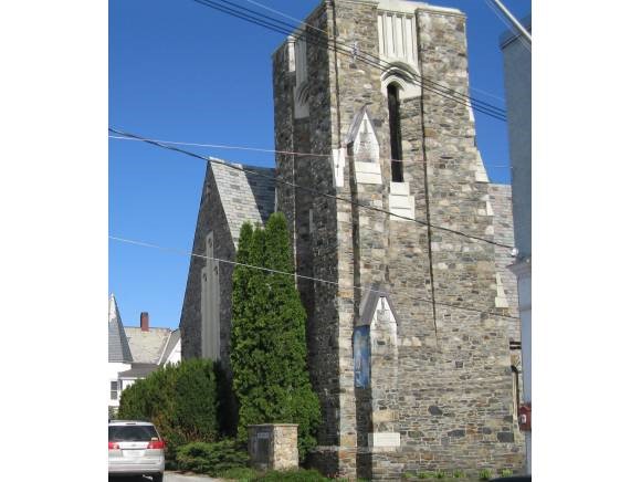 City tax asssessment has been reduced on this property REDUCED PRICE $100, 000. This 13, 740 sq. ft. building is at a mere bargain price of $18. 20 per sq. ft. Amazing. So many possibilities for this Gothic style architect built building with stones from the local Green Mountain. Centrally located facing the Mill district of Claremont. 3 levels containing 12+ large rooms stained glass Windows and large antique Rose window. Updated sound system and Excellent property for retreat or Conference center with a facility hall with stage and adjoining kitchen. All rooms have closets and storage areas. 3 entrances for easy separation of offices. The 325 seats in the 77 x 35 ft. sanctuary is adorned with Oregon fir vaulted beams and oak floors. A bonus of a working Moller organ.