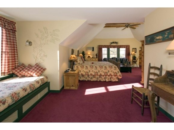 The inn was built circa 1800 and was completely restored to its prior grandeur in the early 2000's. The Inn has a total of 11 guest rooms consisting of nine suites and two deluxe guest rooms. Many of the rooms have the true amenities that today's guests desire including Jacuzzi tubs, fireplaces (9 out of 11), flat screen TV/VCR and double showers. All 11 rooms have been lovingly and attractively decorated and offer air conditioning and Internet access. A full country breakfast is included with all the rooms in the inn. A cozy and charming bar along with a lovely dining room offers guests an event venue second to none. It is all beautiful and immaculate. One of the unique features of the property is the land consisting of 12 pastoral acres, private pond, brook and gazebo. The innkeeper quarters are another surprisingly wonderful feature to the property. With 5 bedrooms, a total of 10 rooms and baths, they are frankly larger than many inns in total.