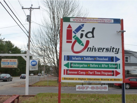 Goffstown Location of former business - Kids University - daycare. Fully equipped ready to relicense, Re-inspect, and reopen! Fenced in playgrounds with equipment. Learning aids, books, videos, and classroom materials included. 9 classroom areas with infant room. Building is sprinklered. Certain business assets can transfer with property. Note well, this is not a business sale and no business is being represented. It is a business opportunity. Garage rental property on Henry Bridge Road is part of this site and sale.