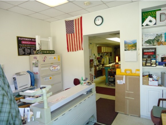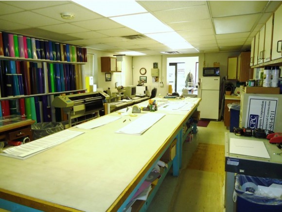 With a traffic count over 24000 per day and a new turn lane just installed along this strip of road, you simply can't find a more visible spot for your business with such ease of access. What can your business do with this kind of exposure and a donut shop, service station, convenience store, storage units, equipment rental companies, restaurant and more all within a quarter of a mile? This well maintained solidly built building can be morphed to fit your needs or use the reception and work areas and 3/4 bath as is. There's already about 1400 square feet of heated AND air conditioned space and there's a loft area with 7' ceilings that can be finished as well to add another 500+ square feet of usable space. Garage area accessed by 14 by 12 door. New 50 year architectural roof installed Summer 2017. All serviced by public water and sewer, this property is sure to help your business grow! Currently a sign shop with new customers stopping in daily. Seller may consider selling the business as well. What could you do here??? Pizza/Sub shop, other take out food/auto detailing, retail sales, etc. (any change of use would probably require the town's OK. )
