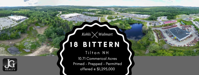 TILTON - 03276 - 10. 71 acres primed, permitted and waiting for major commercial development. The value here cannot be overstated. Situated just minutes from exit 20, the gateway to the Lakes Region, and tucked between a Walmart/Market Basket shopping complex and a Lowes/Kohls retail center, this property is highly visible. The 2012 LRPC traffic study found traffic volume on Route 3 west of exit 20 was as high as 33, 525 cars. The property has 90 feet of frontage on Route 3 for extremely visible signage. It also includes ownership and access to the west half of icehouse pond which is a lovely feature that makes this property aesthetically very attractive. Improvements include: $84, 000 in wetland mitigation permits. $50, 000 to clear and fill the wetlands in 2016. $30, 000 in engineering plans, including improvements to Bittern lane and Route 3 for improved ingress and egress to site. This plan reflects some widening and an additional turn lane. Town and state approvals to build an indoor sports facility. This has the potential to be a turn-key development for someone wanting to enter this business or who is looking to expand their holdings. Seller is willing to share all engineering and drawings and other research with buyer. Agent has ownership interest.