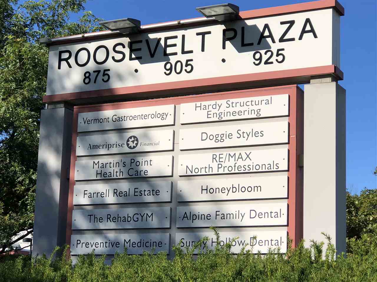 Exceptionally located, modern, class A office space only three lights off I-89, Exit 16. Ideally suited for professional service business drawing clients from Burlington, St. Albans, Montpelier, Rutland, and Plattsburgh. Expansive parking for clients/customers and employees. This large suite contains 7, 216 usable s/f plus ownership in the common spaces. Exclusive to this unit at the main front entrance is a lockable night drop box and doorbell which rings in the suite. The main entrance door is a coded security door lock. The large tiled reception area includes modern lighting fixtures, front desk with stainless counter, seating area, and gas fireplace. Additional features include one large and two small conference rooms, kitchen & common work space, extensive private offices around the perimeter of the building with exterior windows and quality glass doors, & interior work space with natural light from skylights. Exclusive to this unit at the back of the building are up to six private parking spaces, and a shed which is adjacent to the trash dumpsters. Common elements shared with the other two suites on the floor include the lobby, elevator, hall, bathrooms, front balcony, and rear private entrance and stairwell. 2006 construction ensures modern energy efficiency and no environmental hazards that are common in older construction. Colchester 18-19 assessed value: $1, 1, 092, 900. June 2017 appraised value: $950, 000.