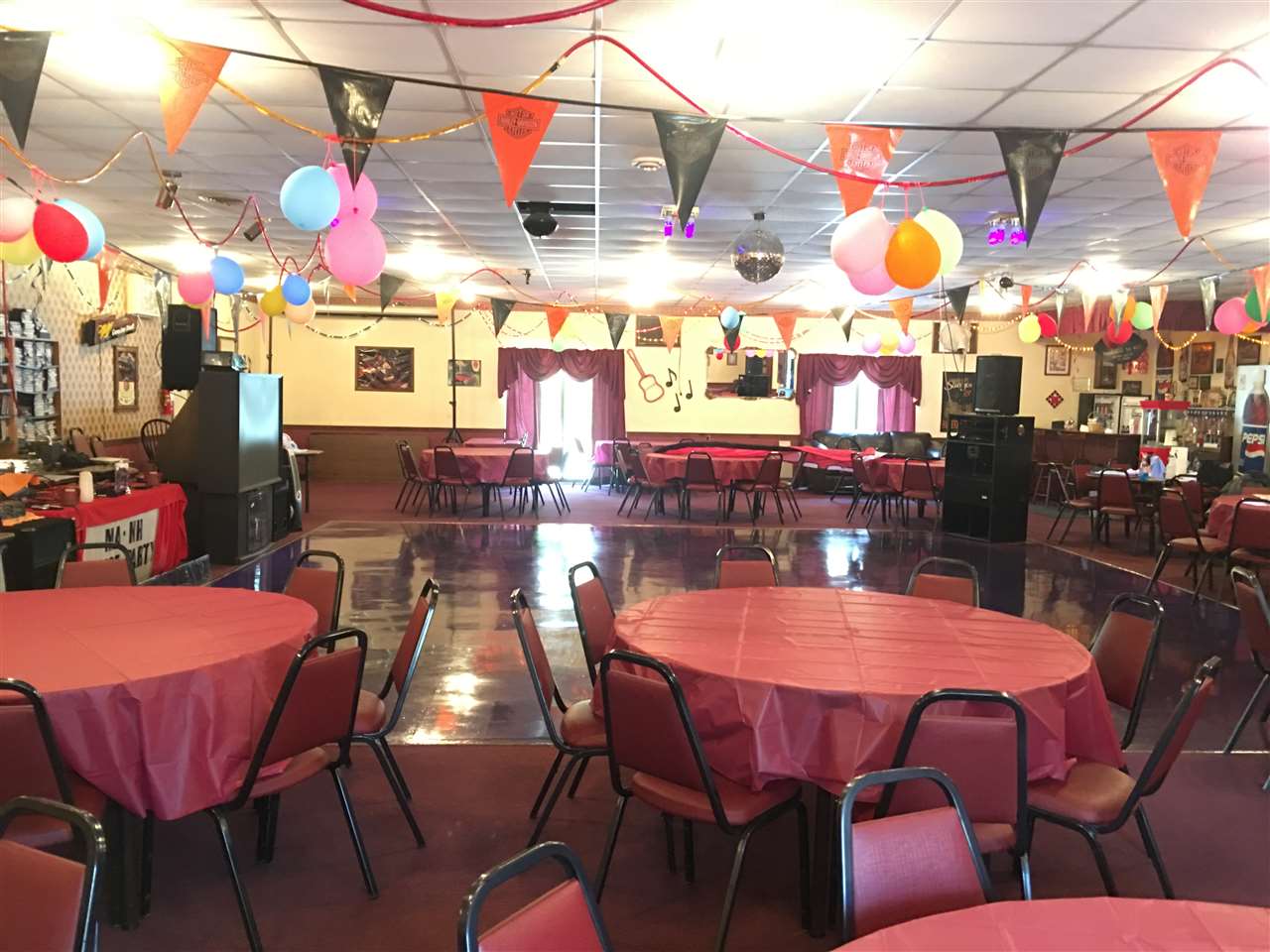 Daniels Hall has been hosting singles dances, weddings, birthday parties, bridal/baby showers, and other memorable events for 28 years. With an established clientele and the layout in place, this is a great opportunity for a similar business to step in and take over. This 3, 600 SF building is equipped with a full kitchen including a Vulcan gas stove with six burners, 2 ovens, grill and large exhaust hood with a fire system and roof fan. Additionally, the kitchen has a refrigerator, freezer, 5 sinks and a tile floor. The main hall has a carpeted dining area, 24x24 tiled dance floor, wet bar, three bathrooms – one ADA compliant and includes shower, central heat and 3 wall air conditioning units. Additionally, the property has a sound system, 60" TV monitor for karaoke, 10' pull down screen for music videos, HD projector, disco lighting, mirror ball, tables & chairs, dinnerware and most furniture that can transfer with the property if needed. This property has great potential with room to grow. Possible uses include but are not limited to a catering business, wedding venue, event center, restaurant, sports bar, etc.