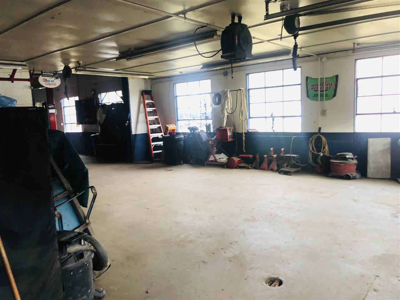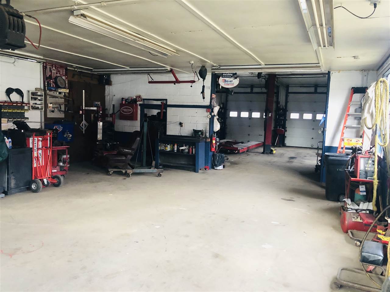 Affordable commercial space with multiple options. Office area with bathroom, and two large work areas, currently set up as an auto repair shop. Also features a storage room and mechanic room. Plenty of parking, so come with your auto business or make some easy changes for your commercial needs!