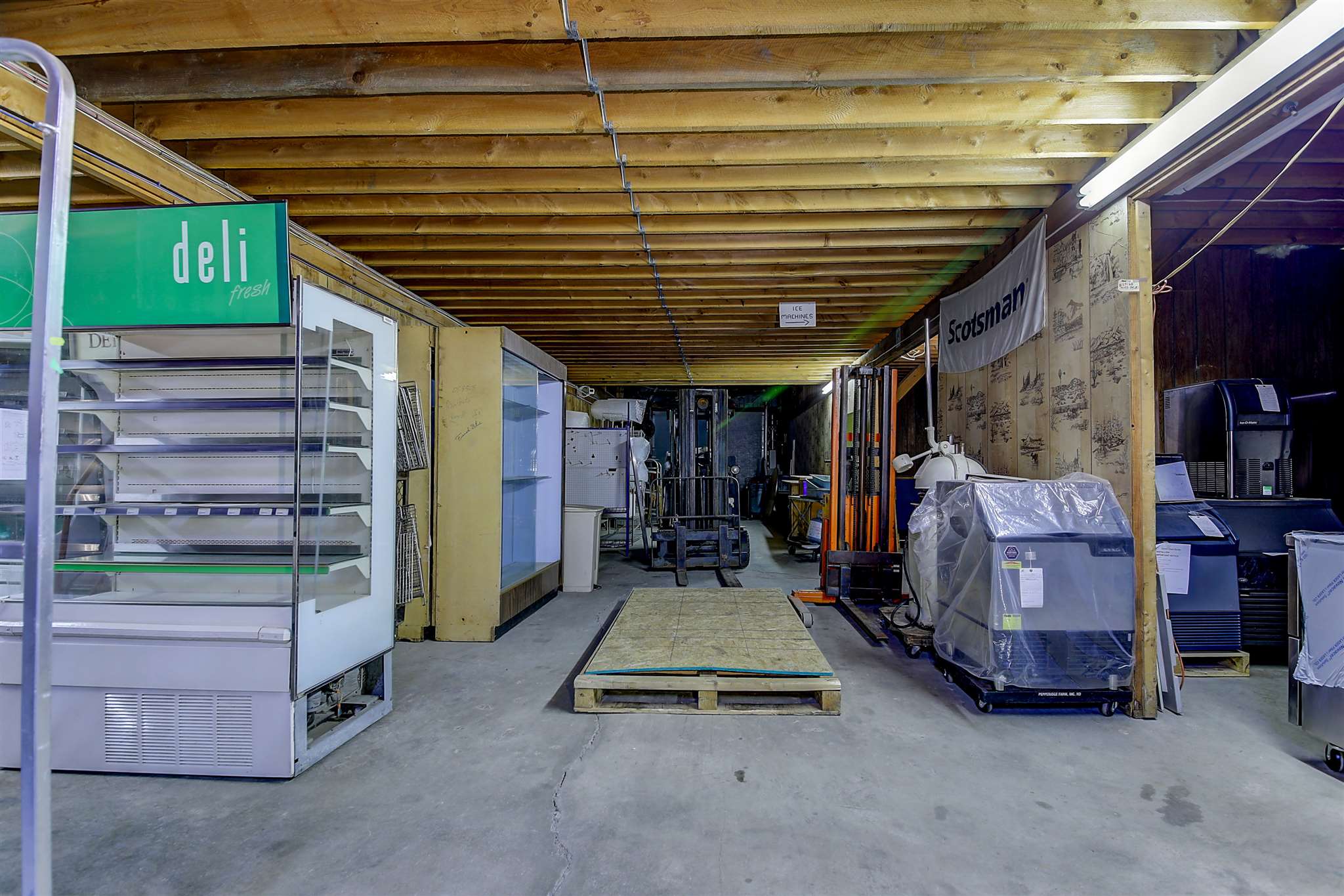 Impressive and well maintained building for sale in Center Conway. Located in the industrial zone this building has multiple uses that range from production to storage to distribution and has daily traffic exceeding 6000 vehicles. Direct access from East Conway Road and prominent signage on the main road are other important features. Over 18000 square feet is offered on the ground level with two standard height loading docks in the rear of the building and the front of the building has a ground level access, a tailgate dock and a modified lift gate. Climate controlled square footage totals 3500 square feet with an additional insulated 1000 square feet. The remainder of the building could easily be segmented for additional temperature controlled zones. The second level totals about 7000 square feet, has ample storage and ceiling height for a variety uses and is accessed by stairway and hoist. Seller is willing to lease back partial space for a to-be-negotiated amount of time.