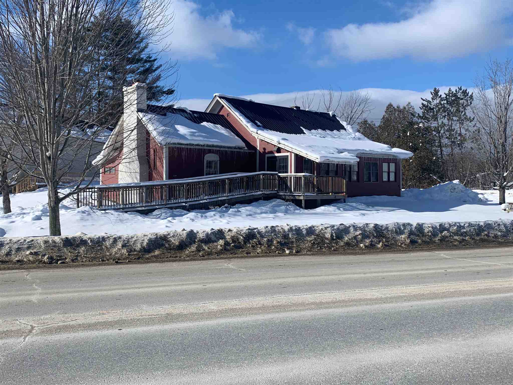 1900 sq ft Commercial building for sale in Moscow. Excellent south of town location allows easy access to Mount Mansfield and Rt 100 to Waterbury and Interstate 89. High visibility, plenty of off street parking and ADA accessible. Previous location of The Pizza Joint. Business is not included in the sale, real estate only with equipment shown in pictures included. This building shares a lot, water and septic with a 4 unit residential building next door and will become part of a condominium upon sale. This unit will be responsible for 30% of the water, septic, plowing and mowing expenses. This building has 250 GPD of permitted Water and Sewer capacity available to use for your business. The property could be converted to a residential unit and would require a local permit from the Stowe DRB to change the use. There is available space to add a new leach field to the property to increase the state permitted GPD. Soil testing and analysis has not been done. A portion of the property is in a flood zone. All finished space is located above the flood elevation. Broker has an ownership interest.