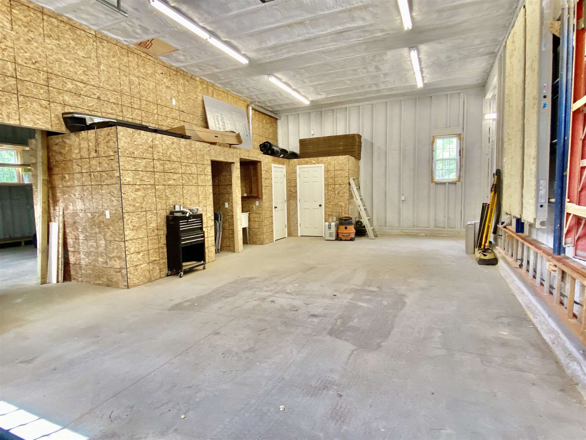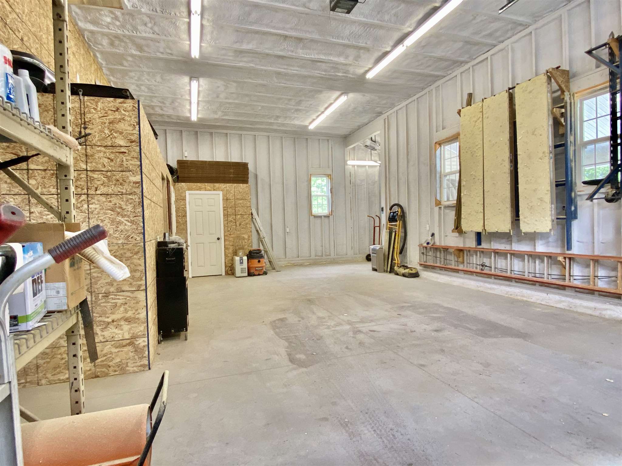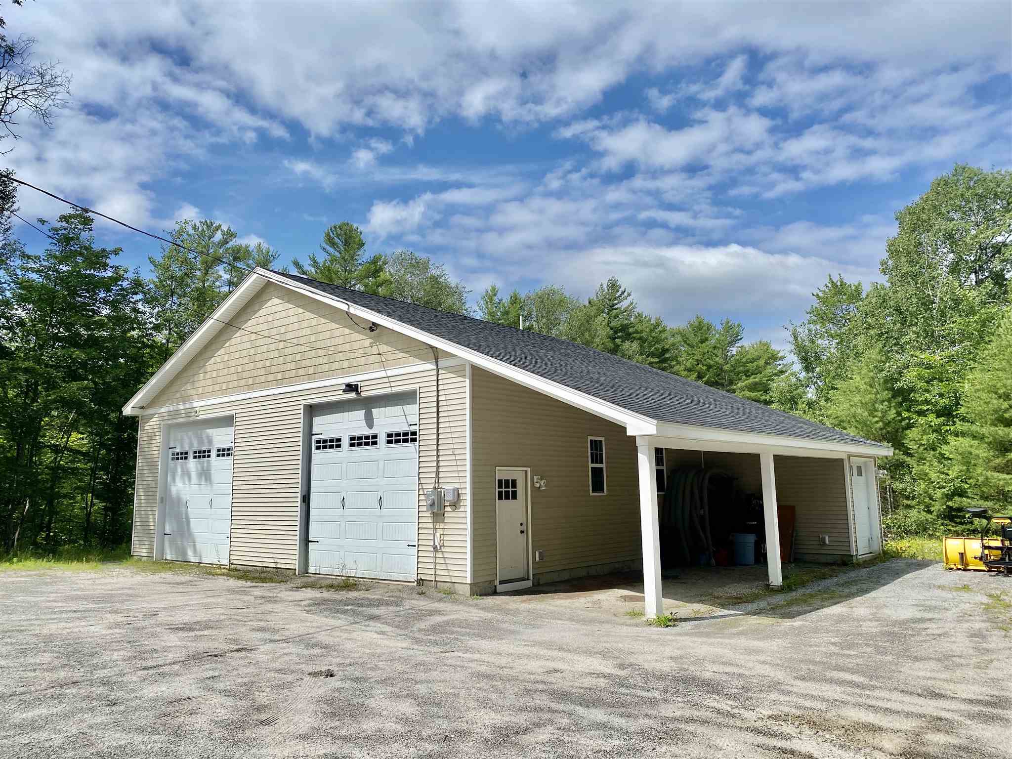 Beautiful heated and insulated 54' by 38' commercial building in Sunapee, NH, for storage or work. Built in 2015 with vinyl siding, 12ft doors, 14 foot ceilings, spray foam insulation, radiant floor heat, drilled well, septic system, state of the art heating system, plenty of sorage. 200 amp service, internet, office space, bathrooms, all on one acre. Perfect for winter boat storage as well. Use one side and rent the other. Come take a look.