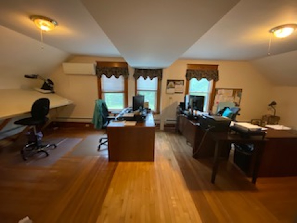 SIGNIFICANT PRICE REDUCTION!!! We are pleased to present this 12. 5 Acre site that includes two buildings, a 2, 810 SF office / showroom and a 5-bay garage. This property is situated in an ideal location with great visibility directly on Bypass 28 with good access to Route 101 and I-93 and offers ample parking. The two-story air-conditioned office/showroom is comprised of 7 rooms that include 5 individual offices, a kitchen / break room, large foyer with an extra-large front to back room showcasing hardwood floors suitable for a display area. The second floor is open concept and offers natural light. The second building, a 5-bay garage, offers 12’ ceilings, wood framed structure, insulation and heat. The main part of the garage size is 50 x 30, has 2 metal garage end caps as additions to the main structure used as unheated storage areas. There is an unused portion of land, good for expansion, yard laydown area, material storage and a paved 25-car parking lot. Great for a contractor or service-related business that requires parking, office, garage, shop, yard space and highway access. Property offers approximately 2. 5 acres of useable commercial land. The temp office to be removed.