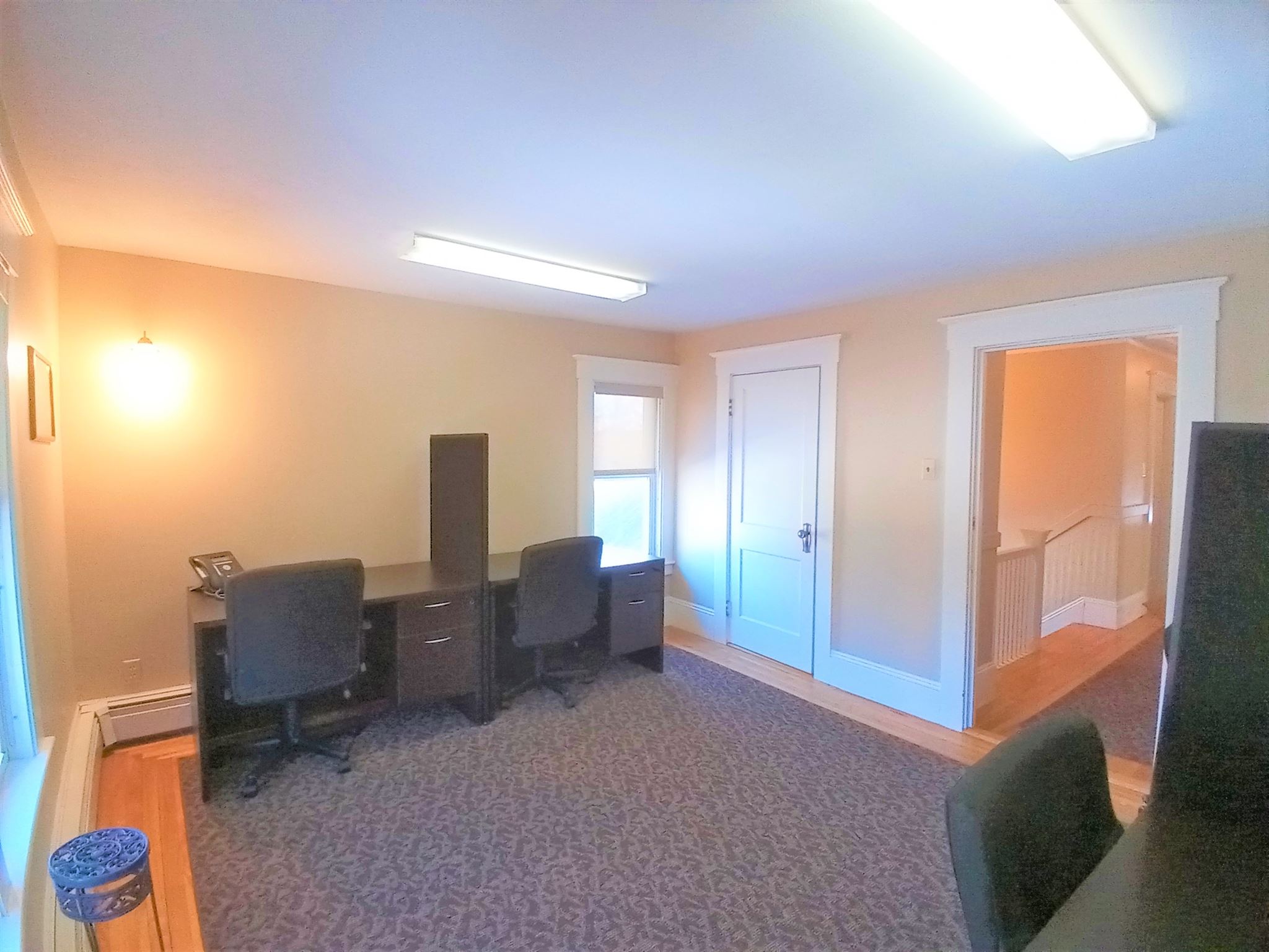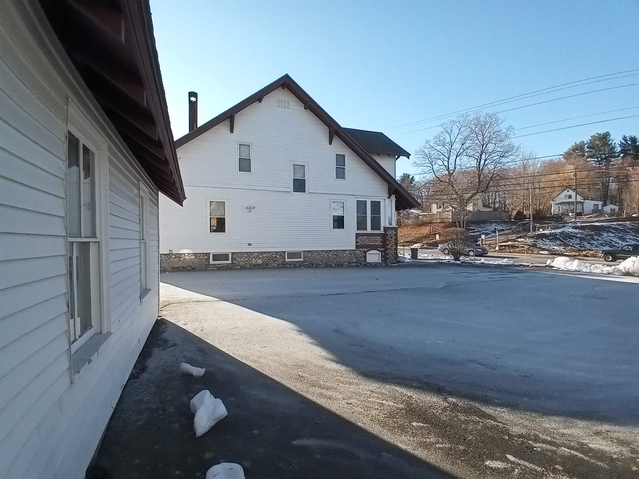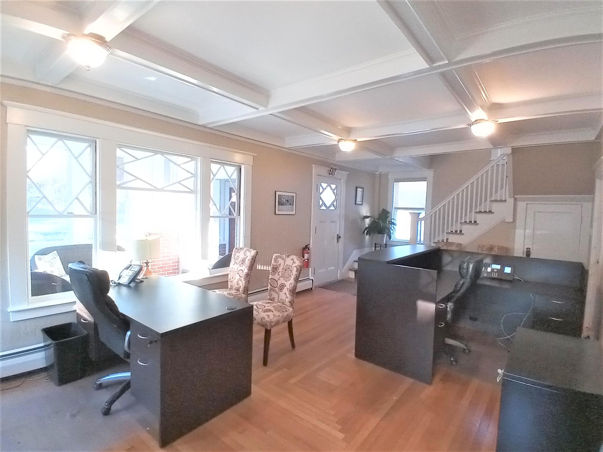 This beautiful office building is located right on Route 102(West Broadway), highly visible and at an intersection with a traffic light for easy in and out access. This building has so much character and charm that you will not find in most office space. Your clients and/or customers and employees will love the welcoming enclosed front porch and the reception area with its brick fireplace and classic style mantle, hardwood flooring and coffered ceiling. The first floor also features beautiful architectural multi-pane windows, a conference room, also with a coffered ceiling and hardwood flooring and French doors as well as an additional office and a half bath. The second floor consists of three large offices/work spaces, all with hardwood flooring and great closet space, along with a full bathroom. The basement is finished, with heat and a half bath along with a large open area for conference space, work space or storage as well as a separate workshop area. The parking lot has space for 15+ vehicles plus a 2-car detached garage. With proper town approvals this could even possibly be converted to a dwelling. There are many different types of businesses that could operate here. Check with Town of Derry, Zoning Ordinance Article VI Section 165-34 for permitted uses.