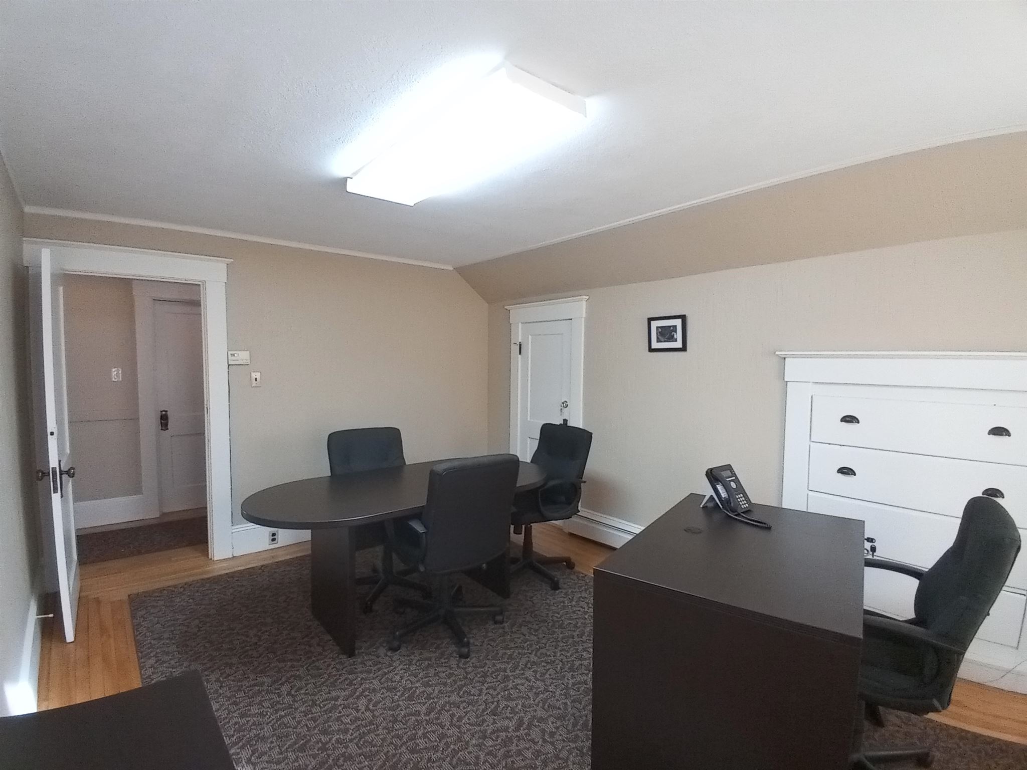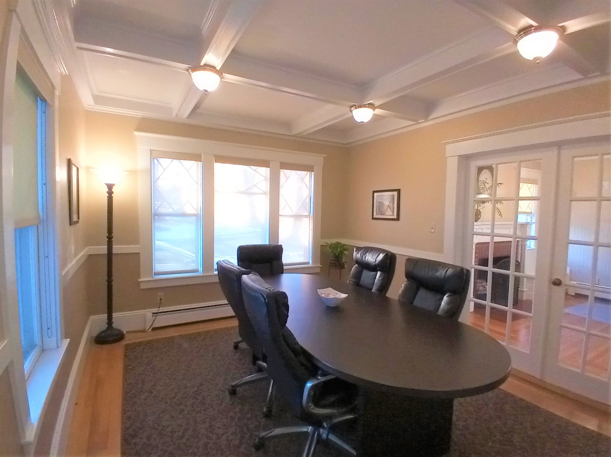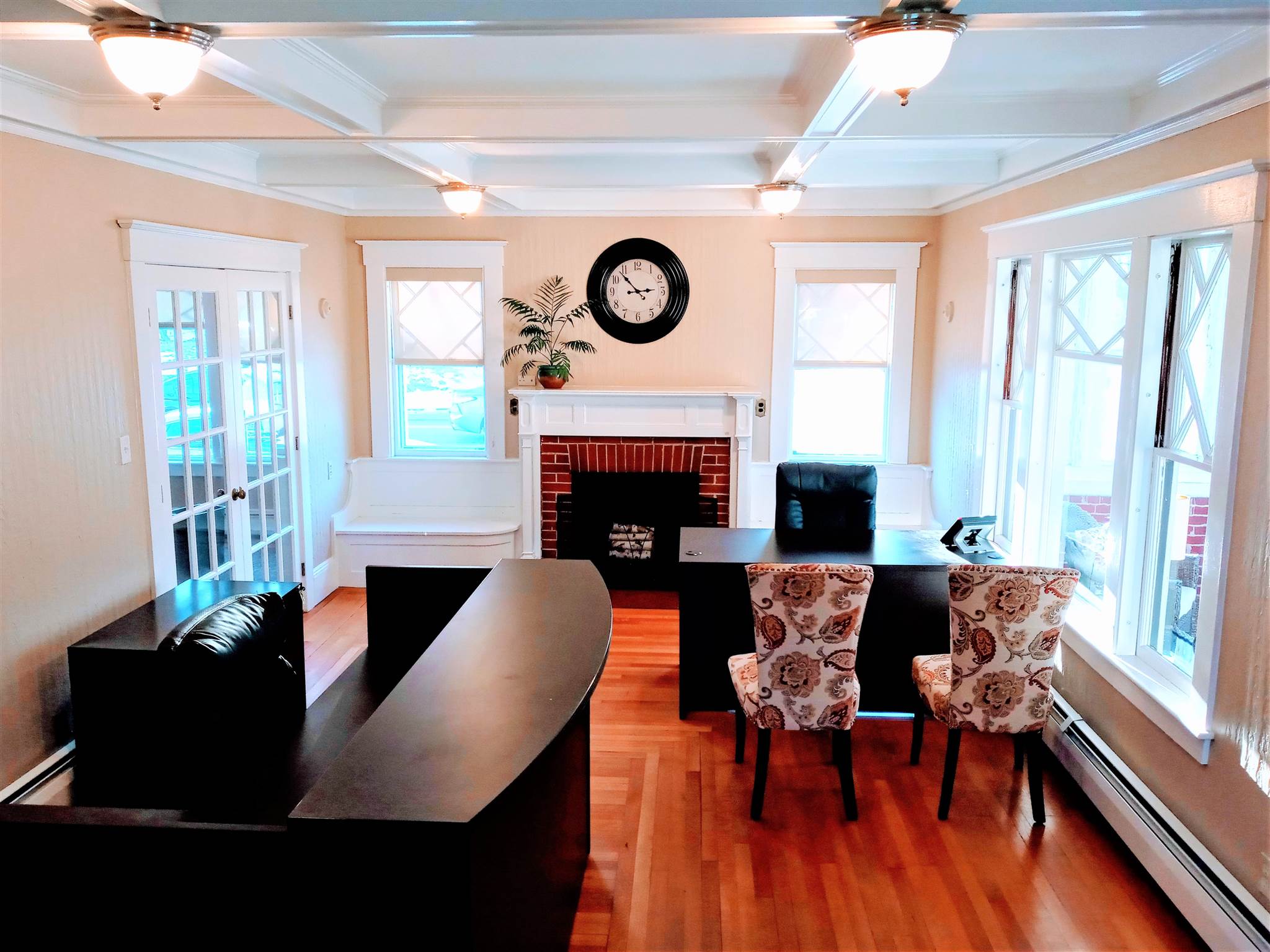This beautiful office building is located right on Route 102(West Broadway), highly visible and at an intersection with a traffic light for easy in and out access. This building has so much character and charm that you will not find in most office space. Your clients and/or customers and employees will love the welcoming enclosed front porch and the reception area with its brick fireplace and classic style mantle, hardwood flooring and coffered ceiling. The first floor also features beautiful architectural multi-pane windows, a conference room, also with a coffered ceiling and hardwood flooring and French doors as well as an additional office and a half bath. The second floor consists of three large offices/work spaces, all with hardwood flooring and great closet space, along with a full bathroom. The basement is finished, with heat and a half bath along with a large open area for conference space, work space or storage as well as a separate workshop area. The parking lot has space for 15+ vehicles plus a 2-car detached garage. With proper town approvals this could even possibly be converted to a dwelling. There are many different types of businesses that could operate here. Check with Town of Derry, Zoning Ordinance Article VI Section 165-34 for permitted uses.