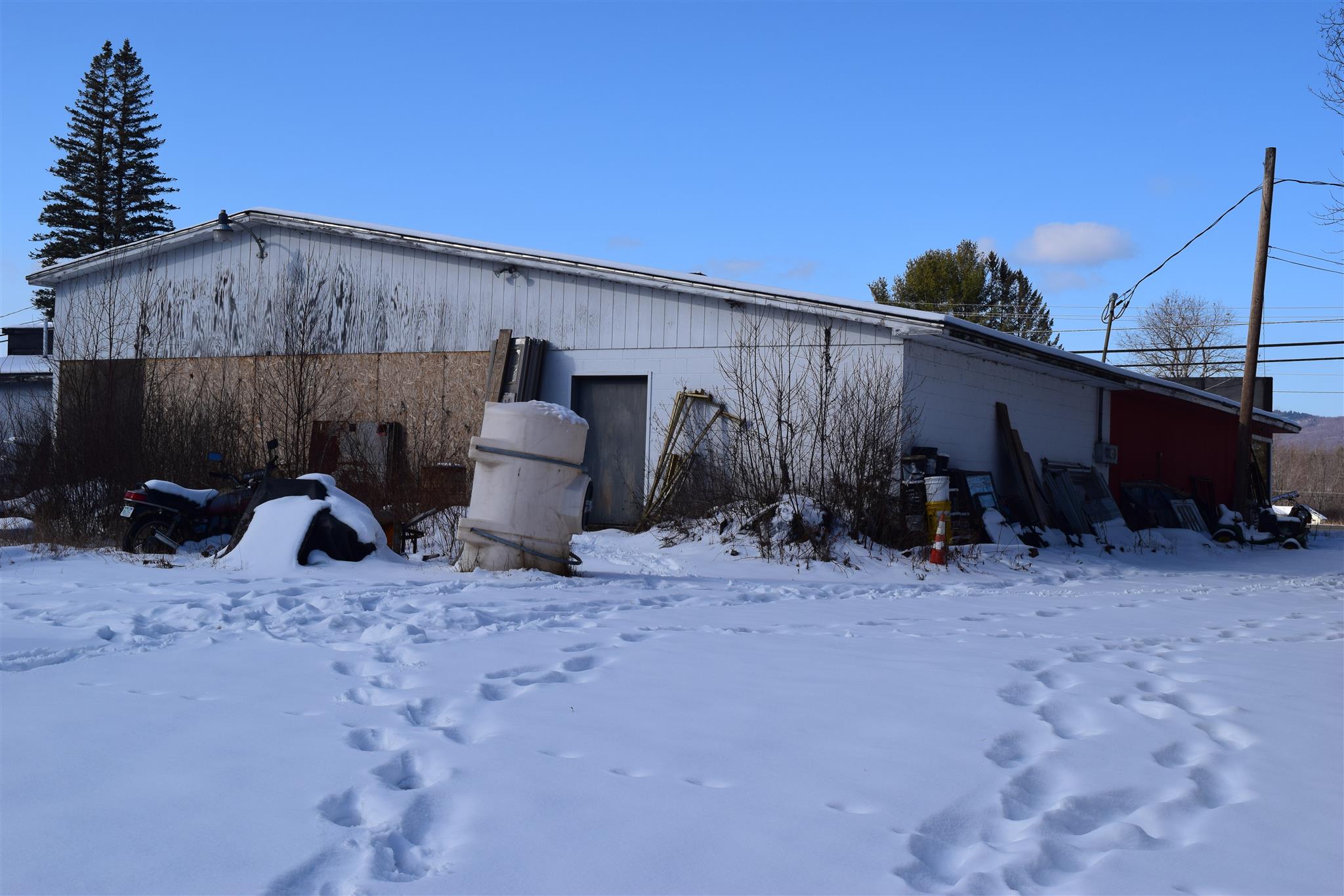 Possible owner financing available. This commercial property was operated for many years as a convenience store with a retail clothing business and is looking for a new owner to maximize its potential. The property offers great visability off of Route 3 which is the main North-South access road in Northern NH with a high traffic count. Continue to use the space as a store or bring your ideas to retro-fit the building into a restaurant, offices, or storage facility - with over 6, 000 square feet of space, the possibilities are endless. The convenience store section is set up with a wall of walk-in coolers, several independent coolers/freezers, many disassembled store shelving racks, and a food prep area with sink. Next to the convenience store is a retail space with two open display areas, a designated office, an employee kitchen, a 1/2 bath and there is extra storage on a second level in the back rooom. The +/- . 65 acre lot is level with a paved parking lot in the front and direct access to the snowmobile trail. House next door is not part of the sale.
