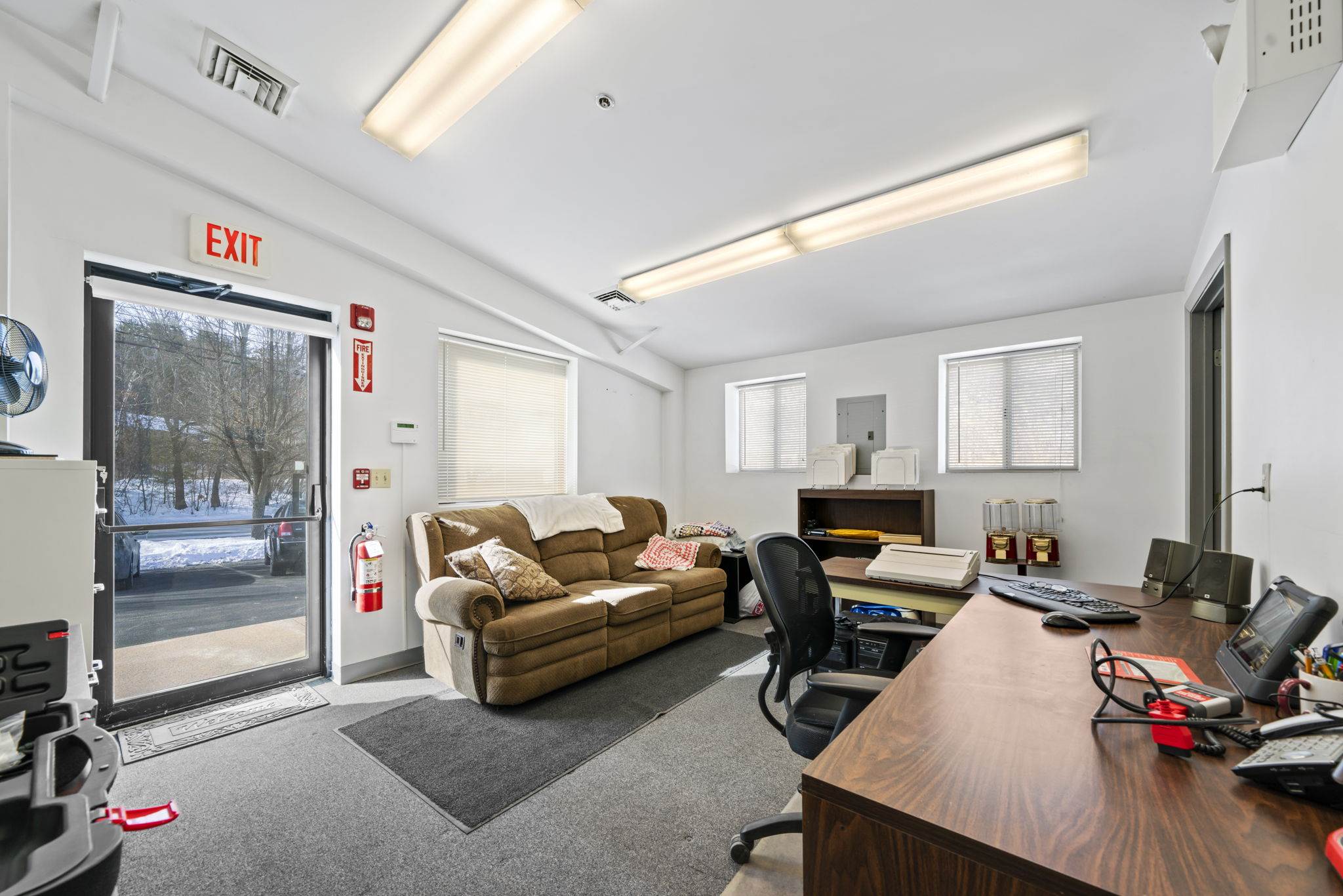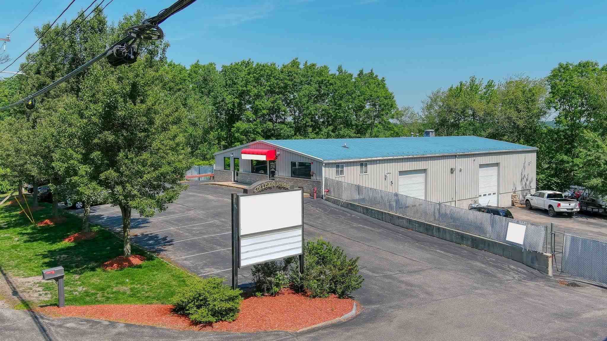 Building has radiant heat for 5, 000sqft garage/bays. 3 zones of heat. 18, 000sqft paved and gated parking area with direct access to service bays. Front lot has great visibility to south willow and parking for 10+ vehicles. City water with efficient natural gas. Full irrigation system for grounds. Comprehensive security camera system with alarm and sprinkler system with 3/4" nozzle heads and directly linked to FD. 3 bathroom, 2 in offices, 1 in service bay. Bath in main office also has a shower. Building could be divided into 2 separate units for additional rental income. Left side of building holds another full office with bathroom and its own stairwell to single bay with overhead door on its own meter, gas line and security system. Only minutes away from 293, 93 and manchester airport. Currently operated as an automotive collision business but could be used in a multitude of ways.