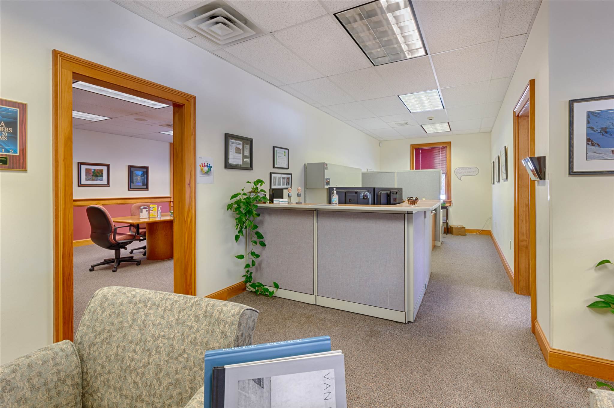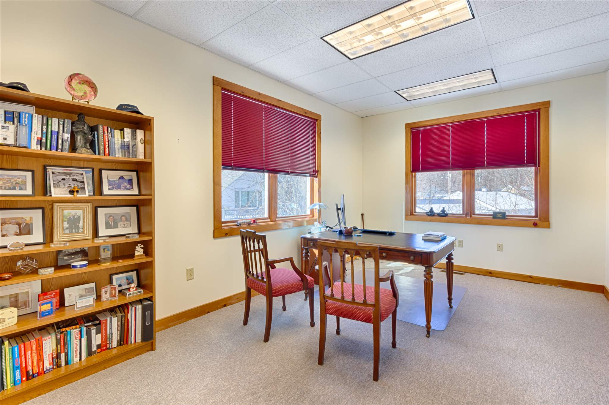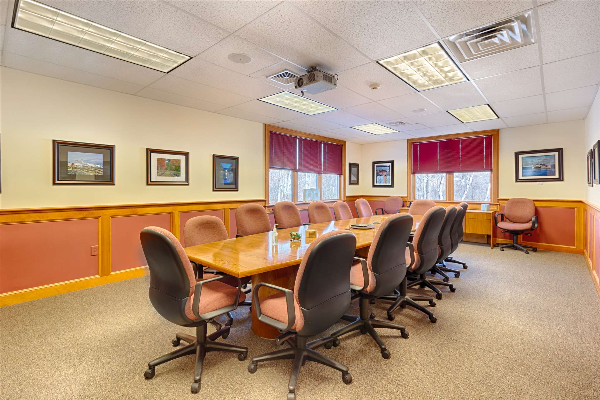 Impressive and quality built 8, 000 square foot professional office building in the Back Bay area of downtown Wolfeboro with ample parking and easy walking distance to local shops, restaurants, lodging and Lake Winnipesaukee. This expansive first class structure features 2 levels of flexible office space including 2 large conference rooms, a spacious kitchenette, 4 bathrooms (one with a shower), a wellness room and a recently renovated tiled foyer with cathedral ceiling that leads to the reception and waiting room area. There are 12 private offices (some with water views) plus 2 large open areas with 9 work space cubicles. Each level also offers separate rooms for storage and closet space. Currently owned by a financial services company, this upscale property has numerous possibilities and is ideally located in the downtown commercial district on 1. 5 surveyed acres. An entry door on each side of the large foyer and wide stairs to the 2nd floor could easily accommodate multiple businesses if so desired. Additional features include central AC, security system, handicap ramp, stand by generator, paved parking lot with 30 on-site parking spaces, and public water and sewer. Now may be the perfect time to consider this excellent and rare opportunity to create, relocate and/or expand your business or profession. Shown by advance appointment only.
