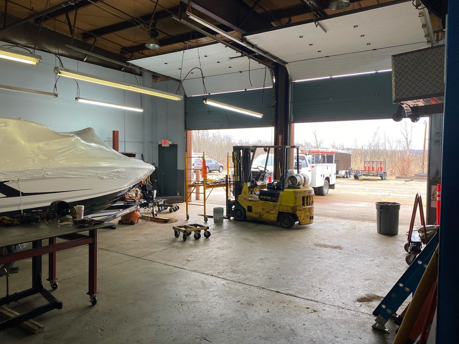 Well maintained double industrial bay, end units, at 100 Carl Dr. Attractive office area with kitchenette, bathroom and washer/dryer - furniture, appliances and shelving can be included in the sale. 2 high bay overhead drive in bays make easy access for large equipment in industrial area. Mezzanine can be used for additional storage or office area. 8 parking spaces included. Easy access to routes 93, 293, and Manchester Regional Airport.