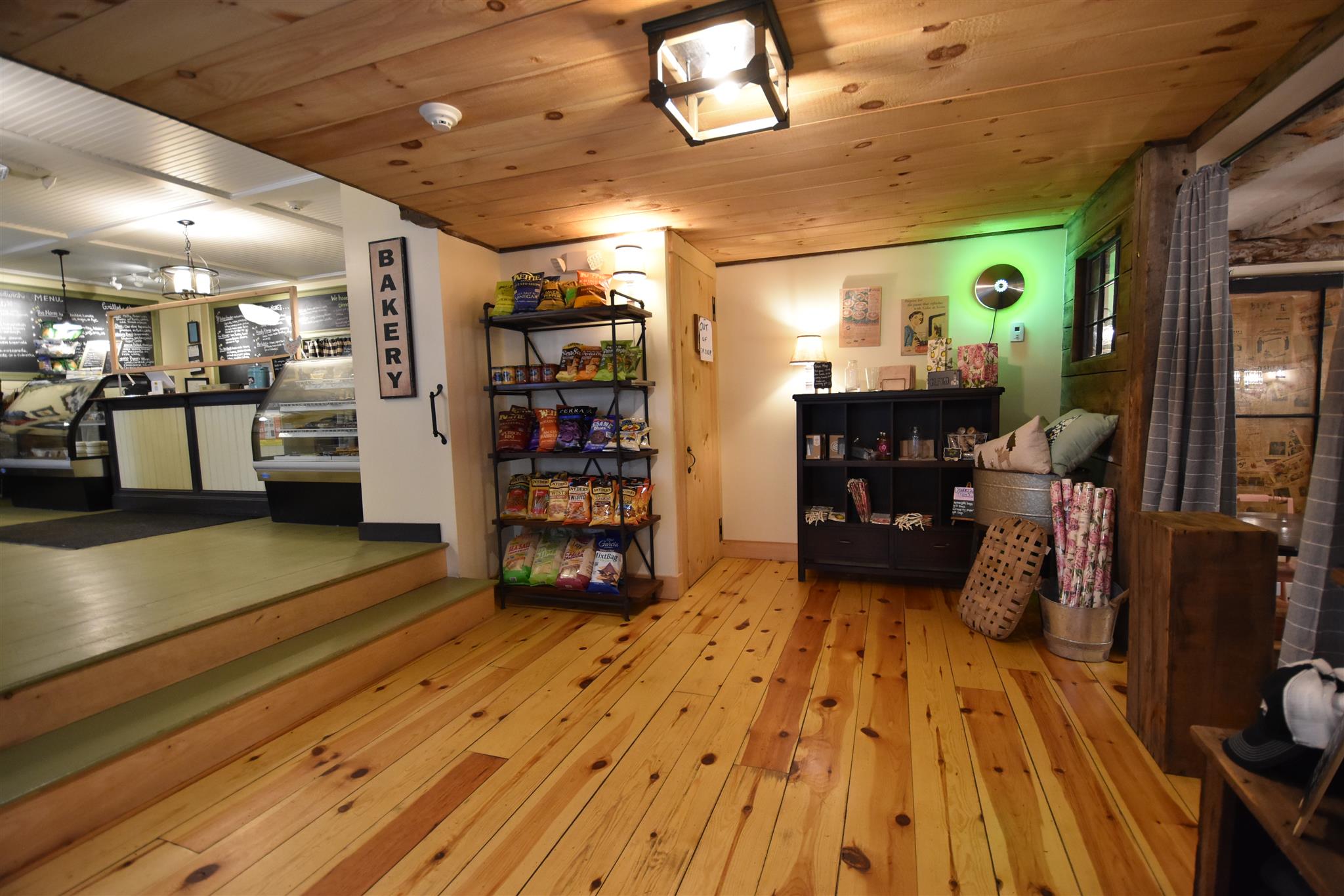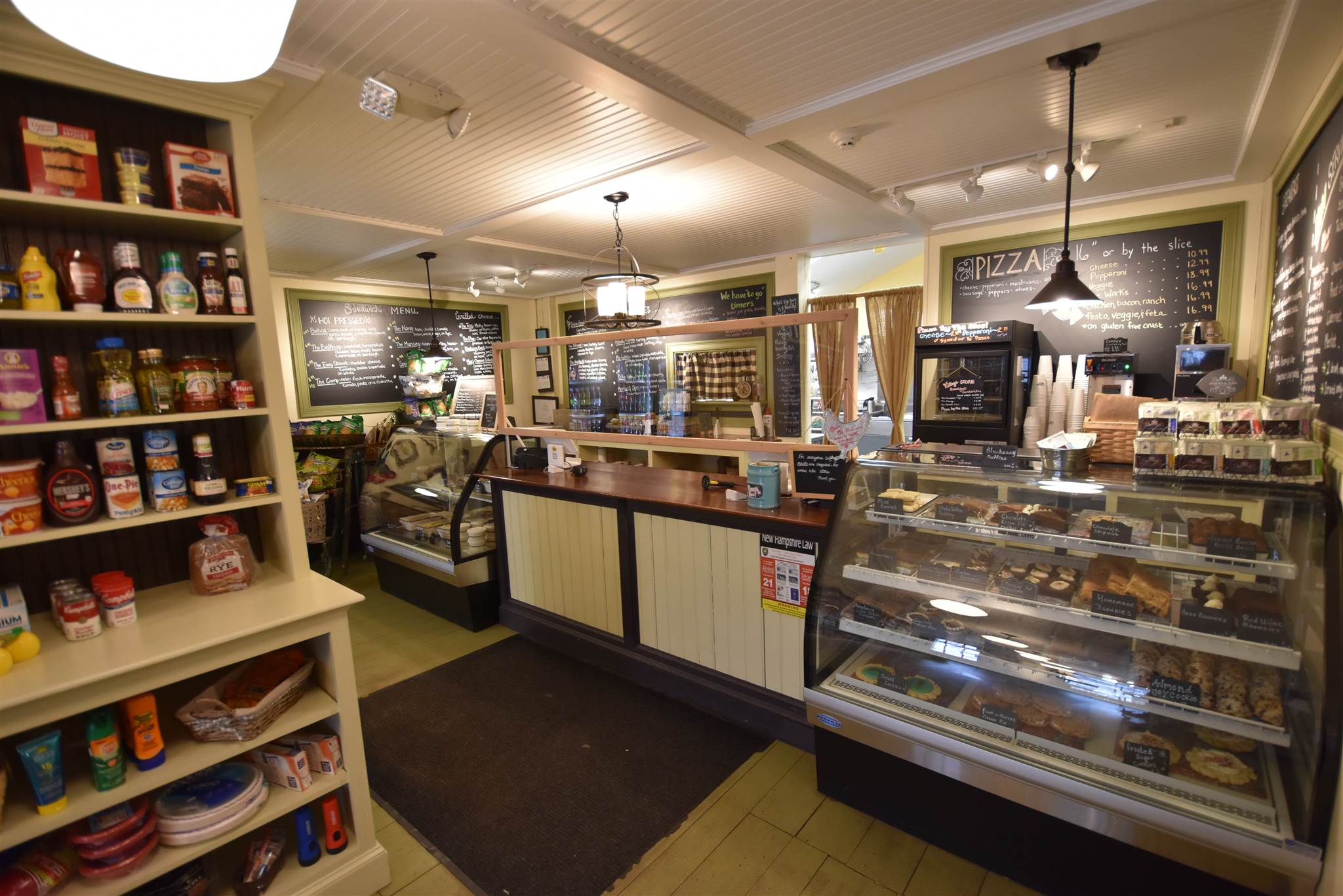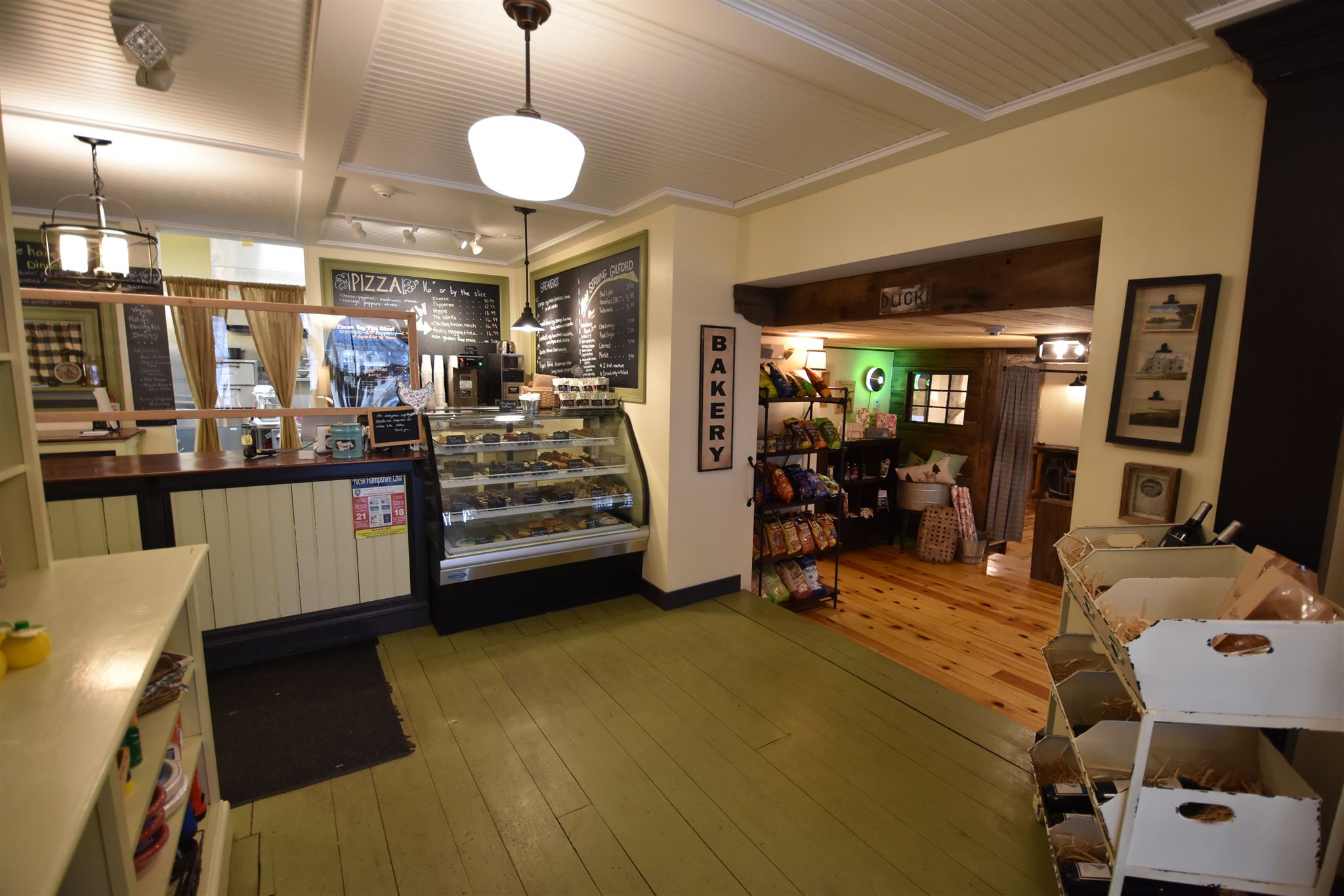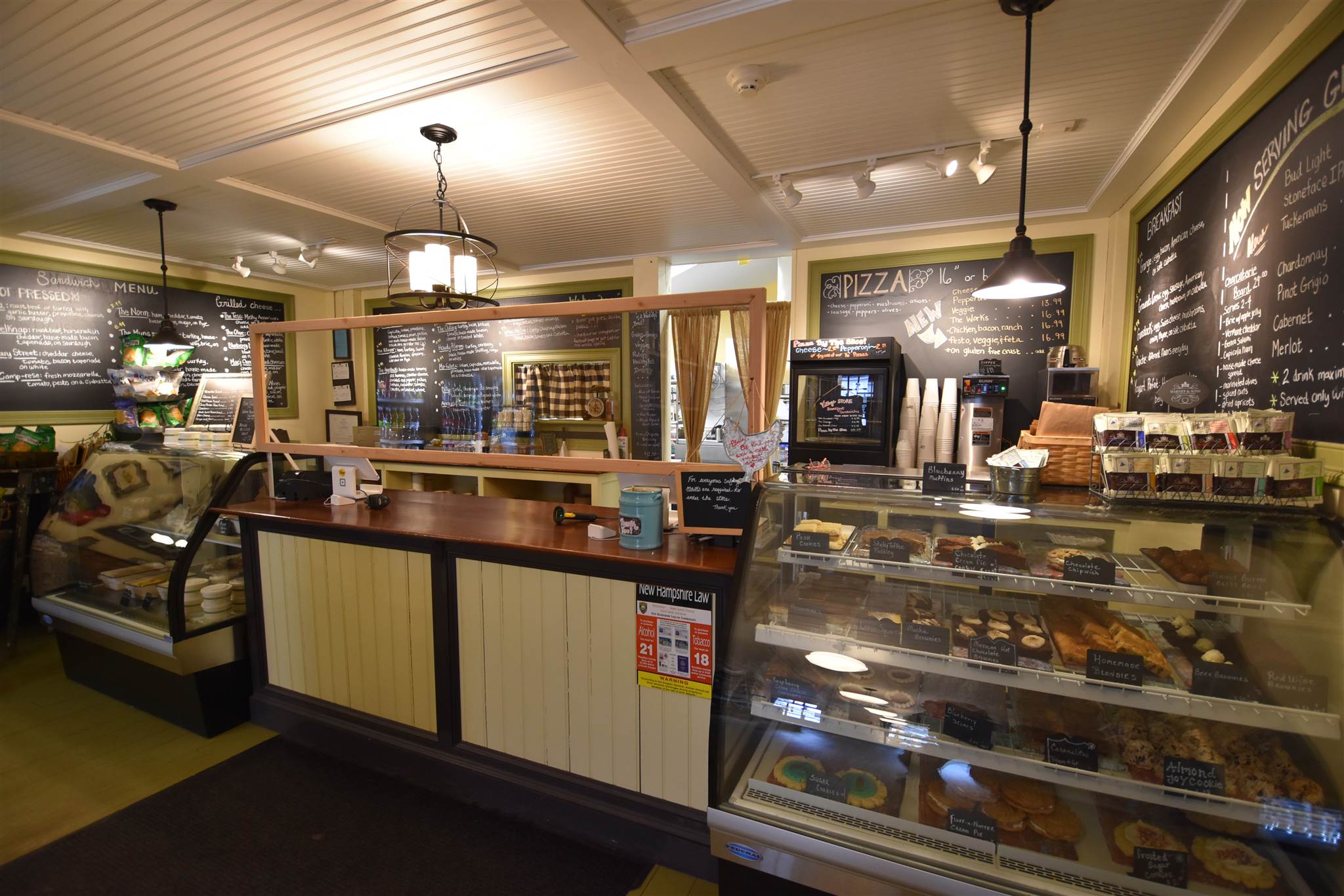 Since 1836, the “Village Store” in Gilford has operated as the town’s primary trading post. The store and the two apartments have undergone a major renovation – both outside and inside. The 2-bedroom apartments are bright & sunny with wood accents, new appliances, kitchens, & baths excellent rental income. The classic white clapboard exterior has been redone, complete with new windows & signage. The interior evokes a subtle nostalgia of days gone. Classic features in the renovation include beadboard ceilings, original beam ceilings, pine floors & attractive wood shelving. A lovely café area offers ample seating for 22 with antique tables, stuffed chairs, & a stone gas fireplace. In addition to convenience provisions, staples, candy, two glass display cases are full of salads & pastries. Deli offerings include sandwiches & hot-pressed paninis. The store offers homemade pizza, quiches, soups, dinner items, & healthy to-go items. Local goods are displayed throughout the store & stocked with a selection of cold beers & wines. The bakery & coffee bar is a huge hit at the store! Glass display cases show off muffins, croissants, pies, scones, & cookies to compliment a great cup of coffee. A selection of breakfast sandwiches, quiches, & other healthy breakfast options – all freshly baked at the store. The spacious kitchen includes all new stainless appliances, an exhaust ventilation system, a pizza oven, baking ovens, meat slicers, and freezers (cost $125, 000 new. )