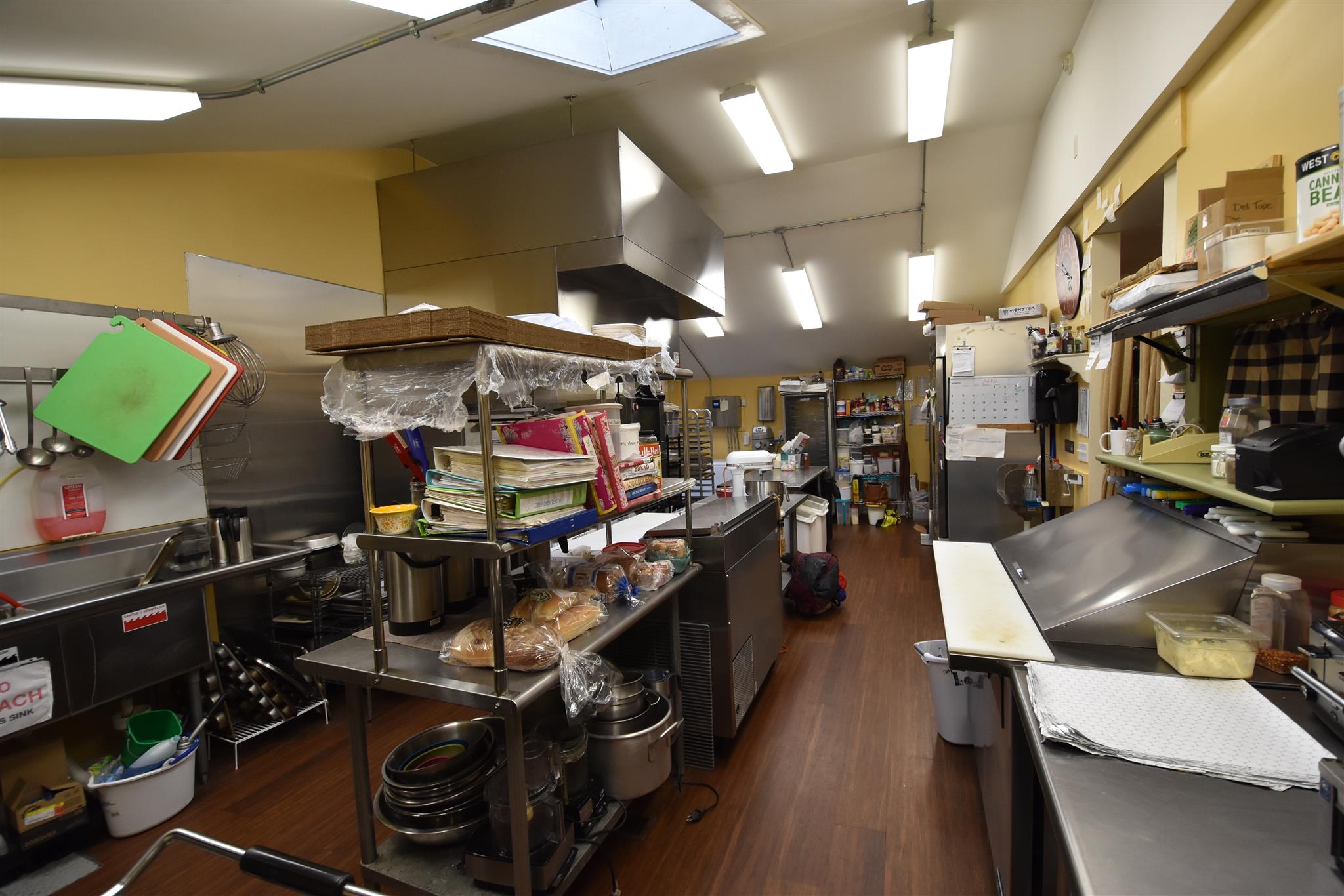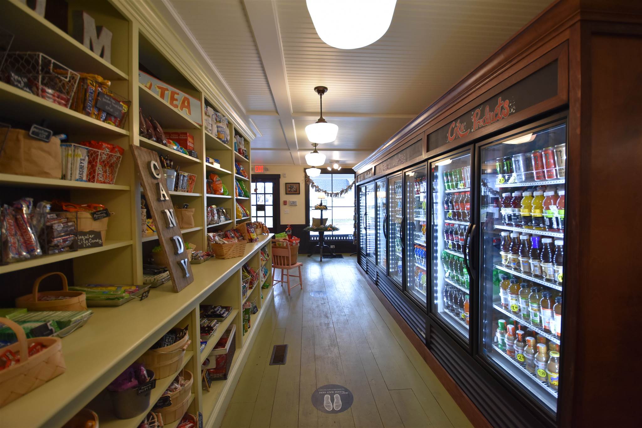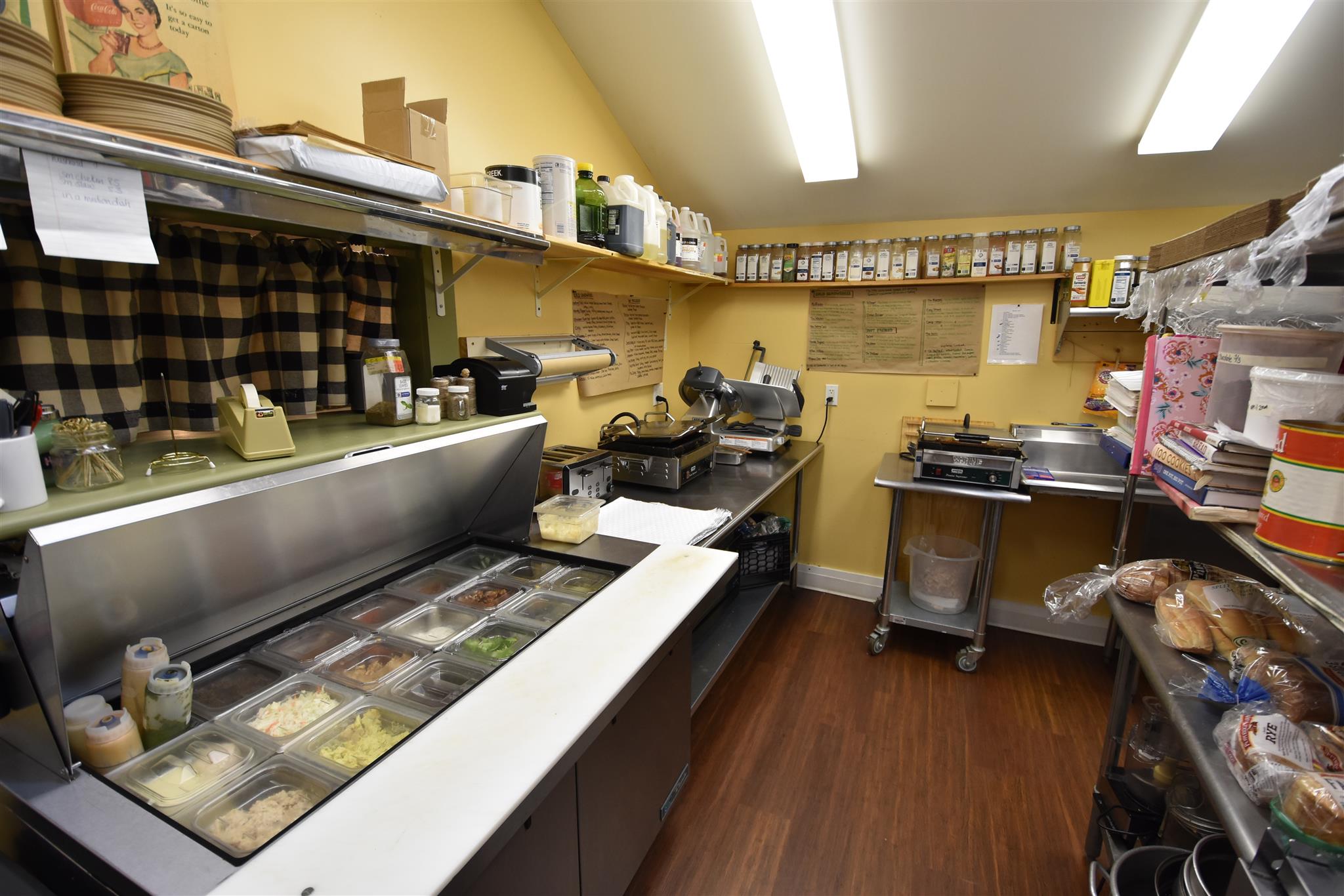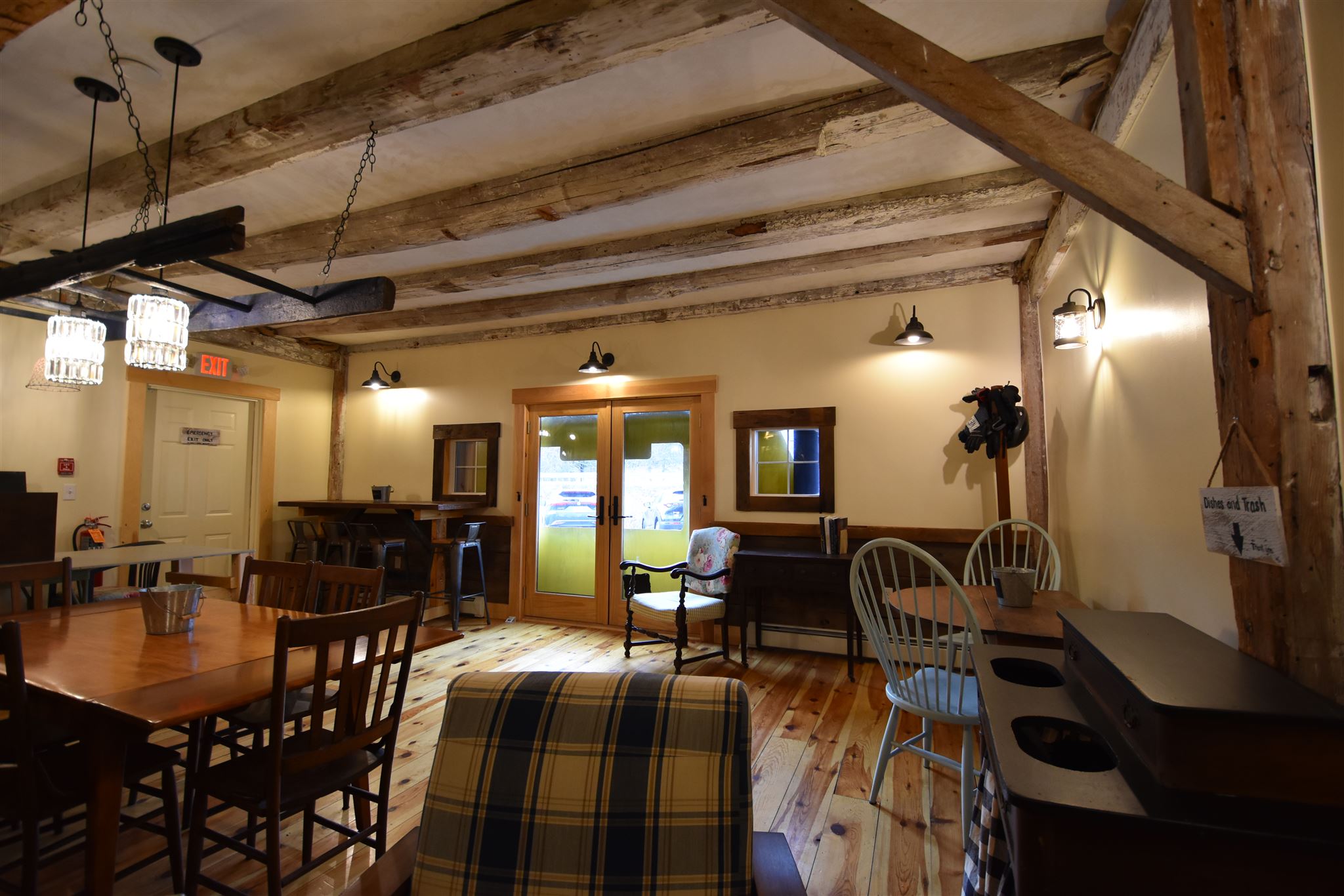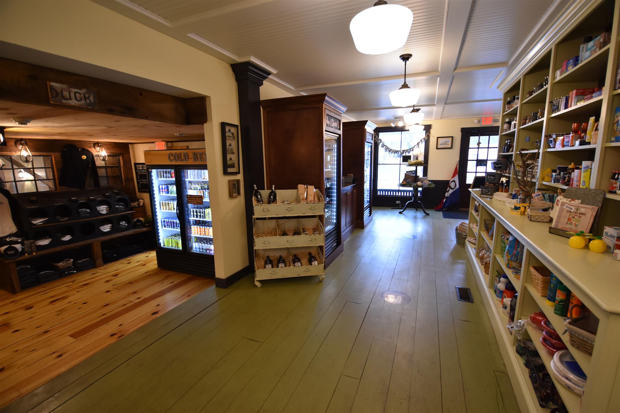 Since 1836, the “Village Store” in Gilford has operated as the town’s primary trading post. The store and the two apartments have undergone a major renovation – both outside and inside. The 2-bedroom apartments are bright & sunny with wood accents, new appliances, kitchens, & baths excellent rental income. The classic white clapboard exterior has been redone, complete with new windows & signage. The interior evokes a subtle nostalgia of days gone. Classic features in the renovation include beadboard ceilings, original beam ceilings, pine floors & attractive wood shelving. A lovely café area offers ample seating for 22 with antique tables, stuffed chairs, & a stone gas fireplace. In addition to convenience provisions, staples, candy, two glass display cases are full of salads & pastries. Deli offerings include sandwiches & hot-pressed paninis. The store offers homemade pizza, quiches, soups, dinner items, & healthy to-go items. Local goods are displayed throughout the store & stocked with a selection of cold beers & wines. The bakery & coffee bar is a huge hit at the store! Glass display cases show off muffins, croissants, pies, scones, & cookies to compliment a great cup of coffee. A selection of breakfast sandwiches, quiches, & other healthy breakfast options – all freshly baked at the store. The spacious kitchen includes all new stainless appliances, an exhaust ventilation system, a pizza oven, baking ovens, meat slicers, and freezers (cost $125, 000 new. )