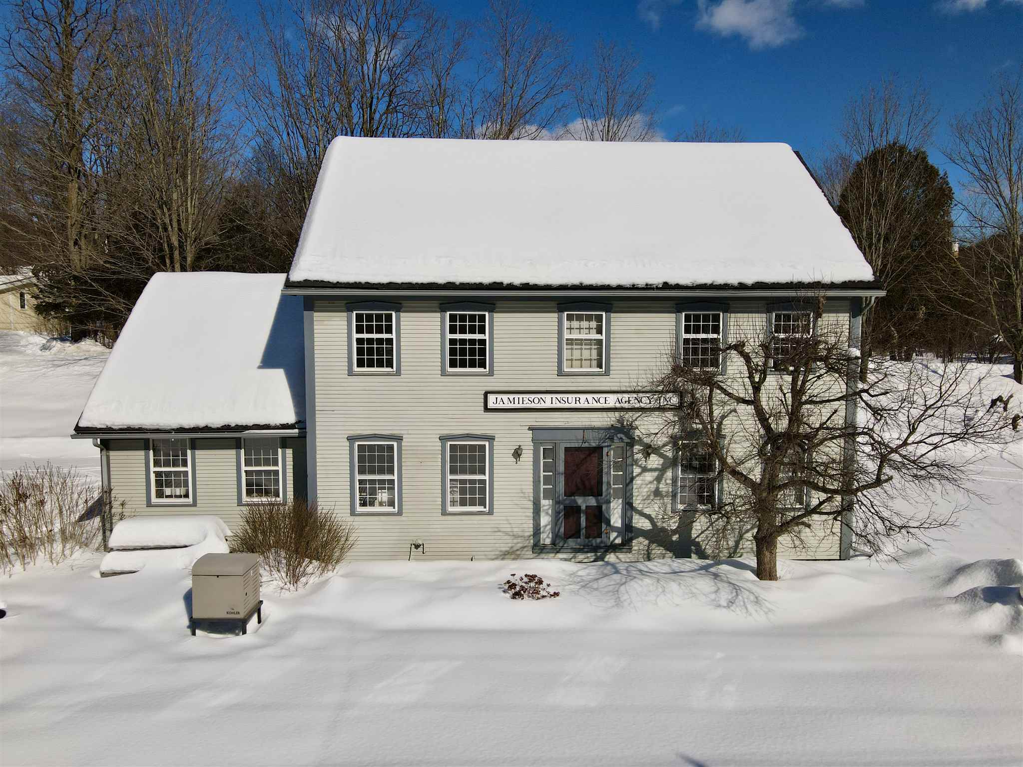 Centrally located office building in a high visibility location on a 30 MPH section of State Highway RT 100. Recent upgrades include a new on-demand propane-fired boiler, new roof, new septic, recent exterior paint, new generator, the list goes on. A solid investment with a lease in place for the next 3 years. Both levels offer ample space for multiple employees and plenty of off-street parking in the paved parking lot. Possible expansion for a one-bedroom owner-occupied apartment subject to fire safety regulations. Need high speed internet? This building is wired with fiber-optic from Waitsfield Telecom!