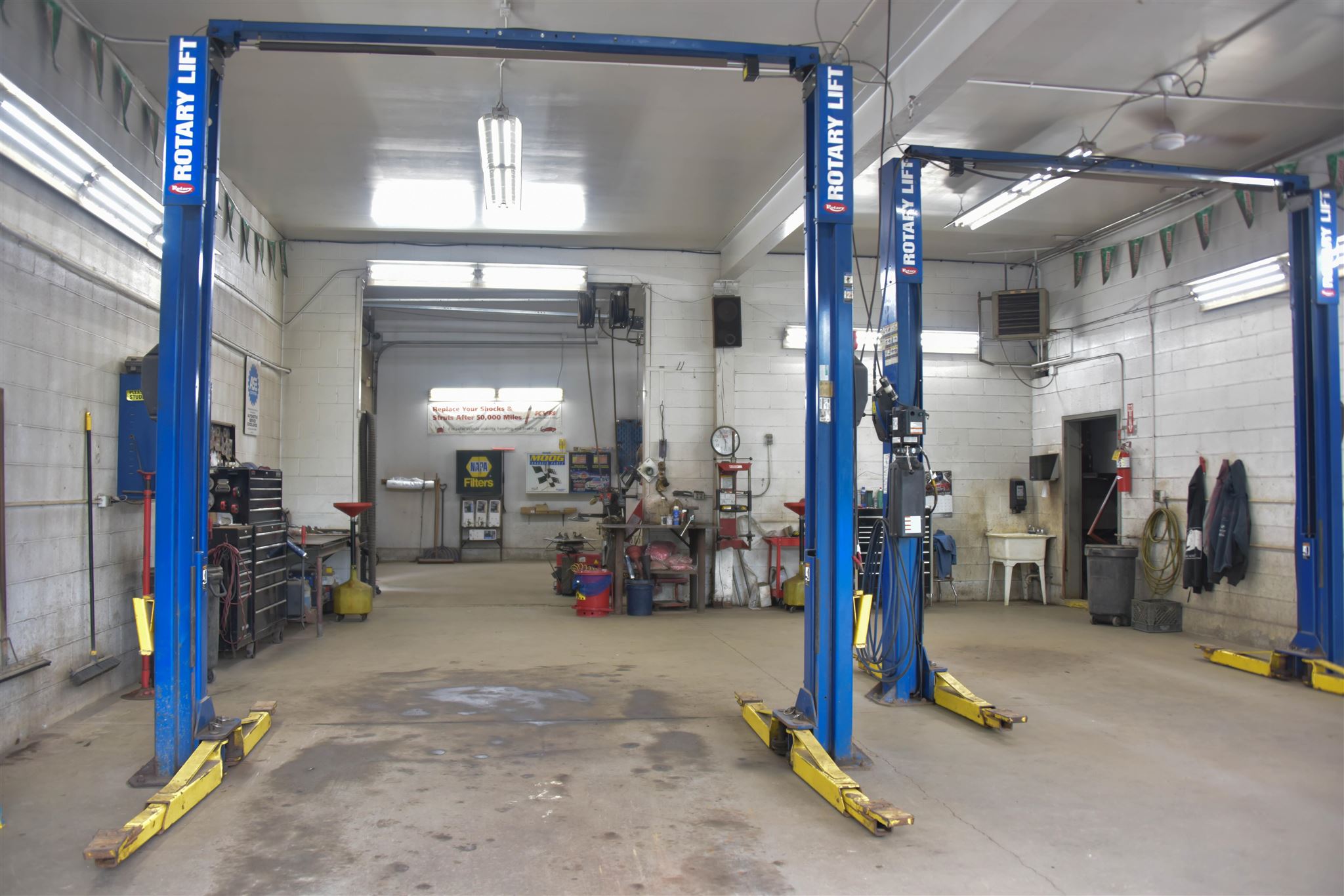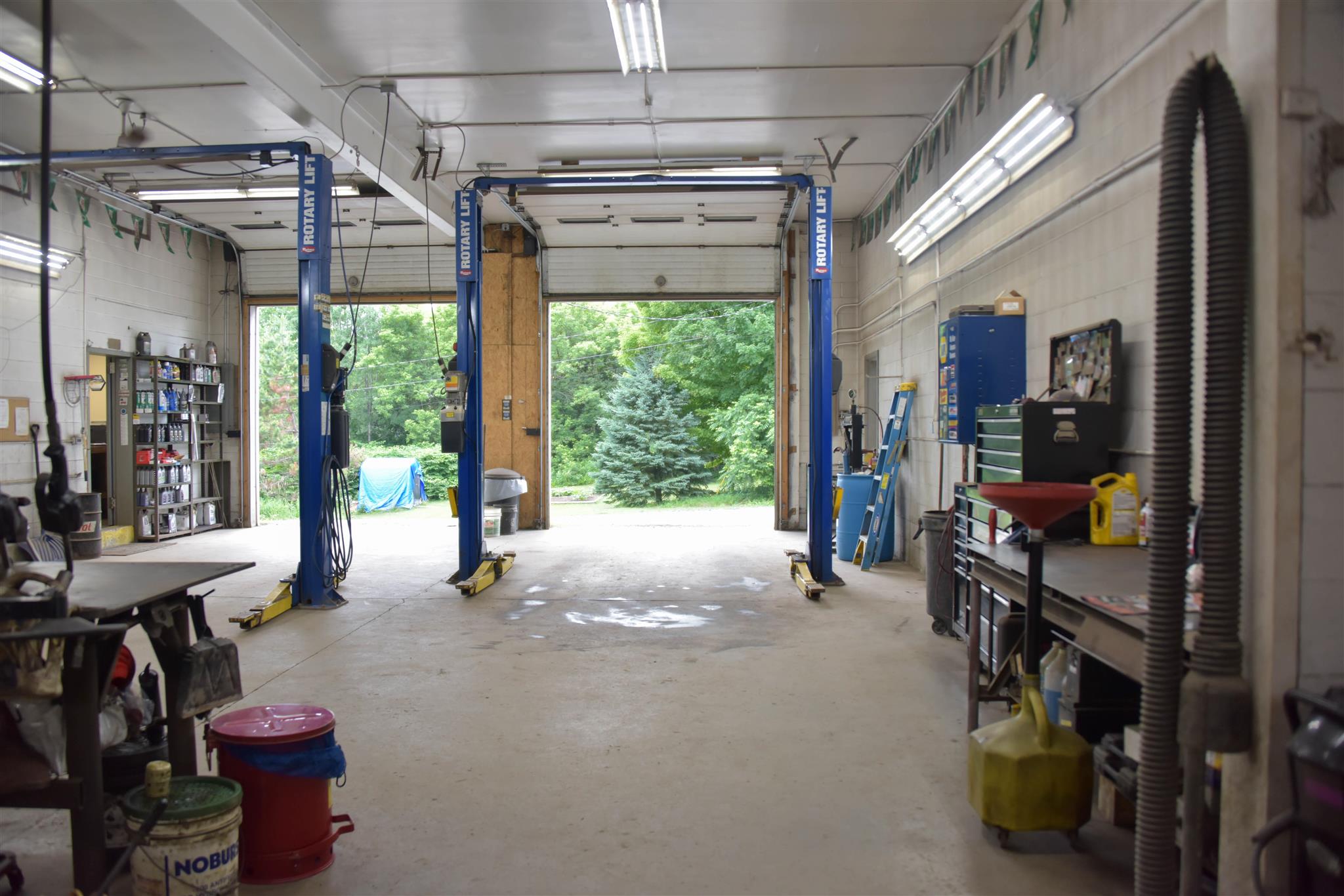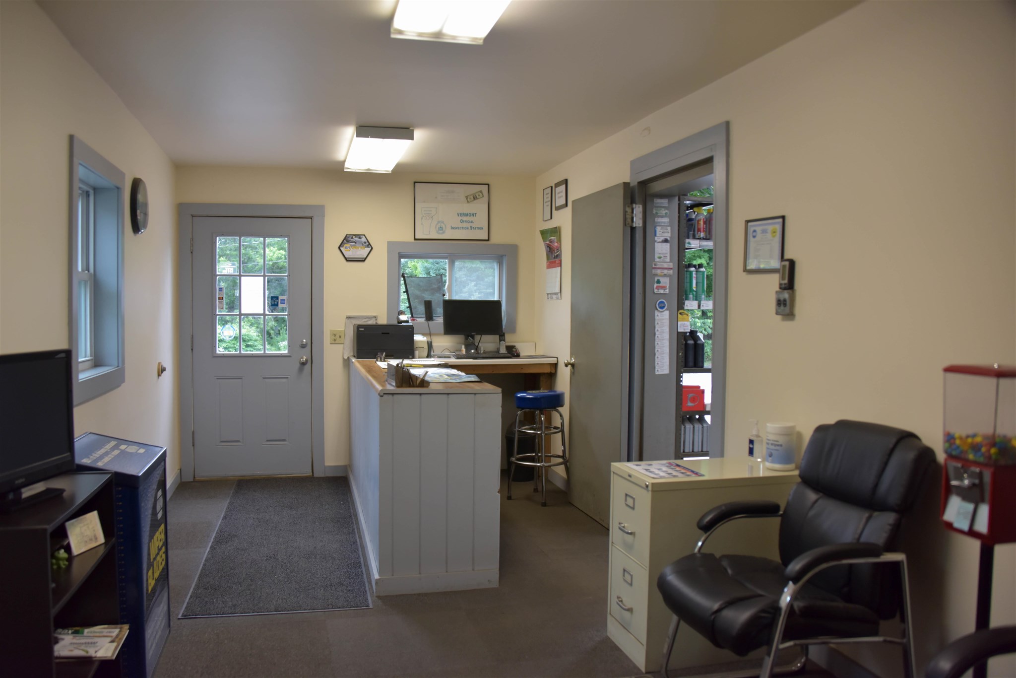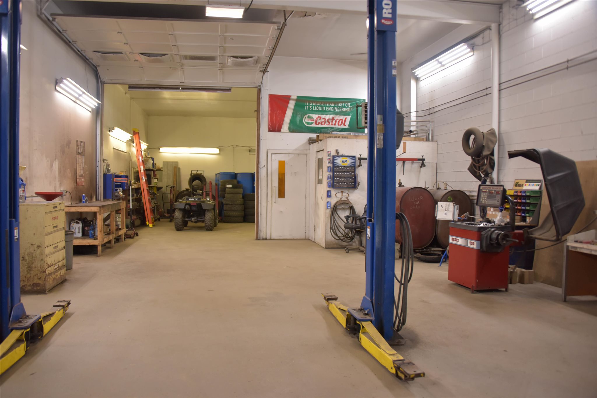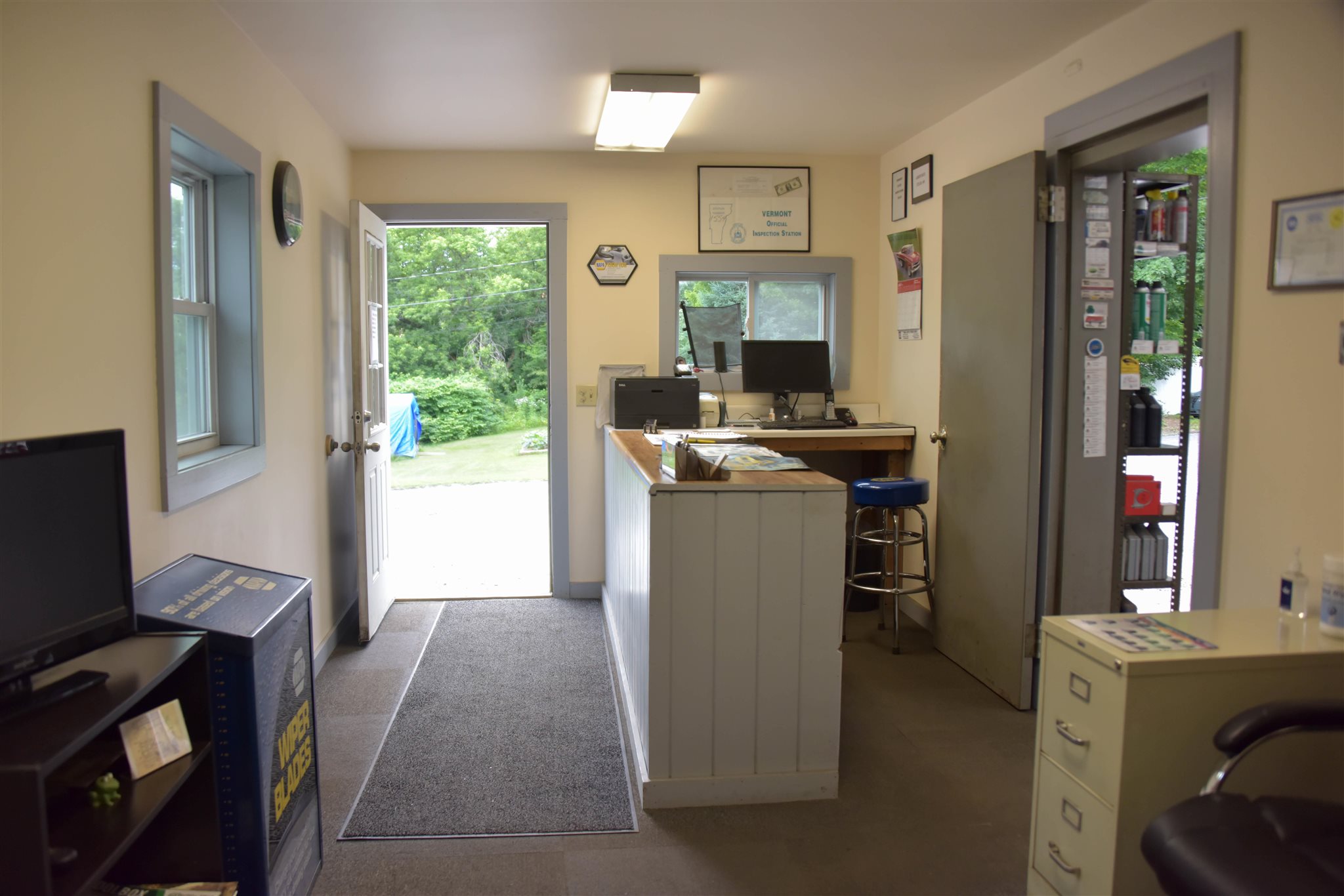 Need a heated, dry building to store your boats, rv, machines, and/or autos? Former auto service center just off of busy Route 100 between Stowe and Waterbury is turnkey ready. (Auto shop inventory also separately available). 3950 square foot building with 3 overhead garage bay doors all at grade with potential for a 4th. With over 20 parking spaces for overflow or outdoor work area plus an additional staff parking area, there is no reason to worry about space. Building is heated with a waste oil boiler located in the small basement area and heats the entire shop with Modine blowers. Renovated, clean office area with bathroom, an electric heater and window AC. In addition to an impressive amount of organized storage space, above the shop is a 2 room 600 foot space accessed by exterior stairs previously used as an additional office but holds potential for a living space.