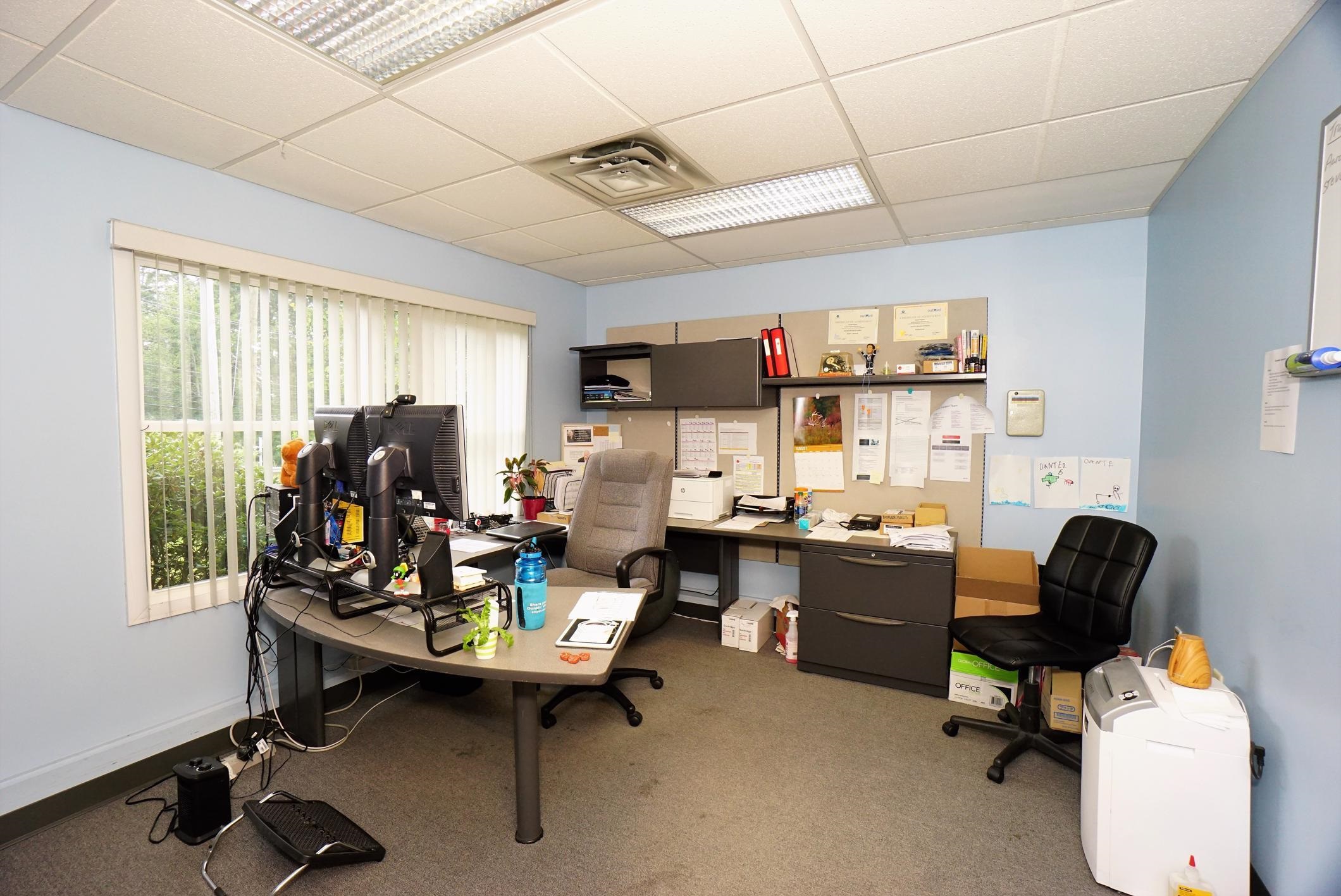 Welcome to 542 Harvey Rd! Great location off of NH Route 28 close by to the Manchester/Boston Regional Airport, Route 293 and Route 3, very easy access and super commuter location. This building is a mix of office space and warehouse space. Warehouse portion is serviced by a large ground-level garage door and has a storage area perfect for all your deliveries and shipments. Office space has a nice open reception area with an open concept floor layout great for cubicles/work stations. Nice large conference / training room area to the left of the reception area and private offices to the rear. Three Bathrooms total - two half baths and one 3/4 bath. Natural gas heat, public water/sewer, property has one phase power in addition to 3 phase power and dry sprinkler system. New roof with water and ice shield & windows as of 4 years ago, new siding as of ~5 years. Property has been well maintained and ready for its new owner.