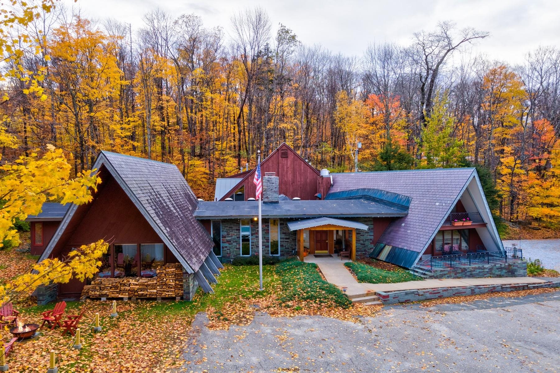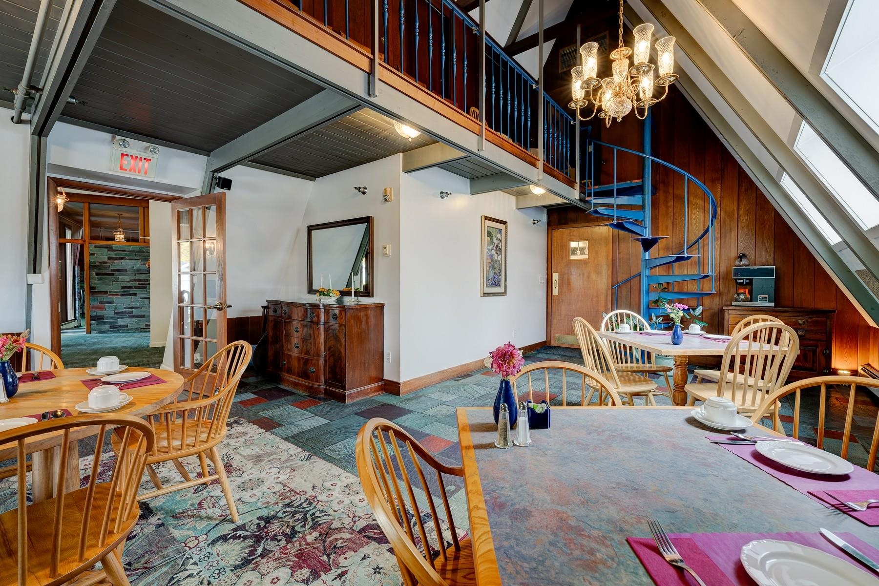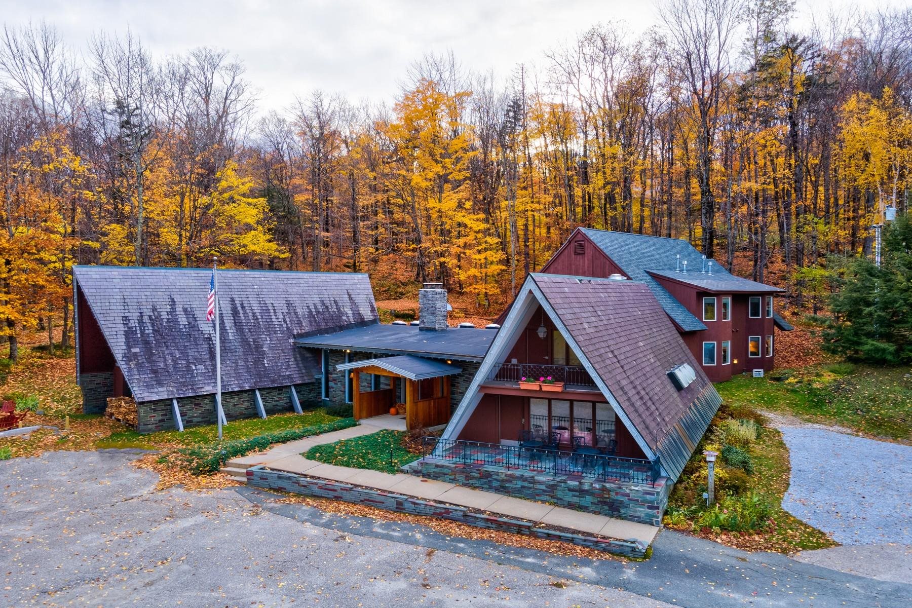 A mid-century modern design, this Multiple A-Frame property is nestled just off the Killington Road, directly across from the World Famous Wobbly Barn and only 1 mile from Killington Ski, Bike & Golf Resort. Originally built as a single family home in 1965, the property was enlarged and converted into a 10 room inn and restaurant by the current owners in 1997. For the past 24 years, it has operated as a successful business and primary residence for the innkeepers. One A-frame features exposed timbers and slate walls in the Great Room Bar and Lounge with a stunning wood fireplace. The second A-Frame hosts a slate floor Dining Room, commercial kitchen and a private lofted space for an office or private lounge. Gorgeous sun and shade gardens surround the 2. 7 acre property. A generously sized Master Apartment Suite with lofted bedroom features a cathedral ceiling, kitchen and a private patio with views of the rear gardens. Each of the 10 rooms have ensuite bathrooms; 6 rooms have gas fireplaces and 4 have whirlpool tubs. Building is licensed by the State of Vermont for use as a hotel and restaurant and complies with ADA and Fire & Safety regulations. Property has ramp entrance, lift access and a sprinkler system. The building, commercial kitchen and surrounding grounds have been meticulously maintained by the owners. Would make an excellent second family home or investment property if not continued as an inn and restaurant.