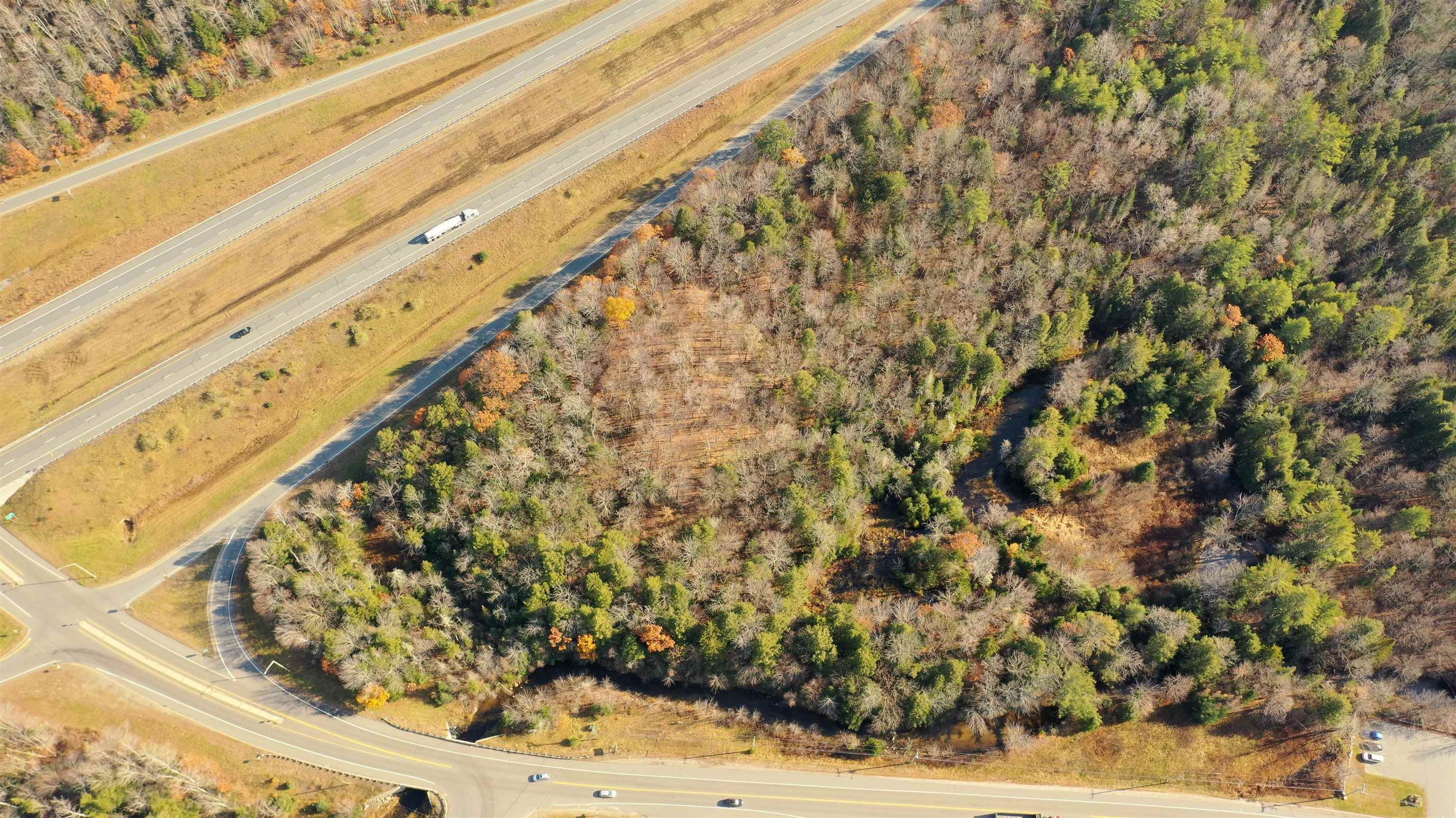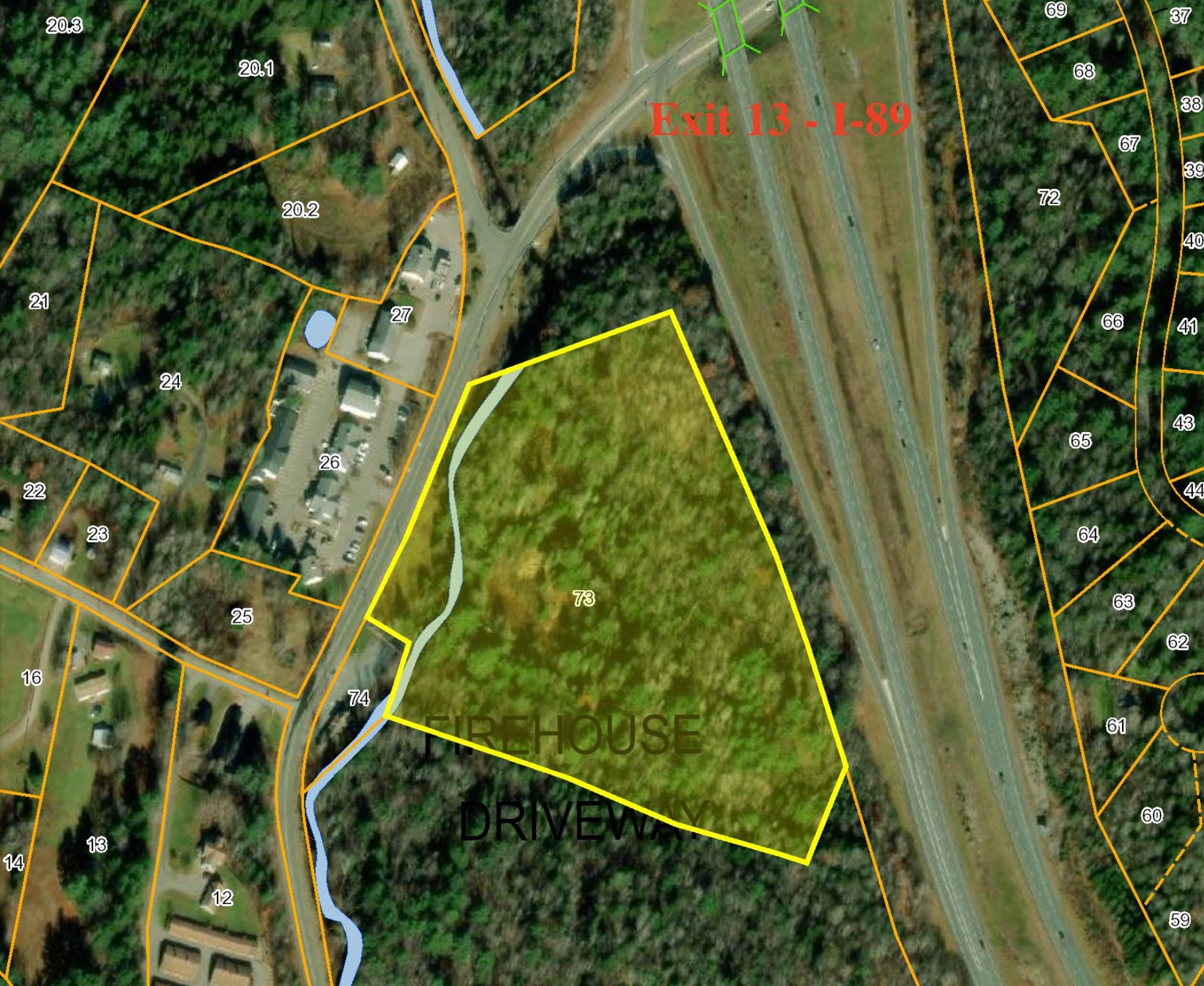 One of a kind chance to own and develop a level 13 acre parcel adjacent to I-89 at exit 13 in Grantham, NH. Located in Grantham's Business District, across from Sawyer Brook Plaza, this is a rare opportunity. Uses range from retail to service, hospitality, rental storage, health and fitness, emergency healthcare and many more by special exception.