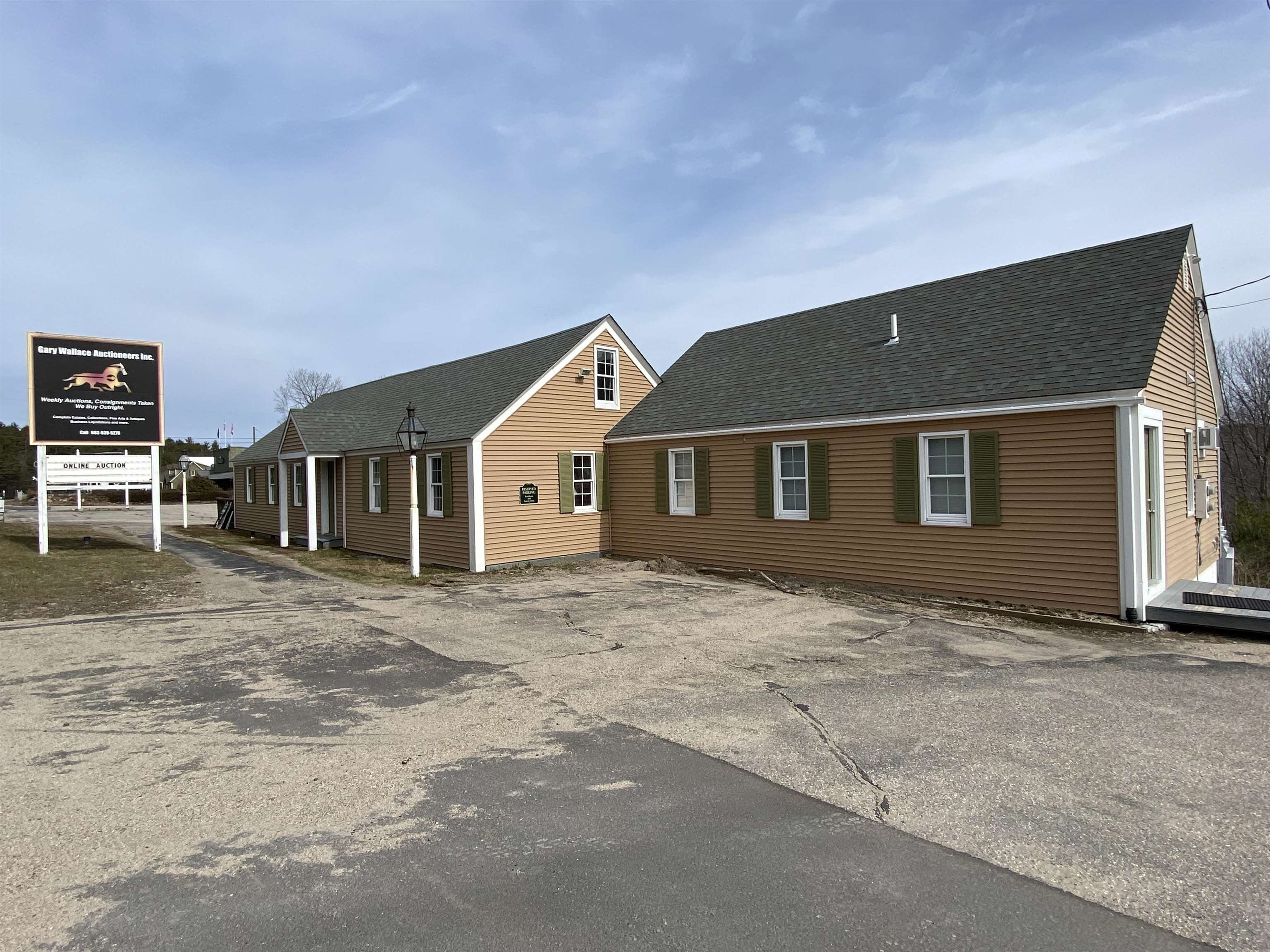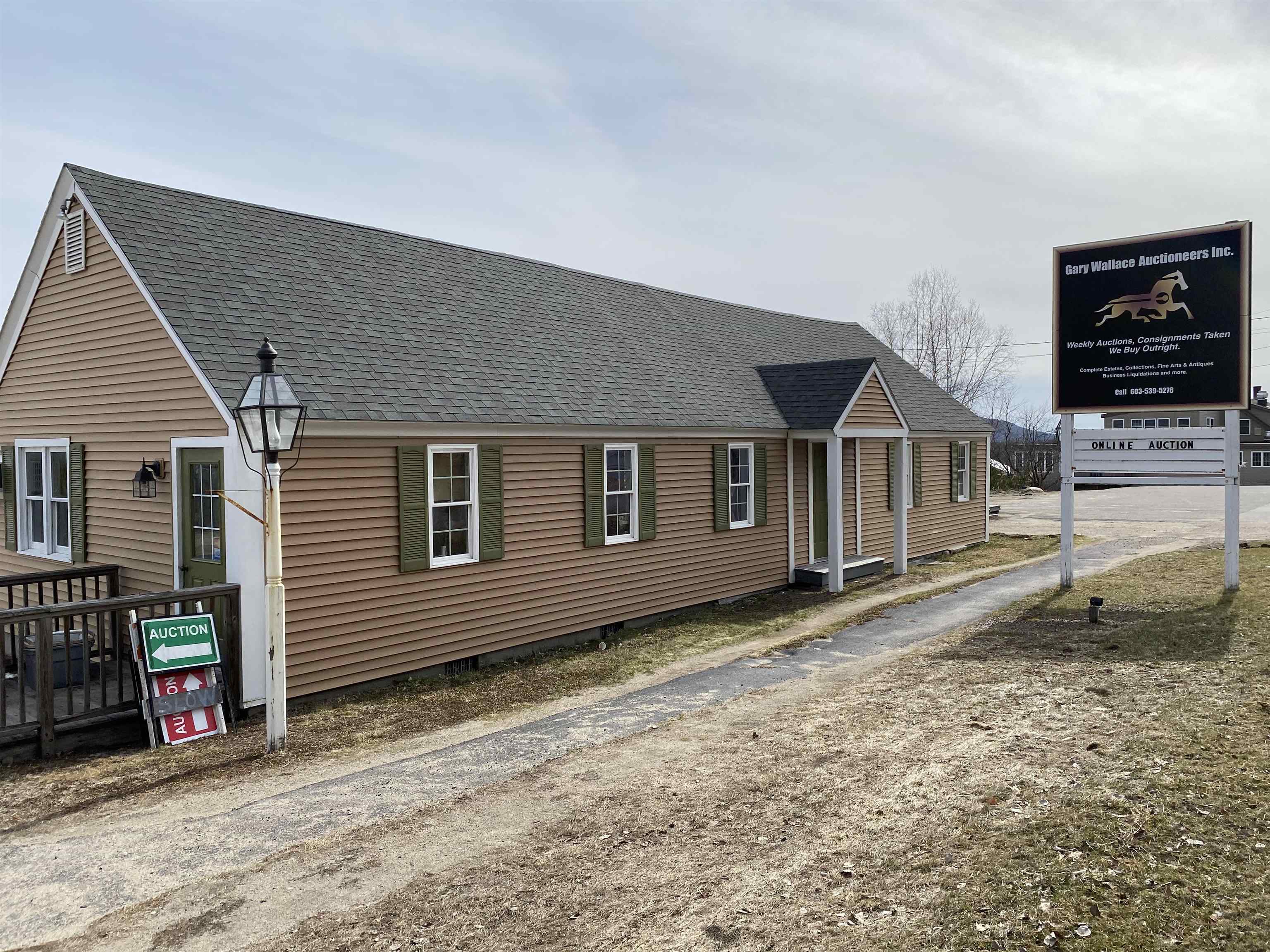 Fabulous opportunity to own on busy Route 16! This commercial offering is two lots of record with two buildings. There is great lines of site along the highway to this property with plenty of signage. One building is used as an auction gallery. The main floor is one large room. The lower level is full walk out and has two half baths, a kitchen area, storage and office space. All ready to go for your own business. The second building is a mixed use space that could be retail or office along with a one bedroom apartment. Each building sits on it's own lot but is being offered as one property. Each lot offers plenty of parking too! There is an easement through the property to the land out back. This property offers plenty of flexibility for just about any use! Come see where your business could be! (Measurements and square footage are for both lots).