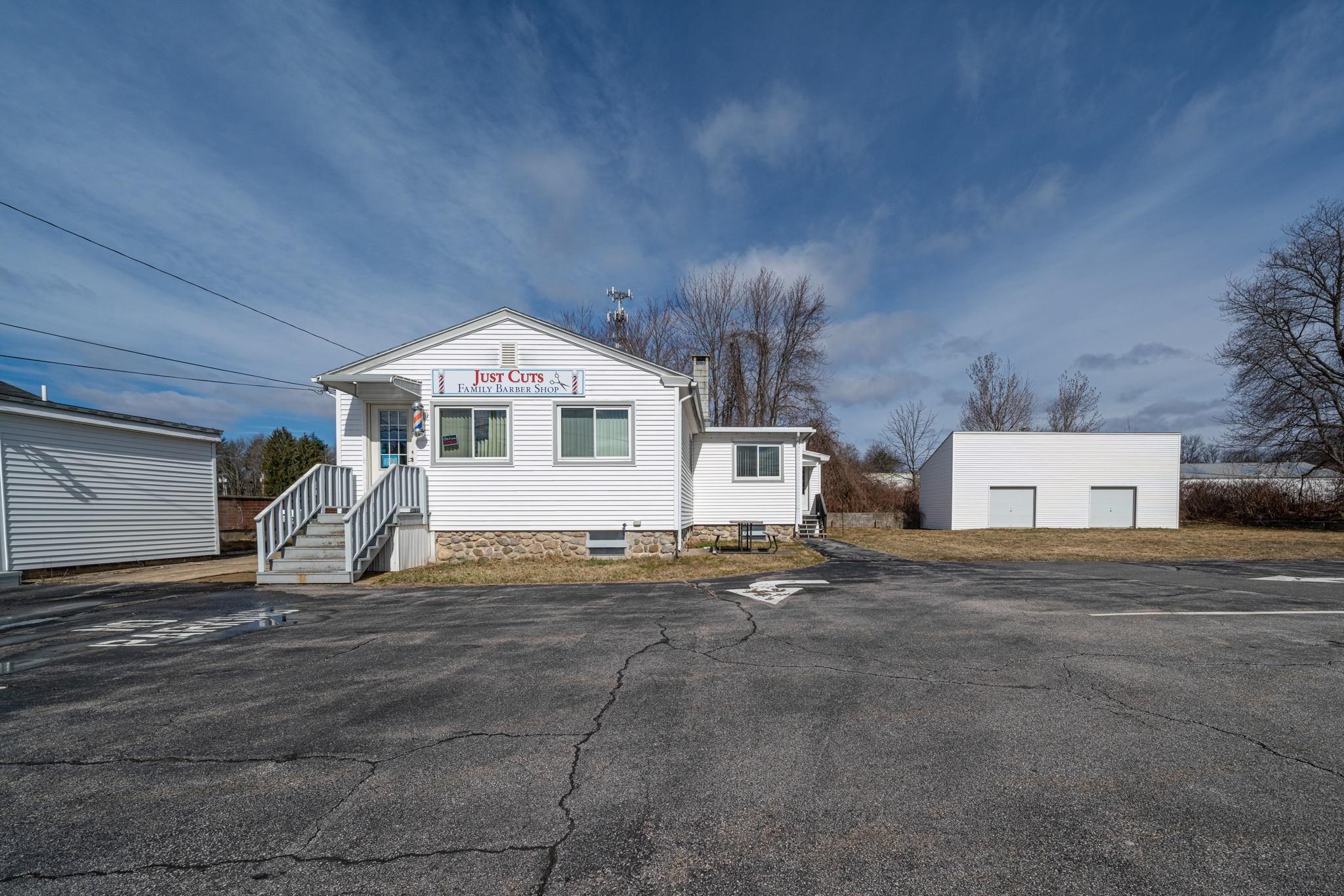 Flex/Industrial, Retail/Office building(s) located just off exit 1 on Rte. 101 by the Massabesic traffic circle. This property, located in the B2 Zone, offers unmatched visibility along with a high traffic count and incredible potential for various business use types. Flat level . 51 Acre parcel includes a large striped paved lot for 20+ cars and room for possible expansion. Existing freestanding 1, 619 +/-SF building offers an additional 1, 502 +/-SF unfinished basement and 1, 068 +/-SF attached garage. In addition, there is a detached 2 bay garage offering 585 +/-SF with high ceilings and a storage shed measuring approximately 252 +/-SF. Currently the main building has one tenant, on a month to month lease, occupying the front space with its primary use being a Barber Shop. The updated back office/retail space is unoccupied. Located right over the Manchester city line off of exit 1 Rte. 101, in an emerging growth area with easy access to Rte. 93, points north, south, east, west and all major highway systems. Public Water, Public Sewer, Separate Electric.